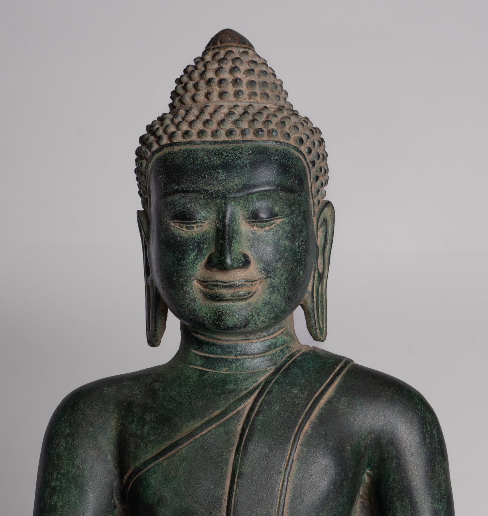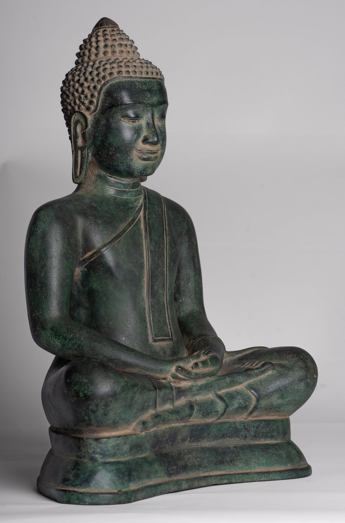 Statue de Bouddha – Statue de Bouddha de méditation assis en bronze de style khmer antique – 40 cm/16"