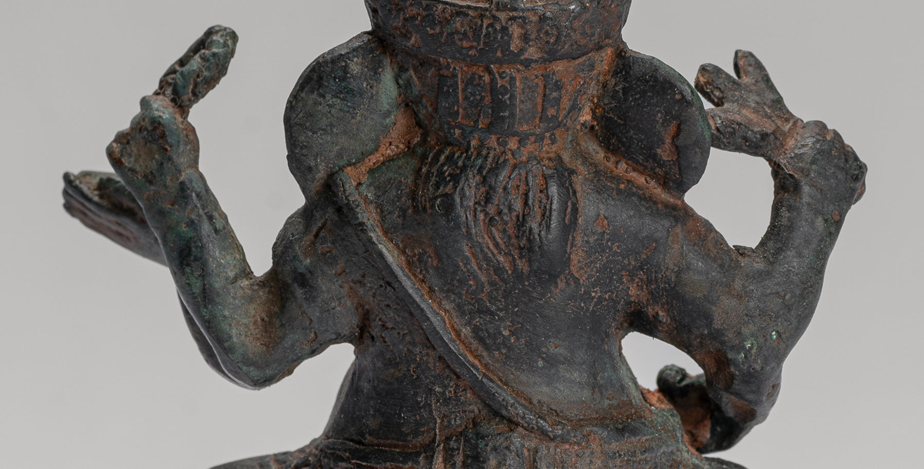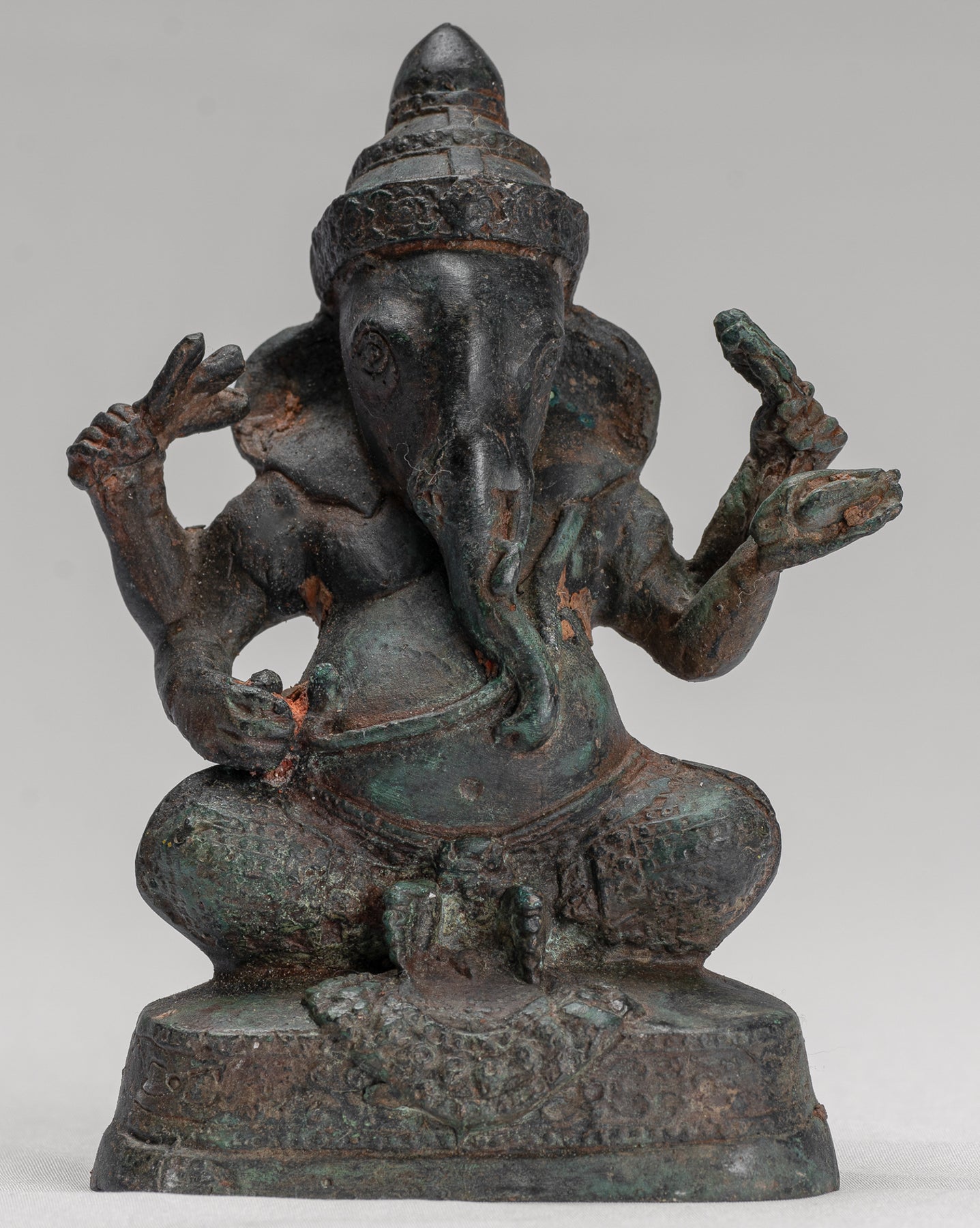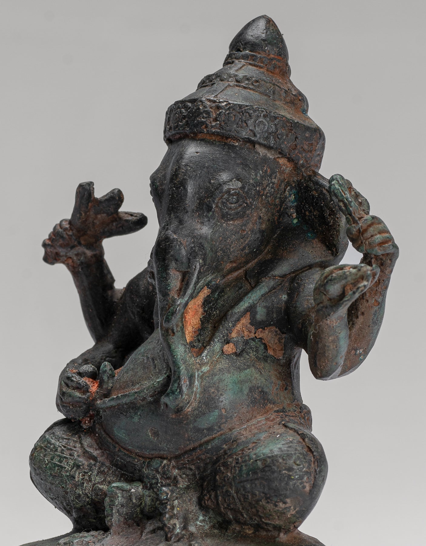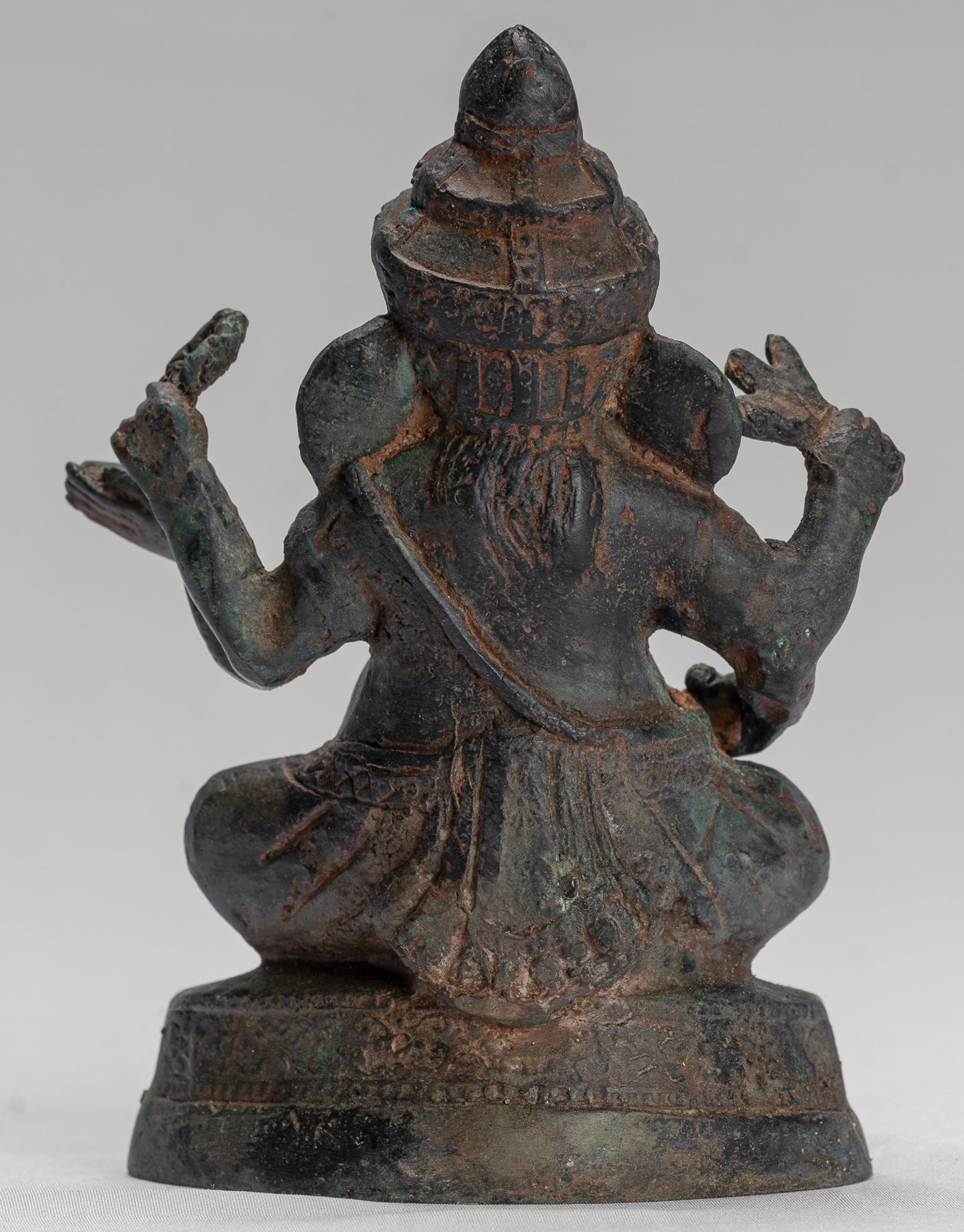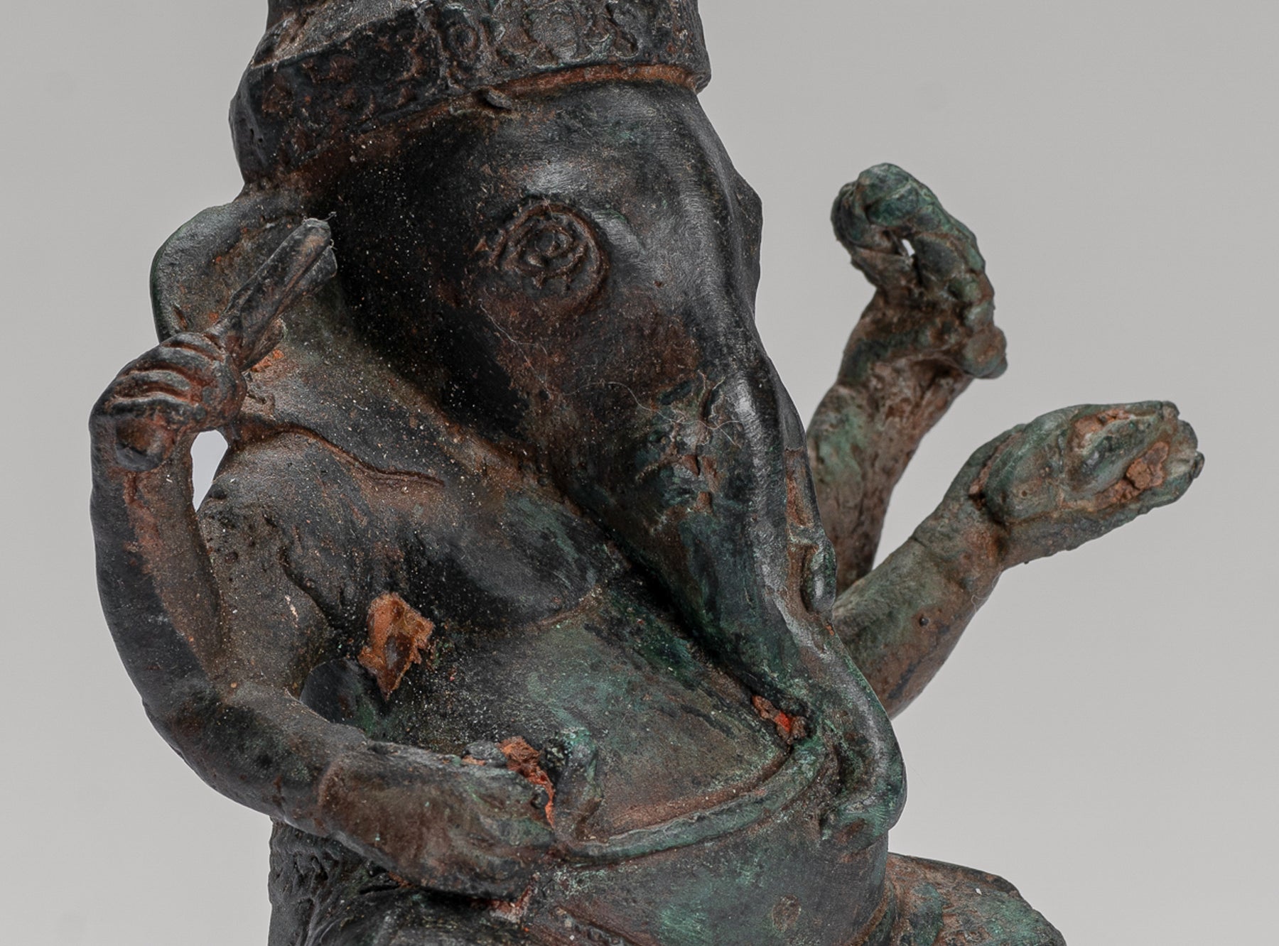 Statue antique de Ganesha thaïlandais assis en bronze de style khmer - 14 cm/6"