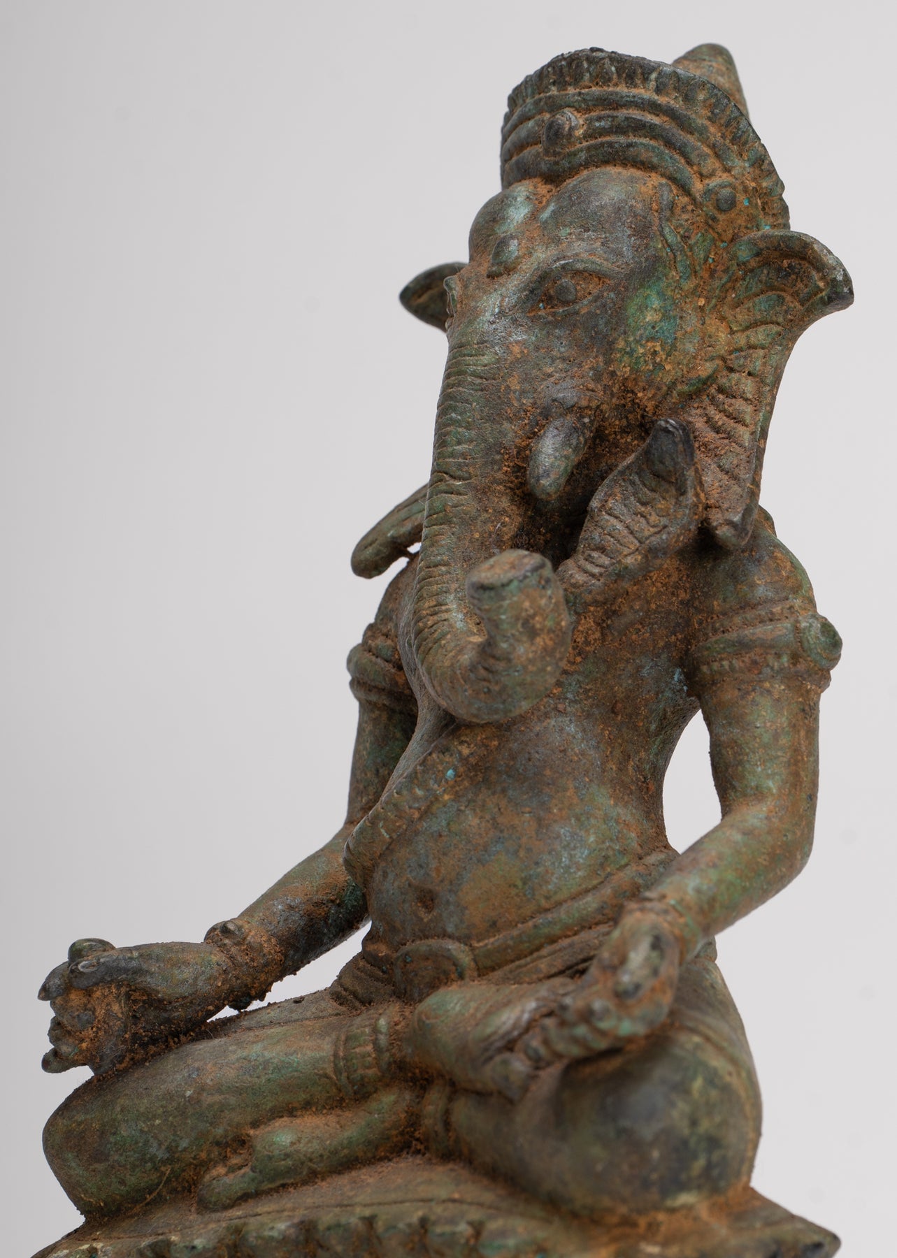 Statue antique de Ganesha assis en bronze de style thaïlandais - 17,5 cm/7"