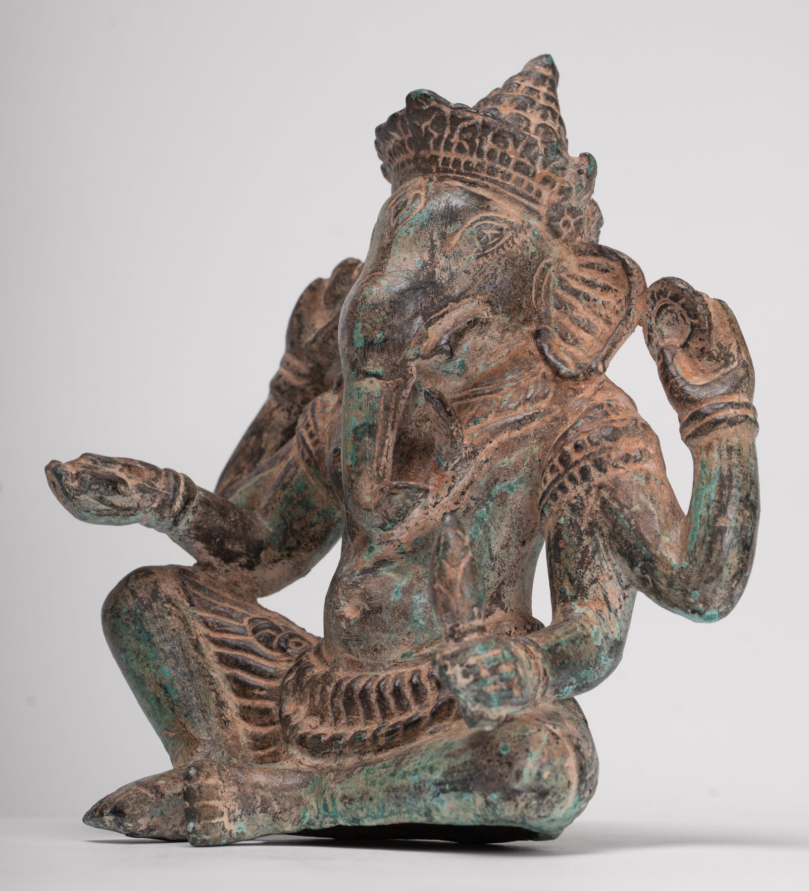 Statue de Ganesha – Statue de Ganesh assise à quatre bras en bronze d'Angkor Wat de style khmer antique – 19 cm