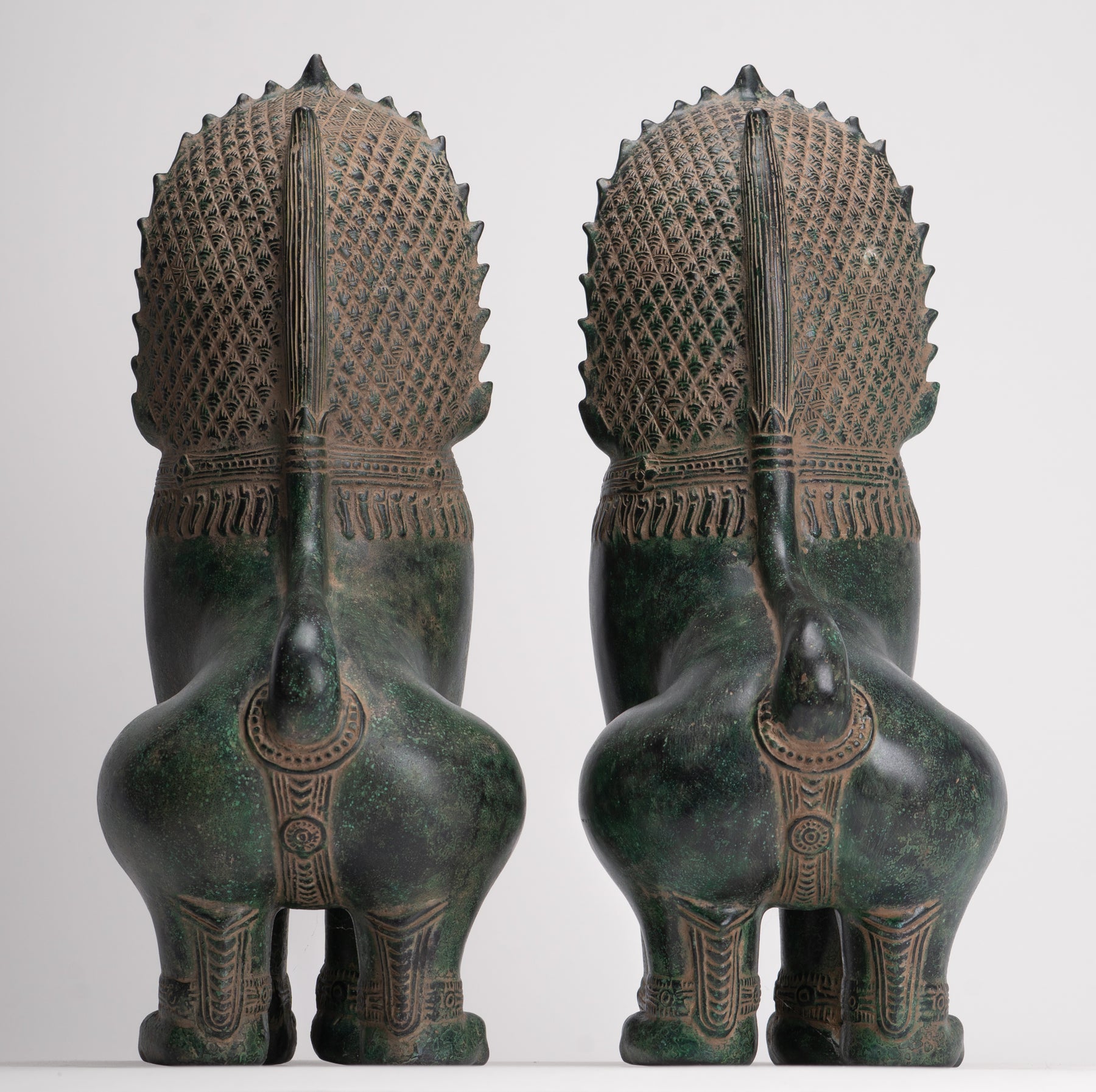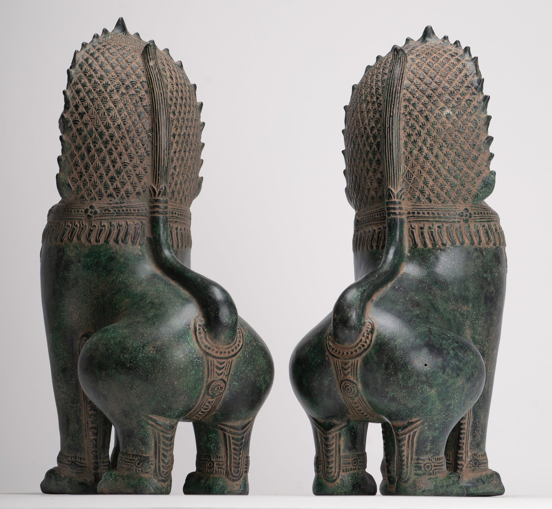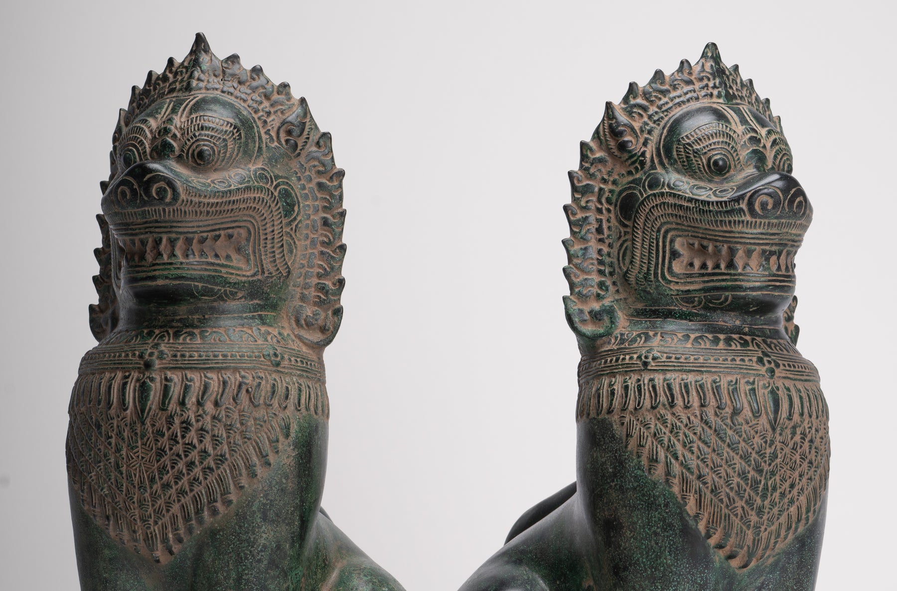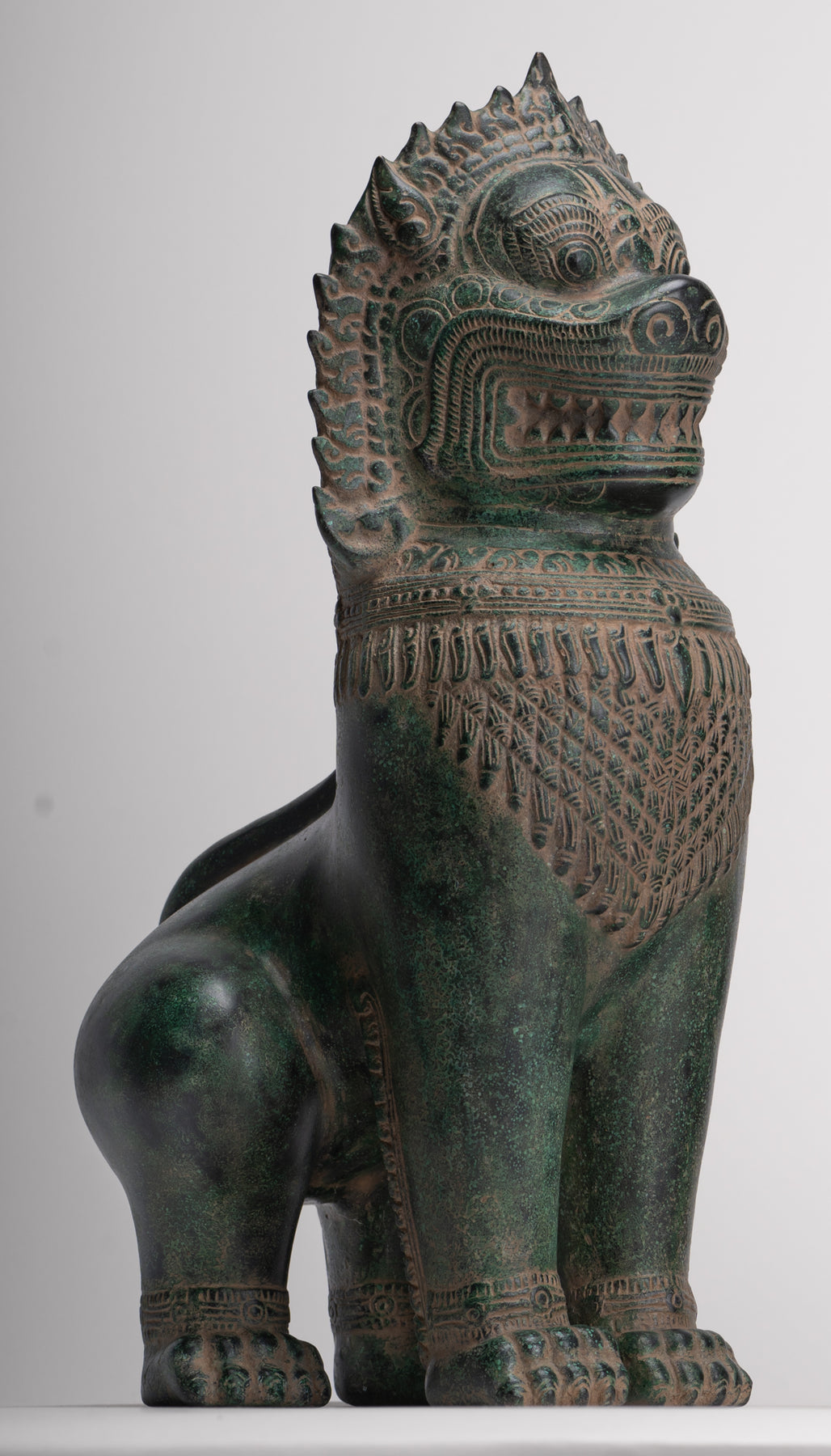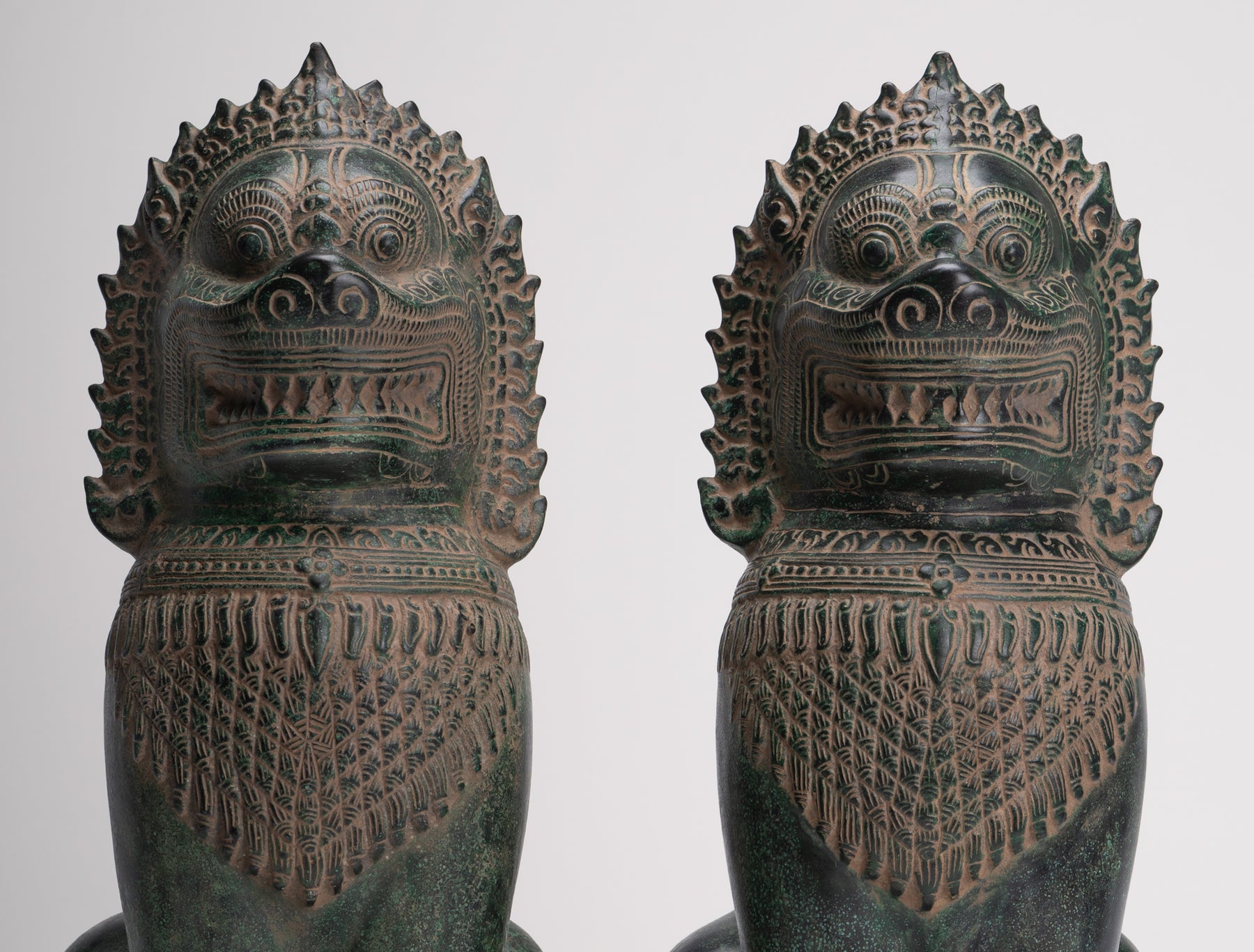 Dans la culture khmer, le lion a une importance symbolique profonde, représentant la force, le courage et la protection divine. Les Lions du temple, connus sous le nom de "Singha" ou "Rajasiha", étaient considérés comme des espaces sacrés et éloigner les forces malveillantes. Coulées en bronze avec des détails méticuleux, ces sculptures de lion transmettent un sentiment de pouvoir majestueux et d'autorité divine, inculquant la crainte et la respect aux fidèles et aux visiteurs.