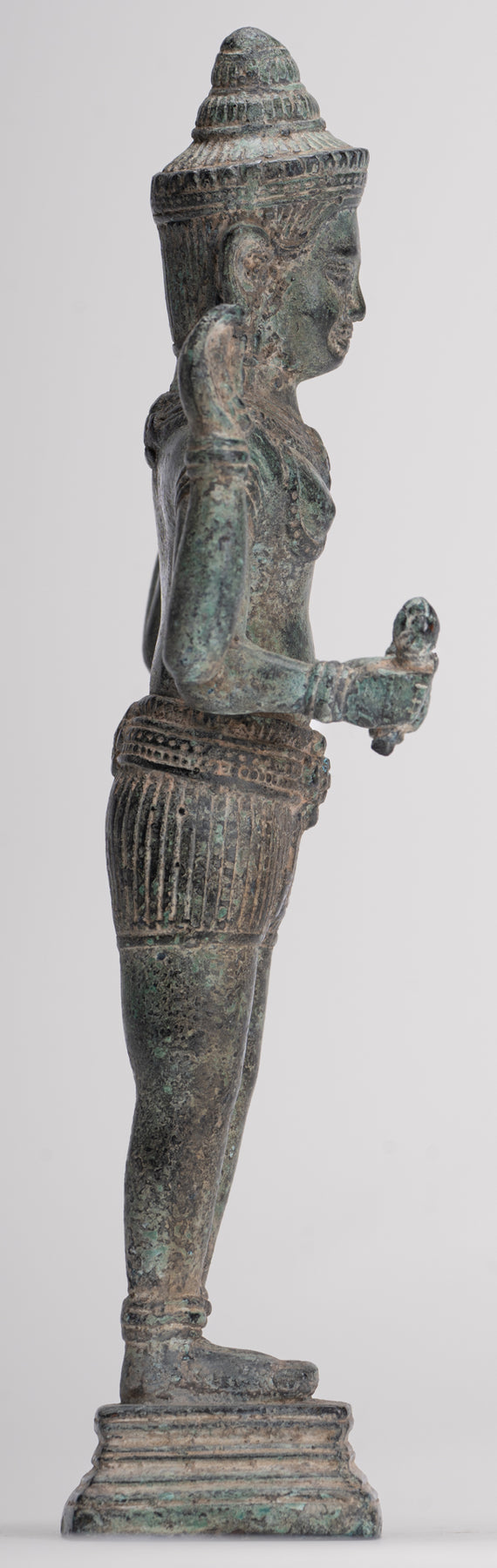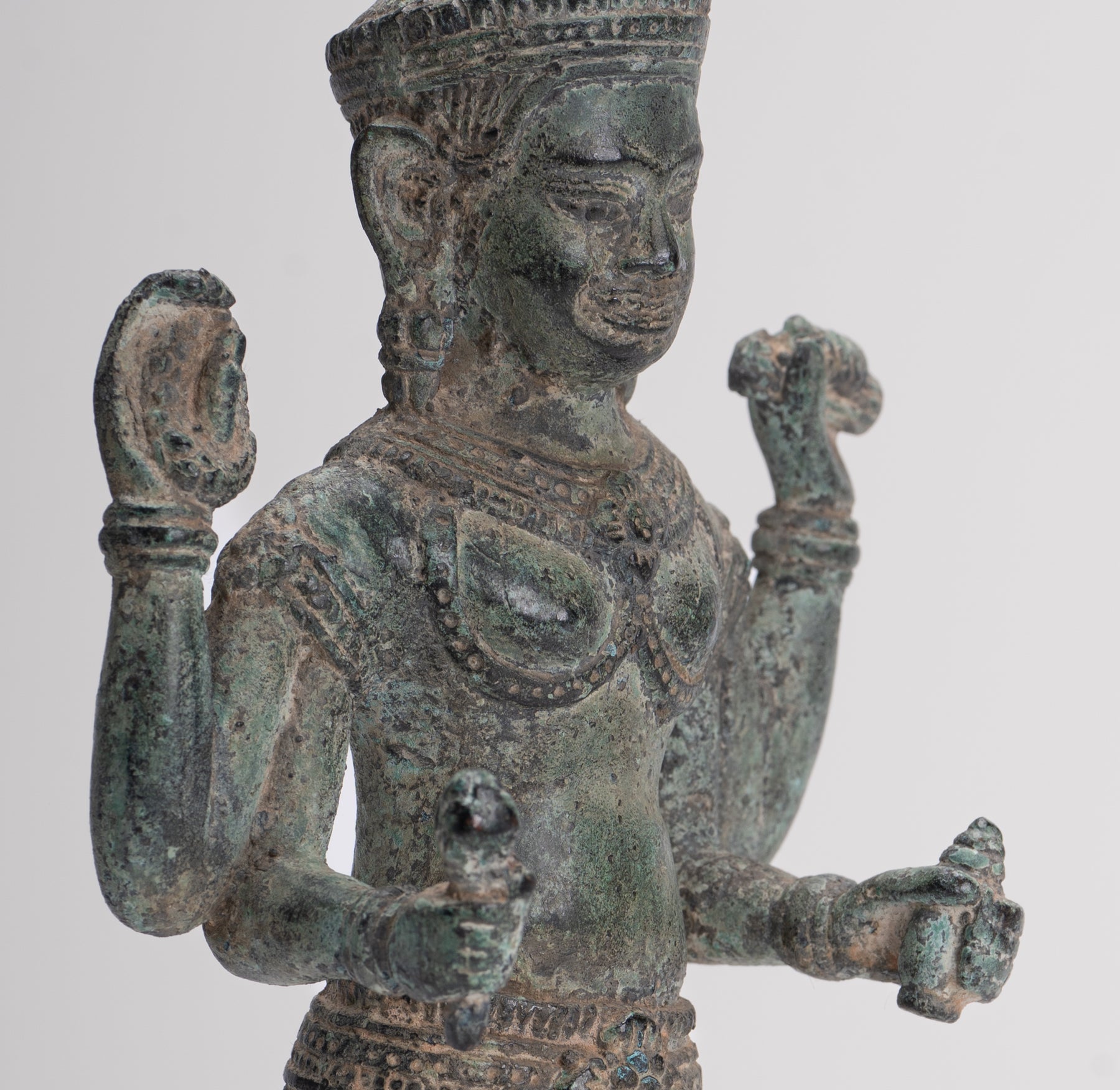 Sculpture Vishnu - Statue antique de Vishnu en bronze de style Angkor Wat - 25 cm / 10"