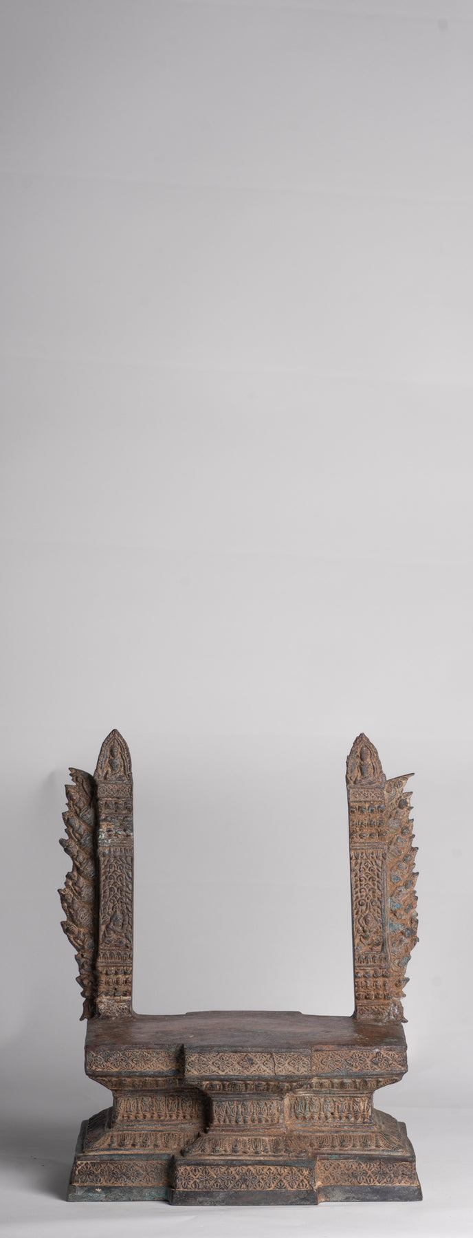 Autour du Bouddha se trouve une auréole. L'auréole à bord flamboyant comprend des bouddhas d'illumination et un fleuron orné inspiré d'une fleur de lotus. Ce cercle de lumière symbolise la divinité de Bouddha.