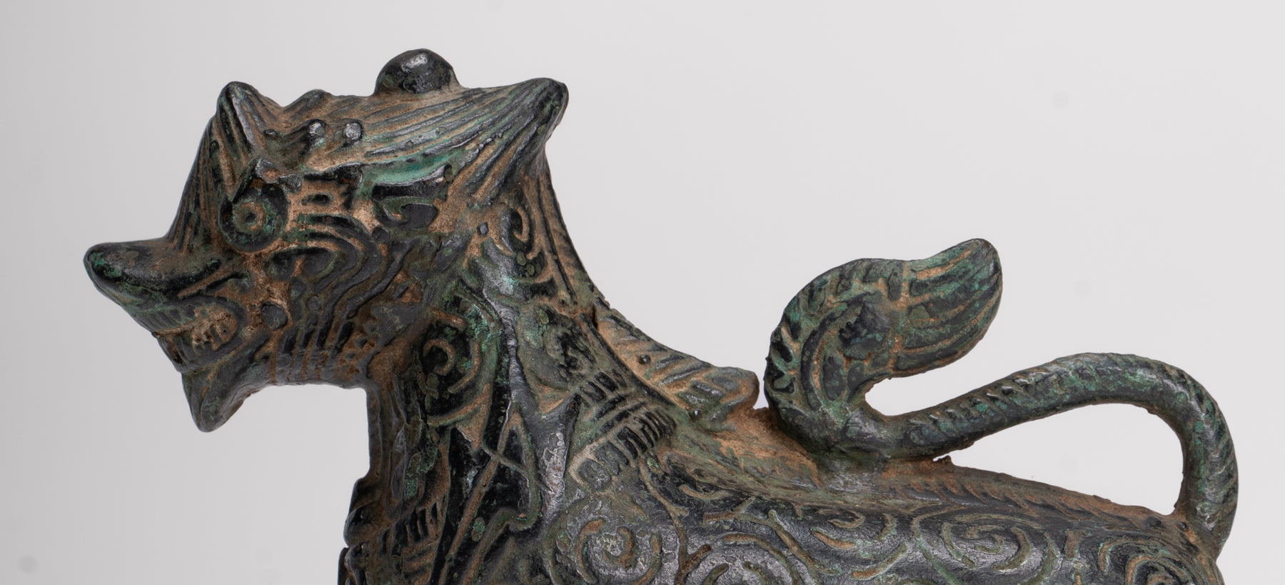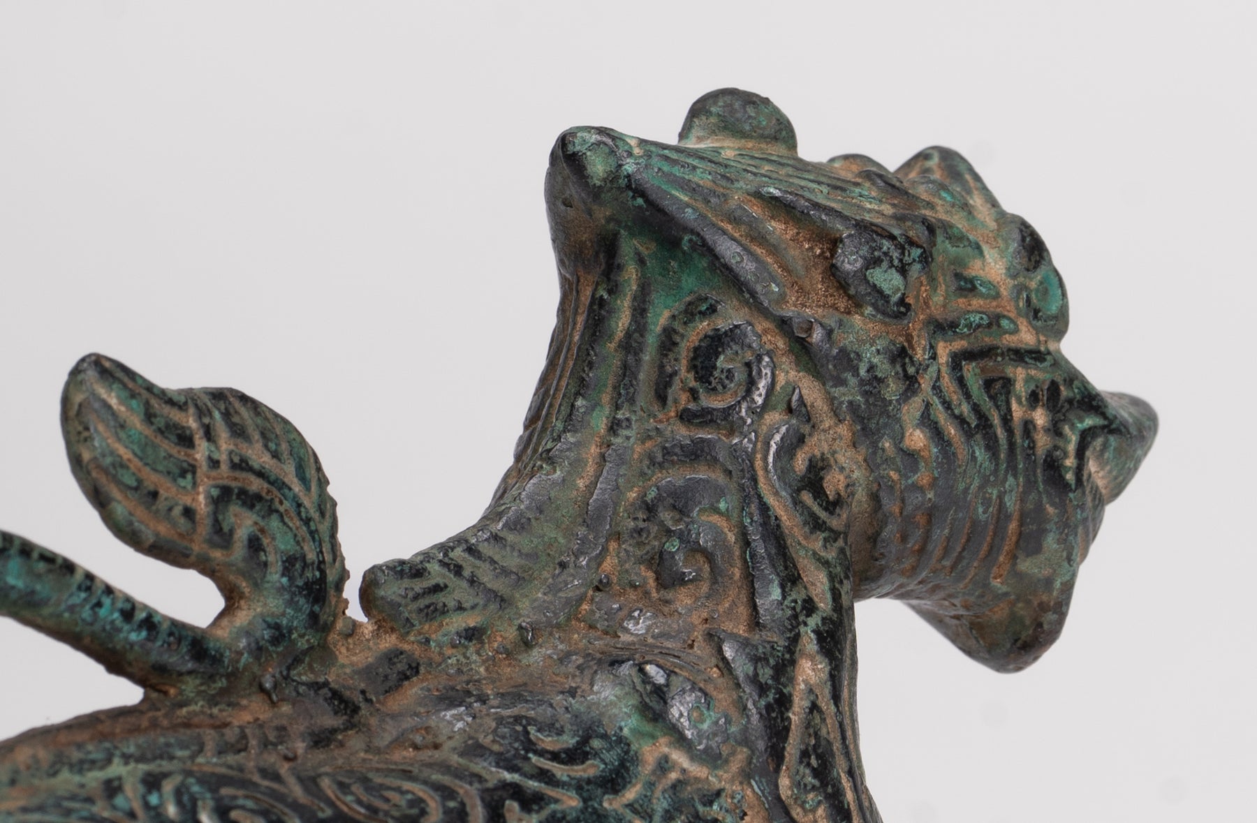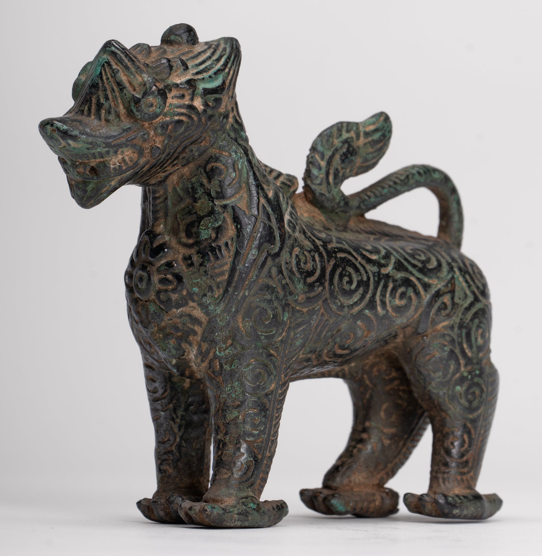Un lion Chinthe ou gardien antique en bronze de style khmer provenant de Cambodge.