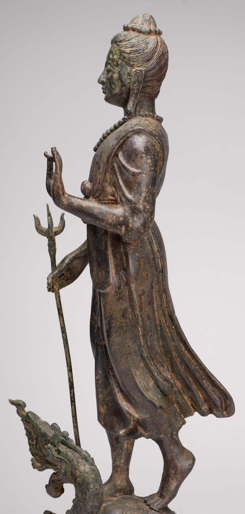 Shiva debout en bronze de style thaïlandais antique avec tortue et Naga - 58 cm/23"