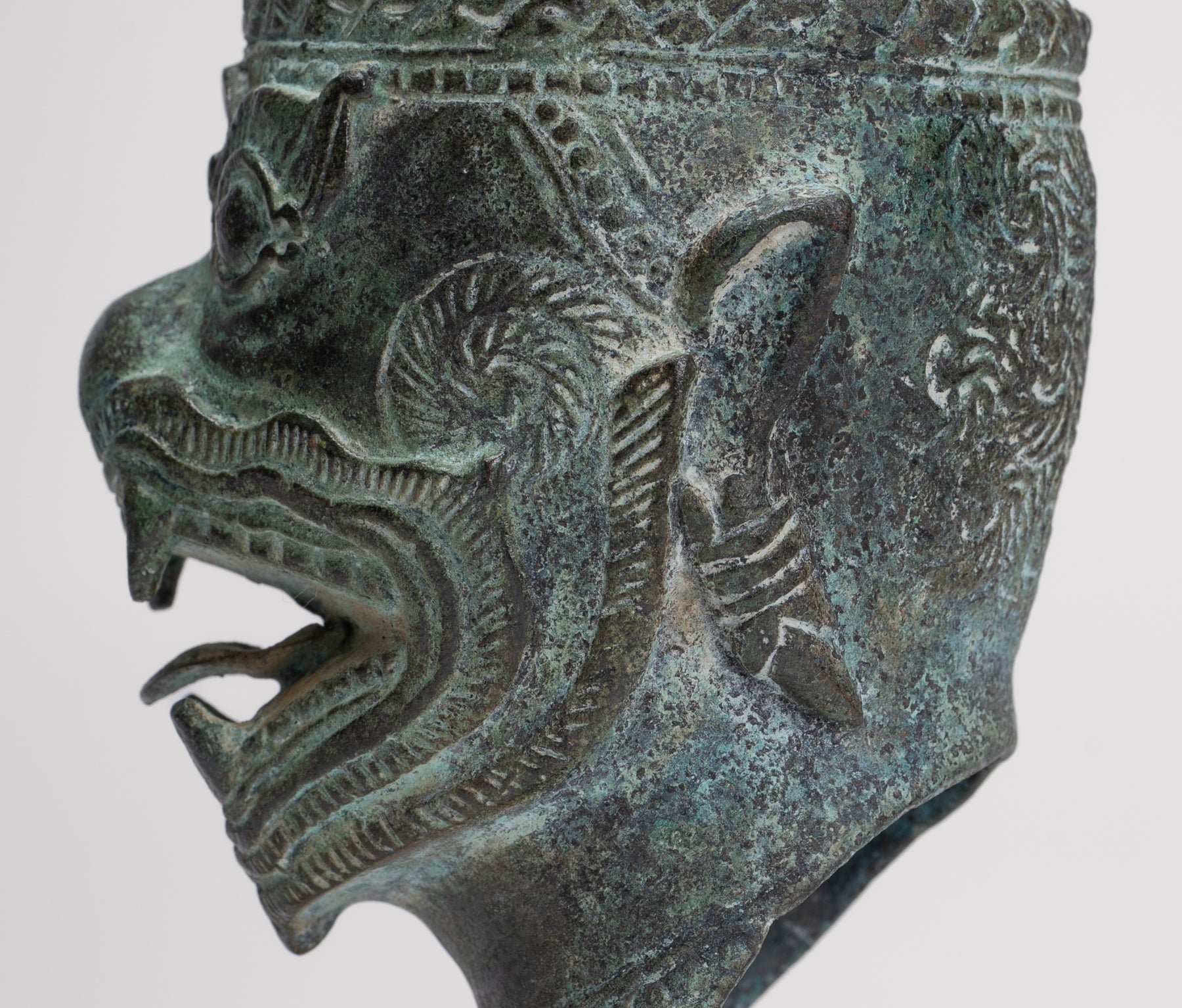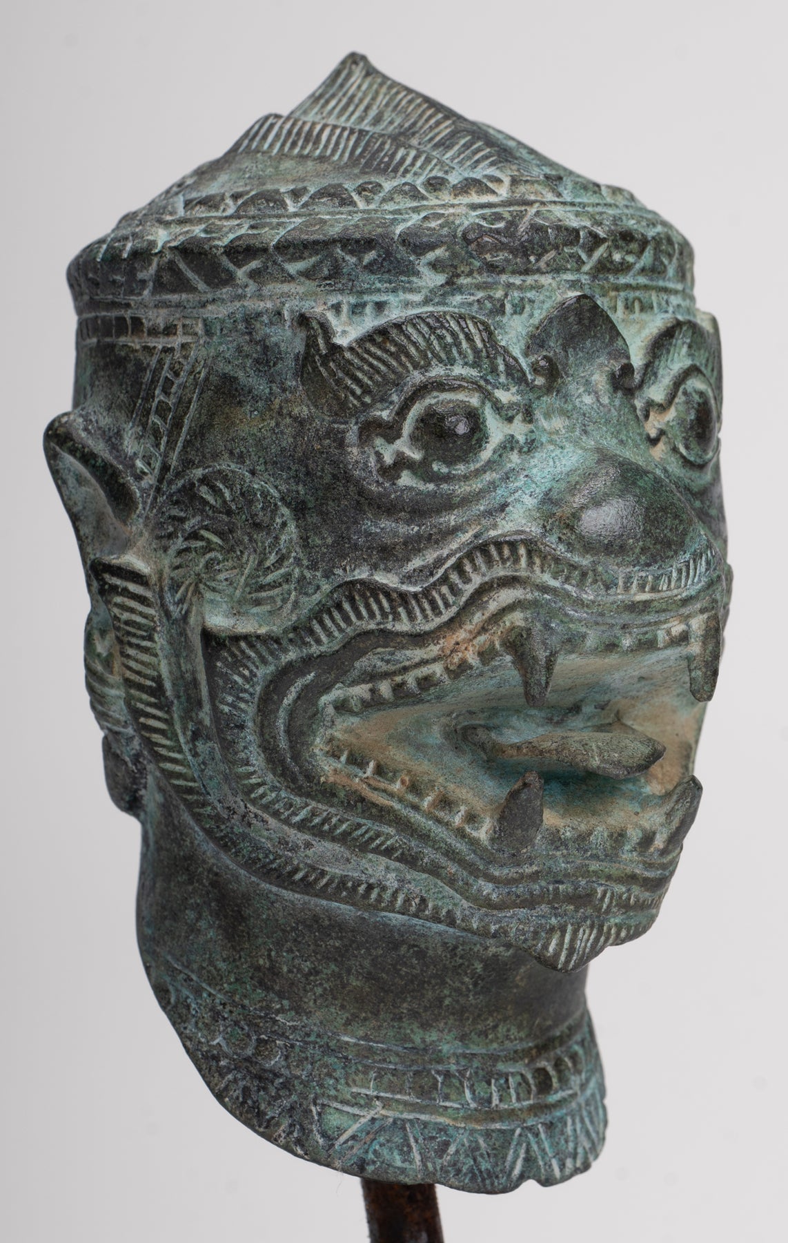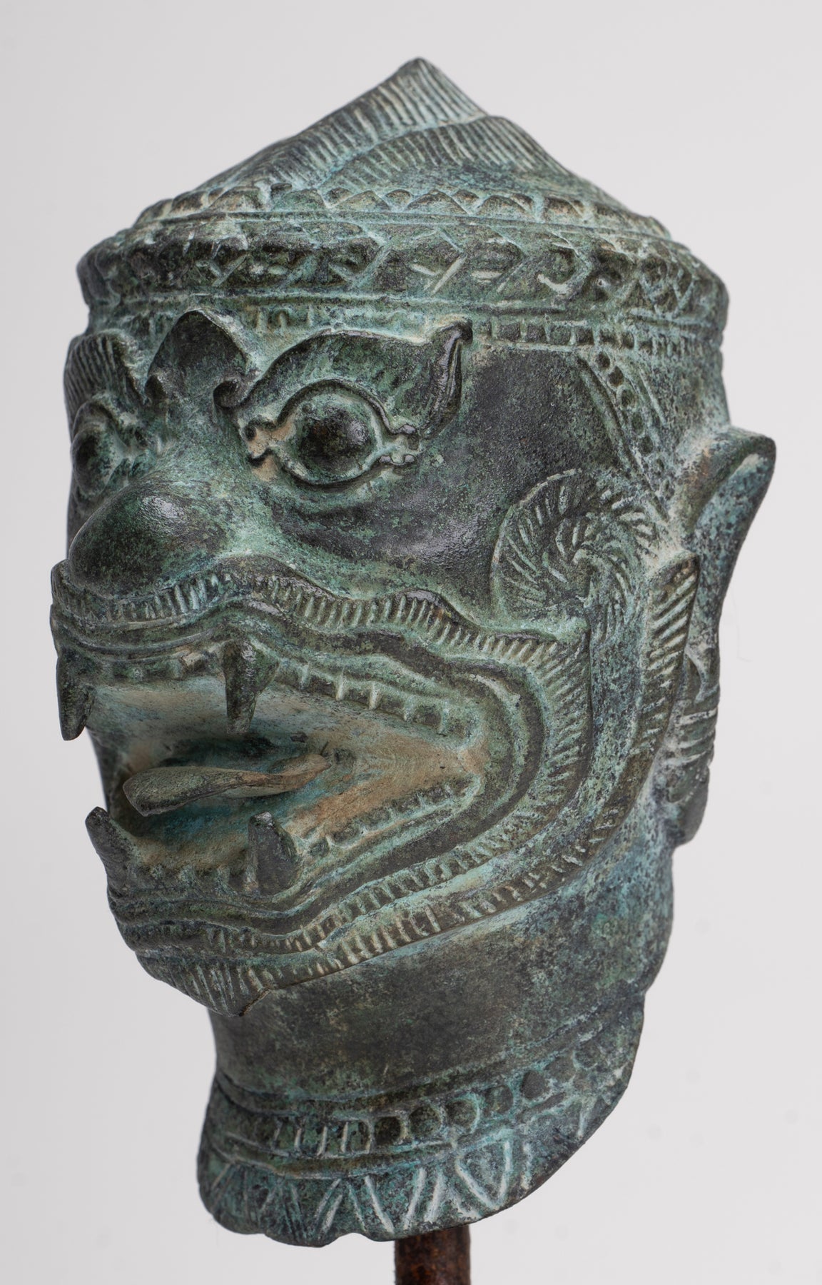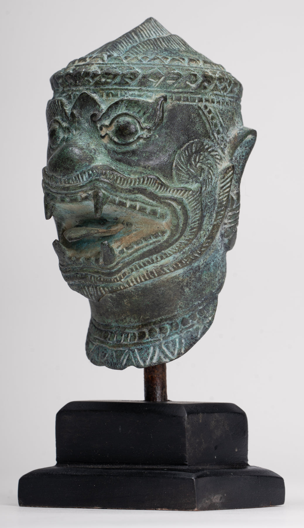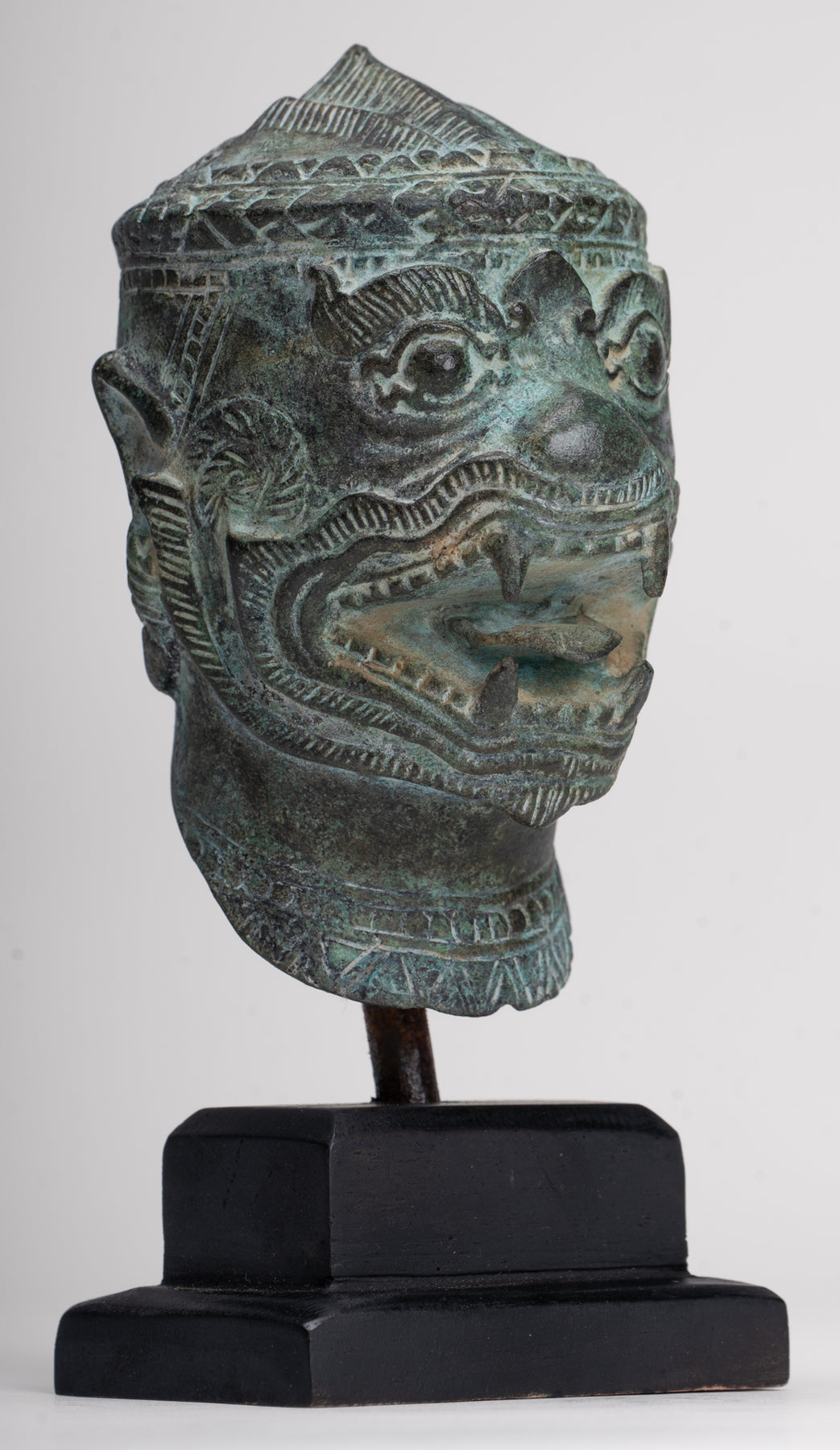 Cette sculpture est exécutée dans le style Bayon, avec un visage dynamique et expressif qui capte immédiatement l'attention. Des représentations similaires d'Hanuman et d'autres personnages peuvent être trouvées dans les reliefs du temple du Bayon, illustrant des scènes de bataille du XIIe siècle. L’idée d’un puissant commandant militaire sous forme de singe vient de l’épopée hindoue Ramayana, où l’armée du prince Rama est dirigée par le vaillant général singe Hanuman.