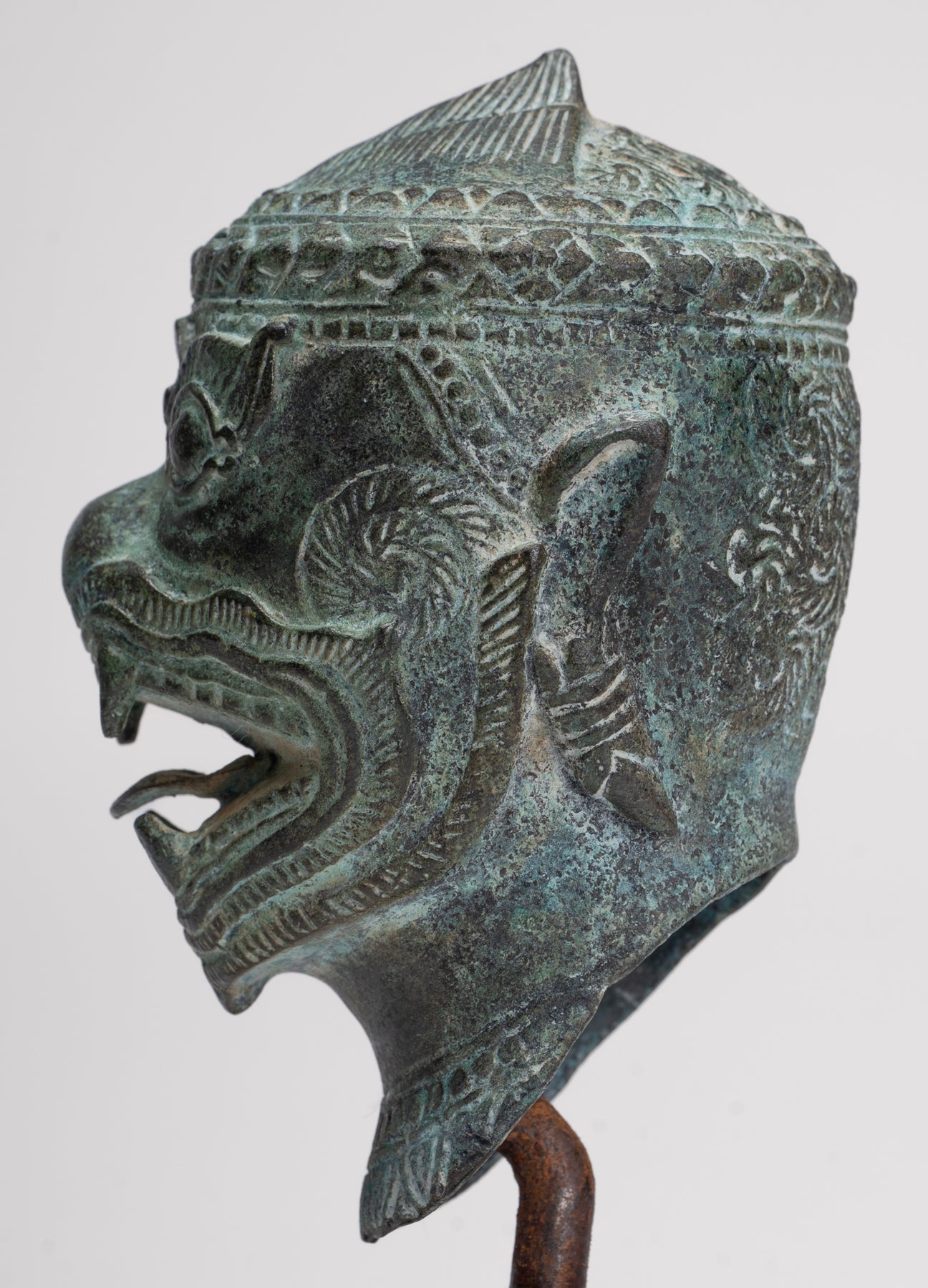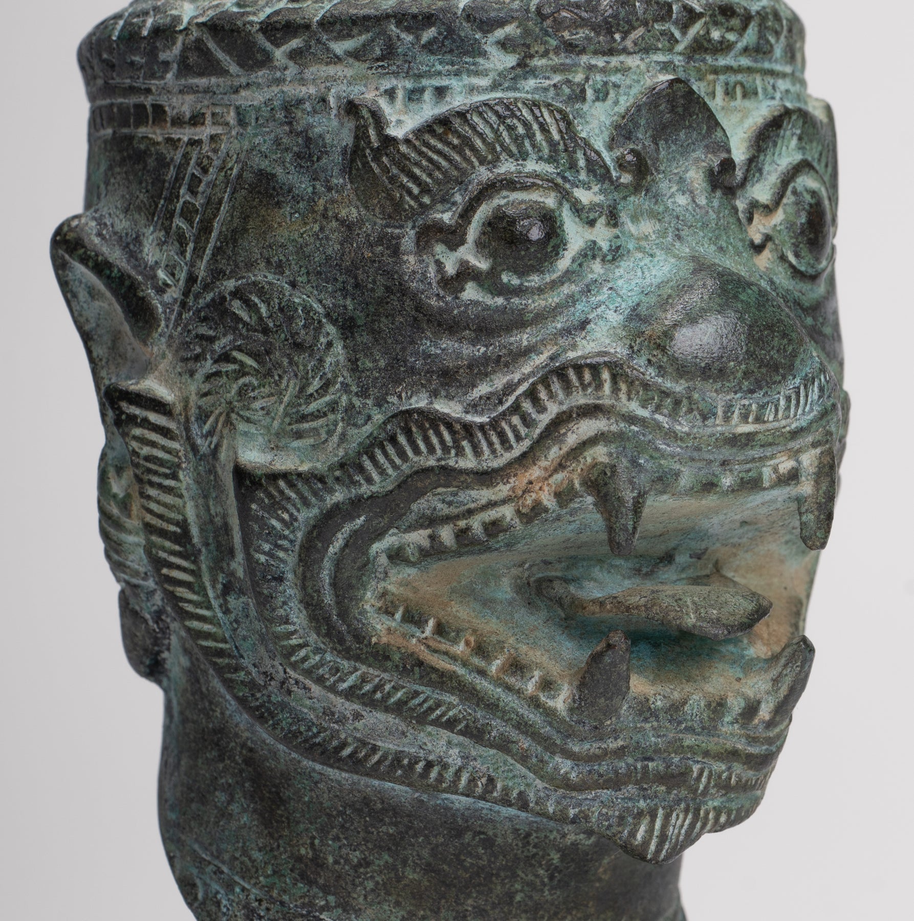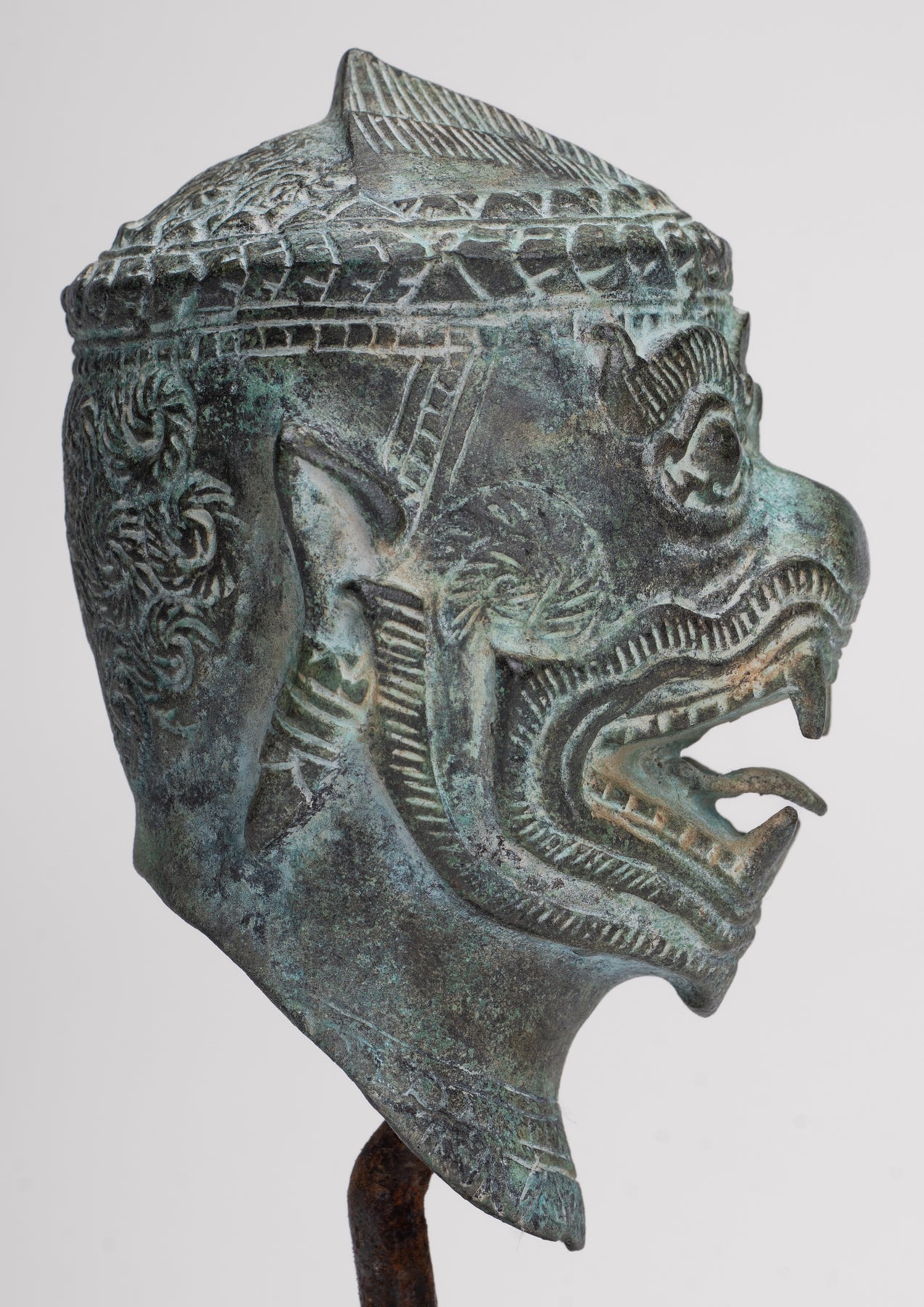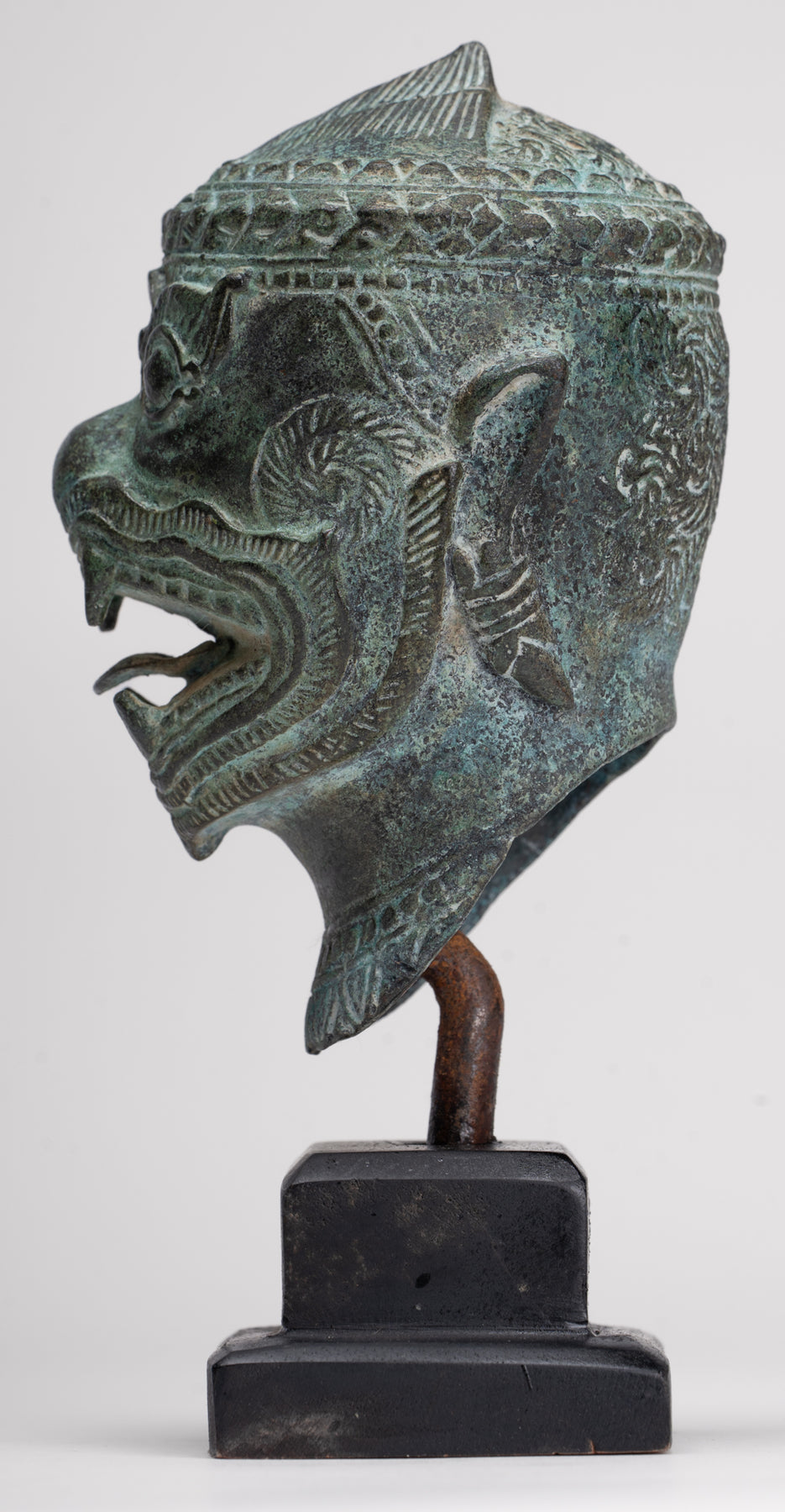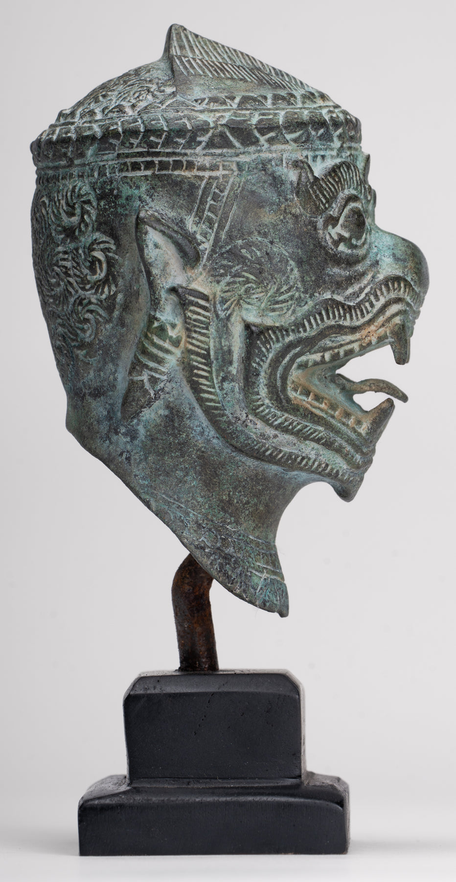 Cette sculpture est exécutée dans le style Bayon, avec un visage dynamique et expressif qui capte immédiatement l'attention. Des représentations similaires d'Hanuman et d'autres personnages peuvent être trouvées dans les reliefs du temple du Bayon, illustrant des scènes de bataille du XIIe siècle. L’idée d’un puissant commandant militaire sous forme de singe vient de l’épopée hindoue Ramayana, où l’armée du prince Rama est dirigée par le vaillant général singe Hanuman.