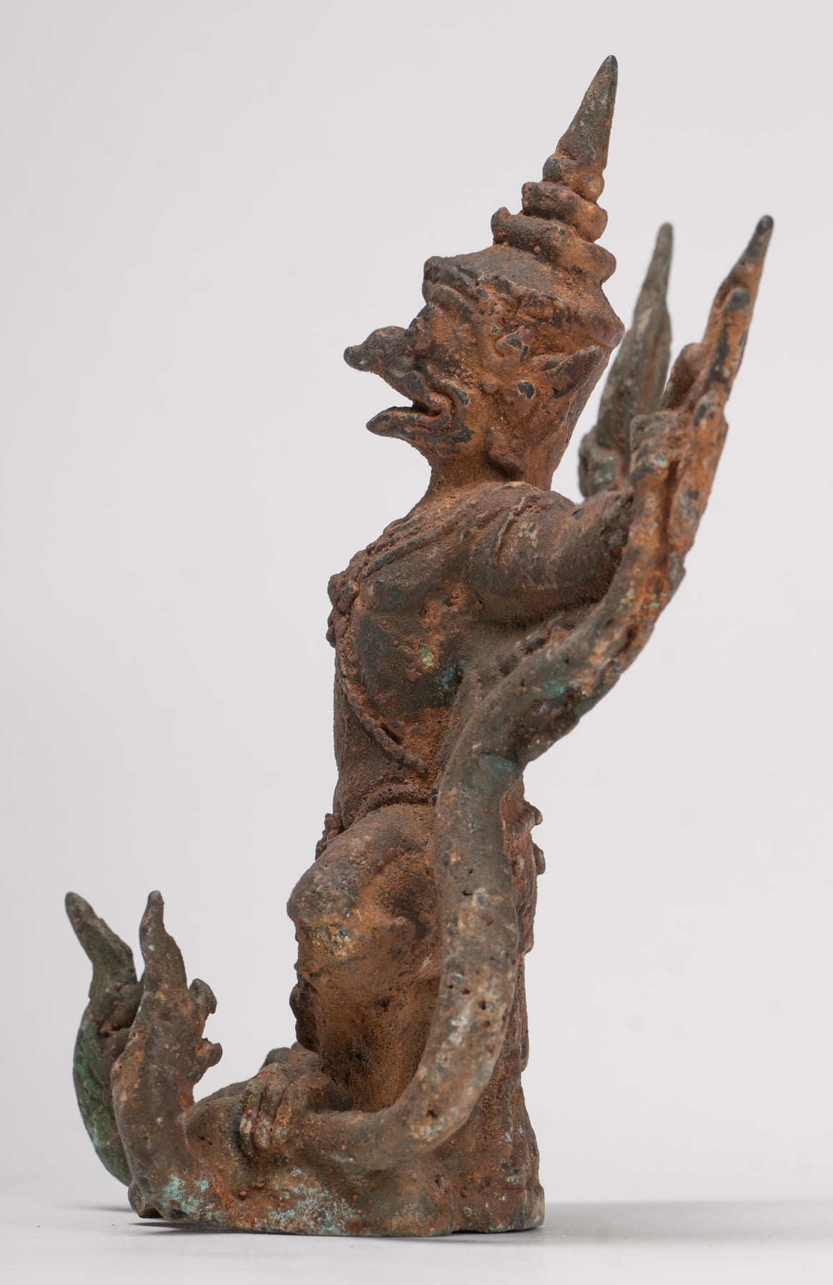 Statue antique de style thaïlandais debout en bronze de Vishnu Garuda - 20 cm/8"
