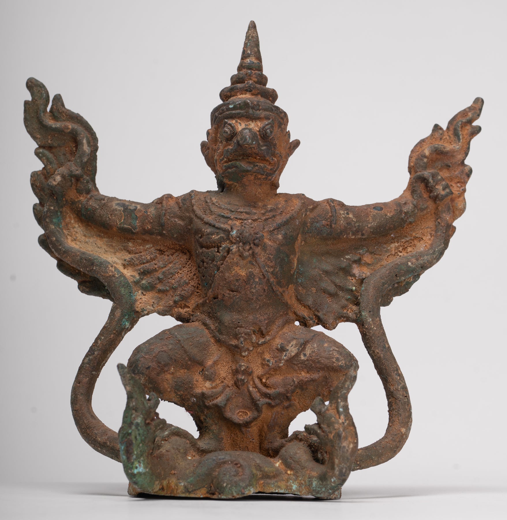 Garuda en bronze antique de style thaïlandais, le mont de Vishnu, avec des ailes largement déployées dans une forme thaïlandaise classique.