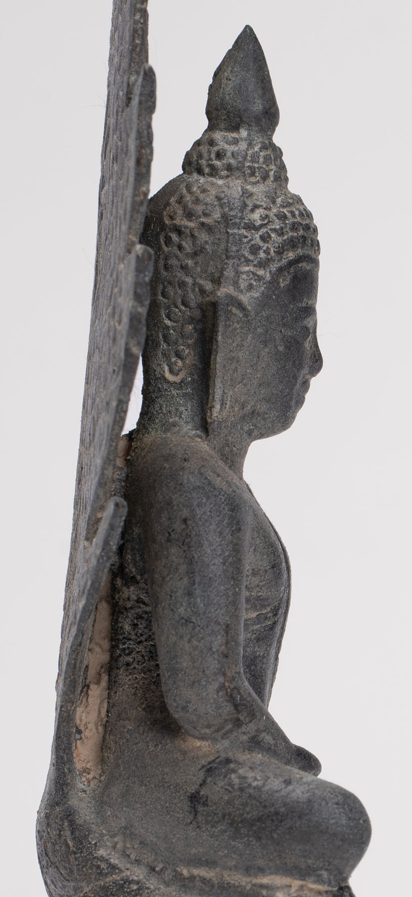 Contrairement aux sculptures en relief sculptées dans des stèles de pierre, cette figure est coulé entièrement en rond, ce qui suggère qu'il a été conçu pour être admiré sous tous les angles. Un tel savoir-faire reflète le Idéal de l’ère Sukhothai cet art sacré doit rayonner de présence et d’harmonie à l’intérieur des temples, invitant les fidèles à expérimenter la sérénité du Bouddha sous tous les angles. Bien qu'imprégnée d'une profonde signification religieuse et façonnée sous la direction d'un prêtre, la statue porte un symbole saisissant. réalisme et vitalité qui révèlent le talent artistique des sculpteurs thaïlandais à leur meilleur.