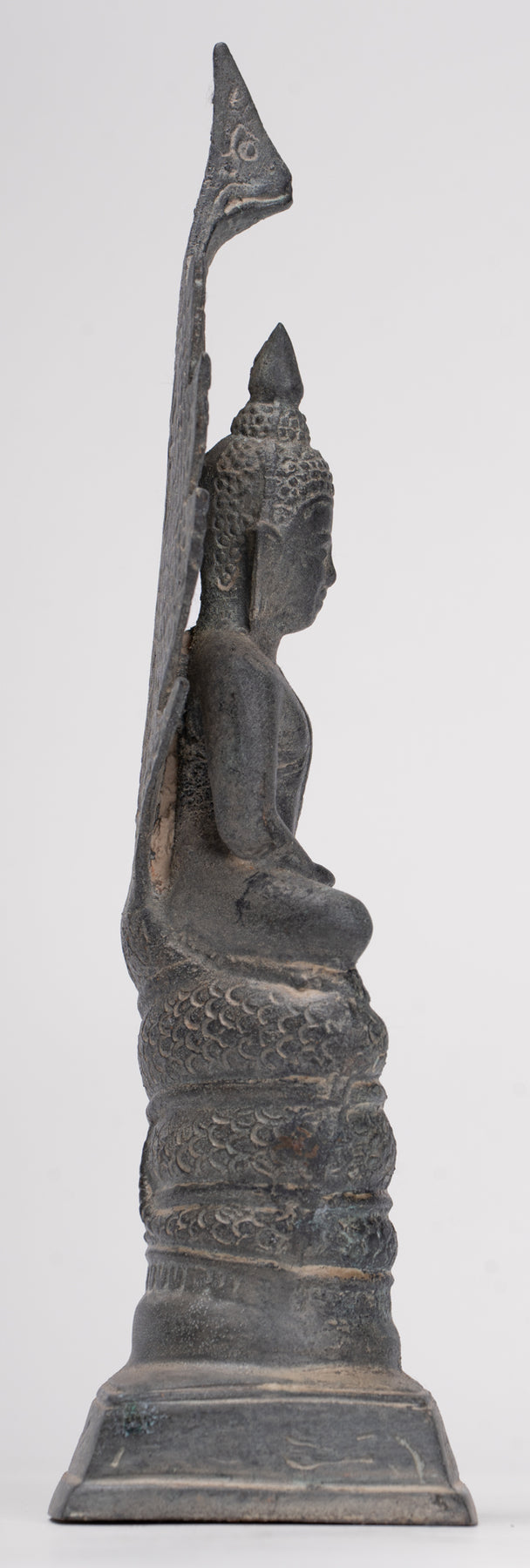Statue antique de Bouddha Naga méditant en bronze de style Sukhothai - 21 cm/8"