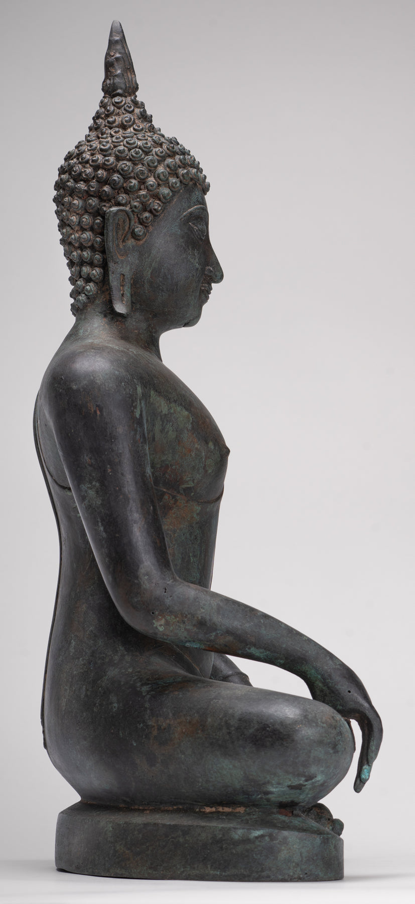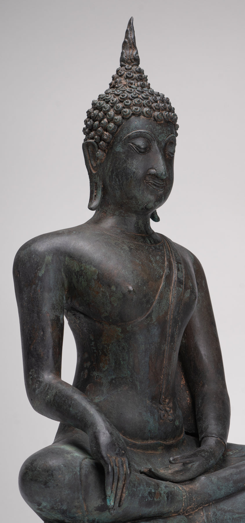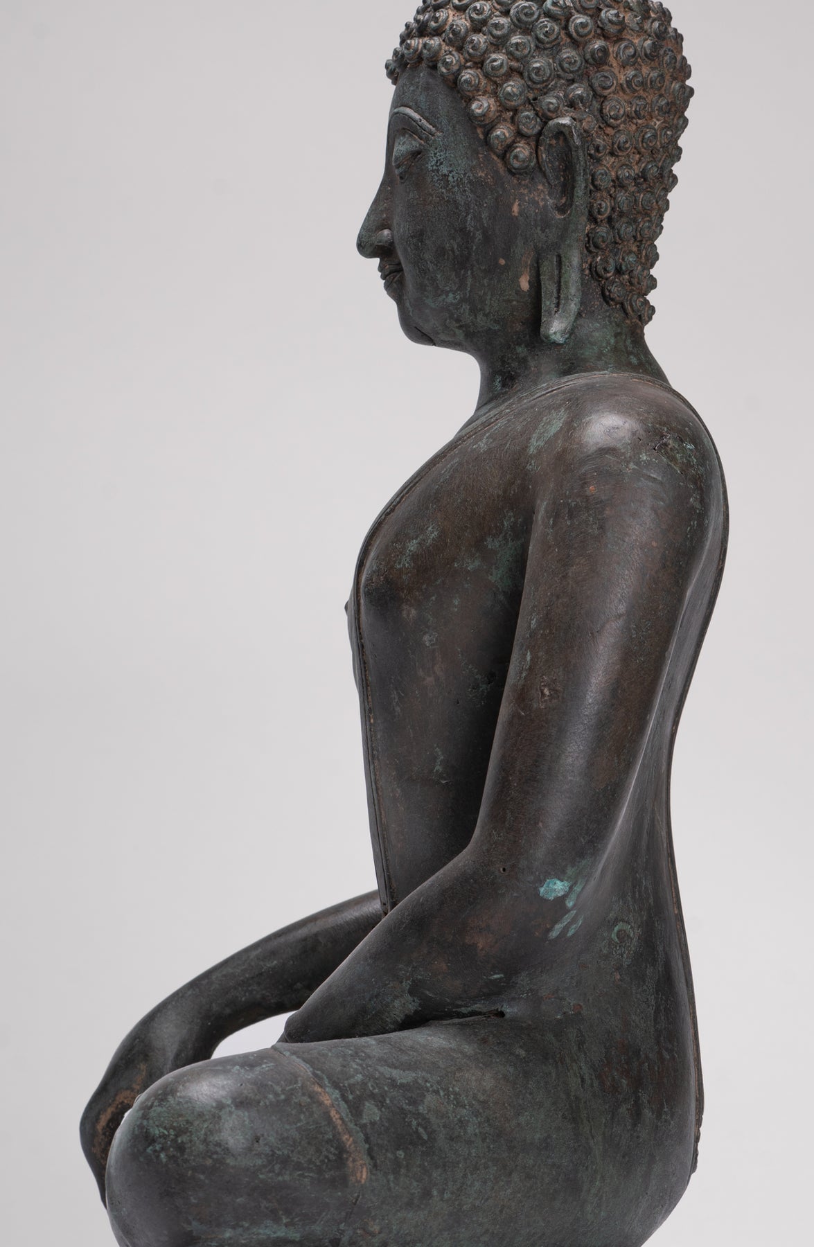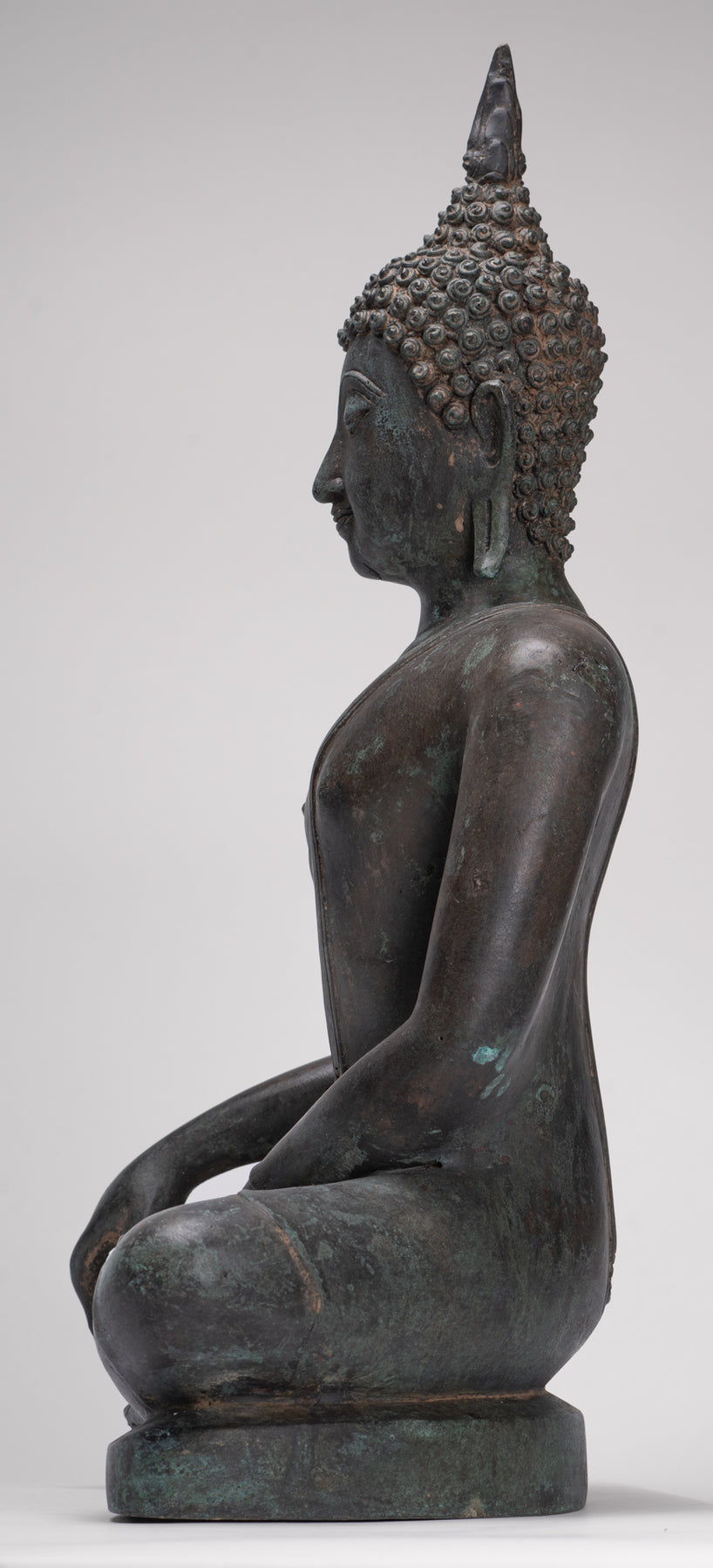 Un bouddha Sukhothai assis antique de style thaïlandais provenant de Thaïlande.