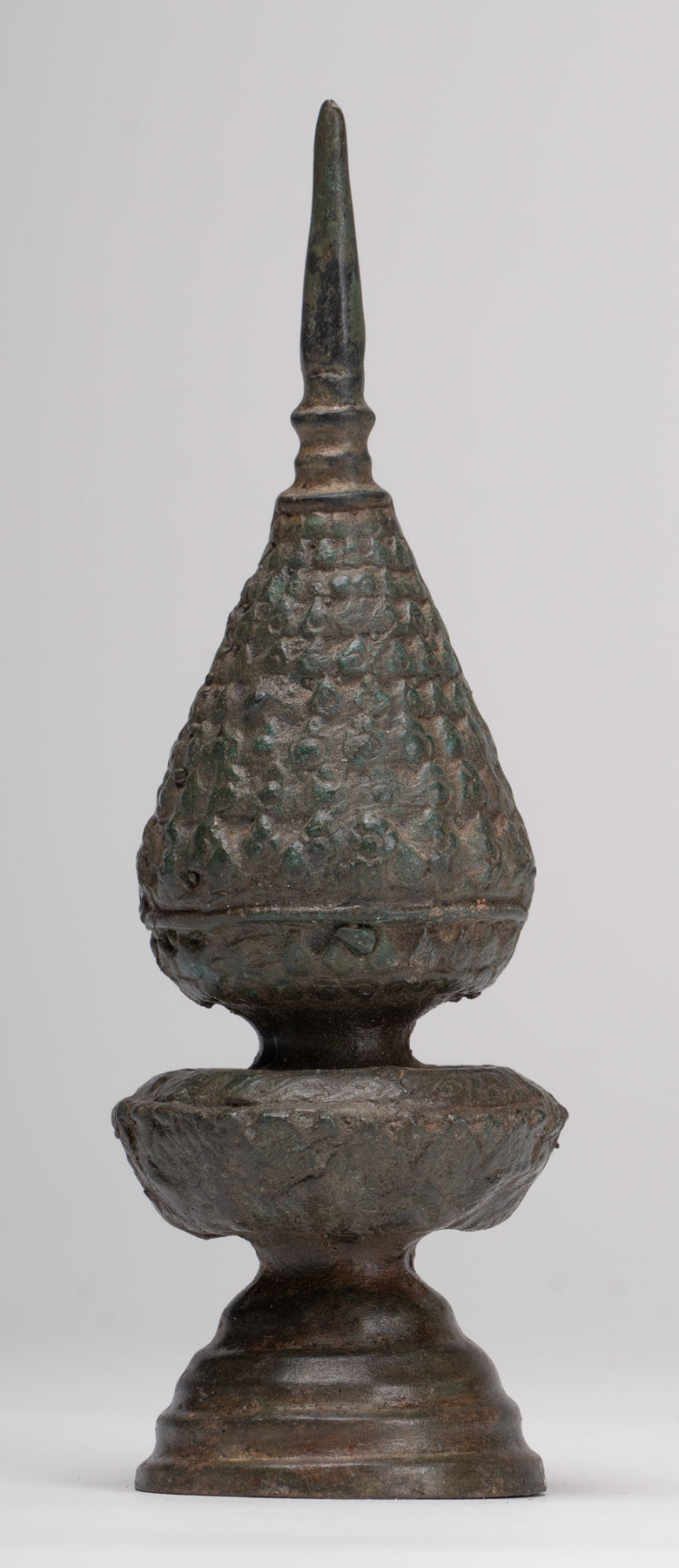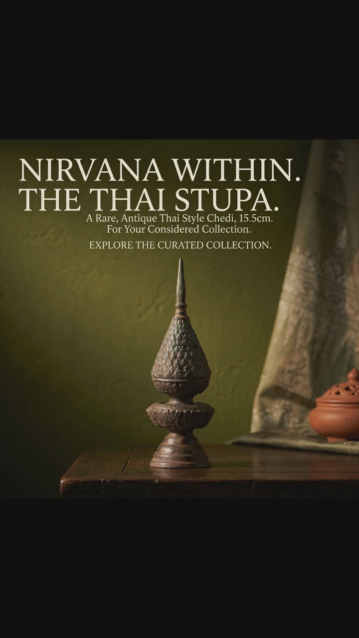 D'apparence traditionnelle mais étonnamment sculptural, ce stupa reliquaire ajoutera à coup sûr une présence unique et sereine à n'importe quelle pièce de votre maison, espace de méditation ou lieu de travail, qu'il soit exposé seul ou dans le cadre d'une collection d'art bouddhiste organisée.