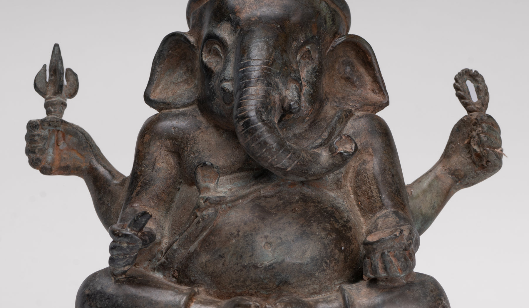 Un casting expressif Ganesha debout à 4 bras en bronze de style thaïlandais antique.
