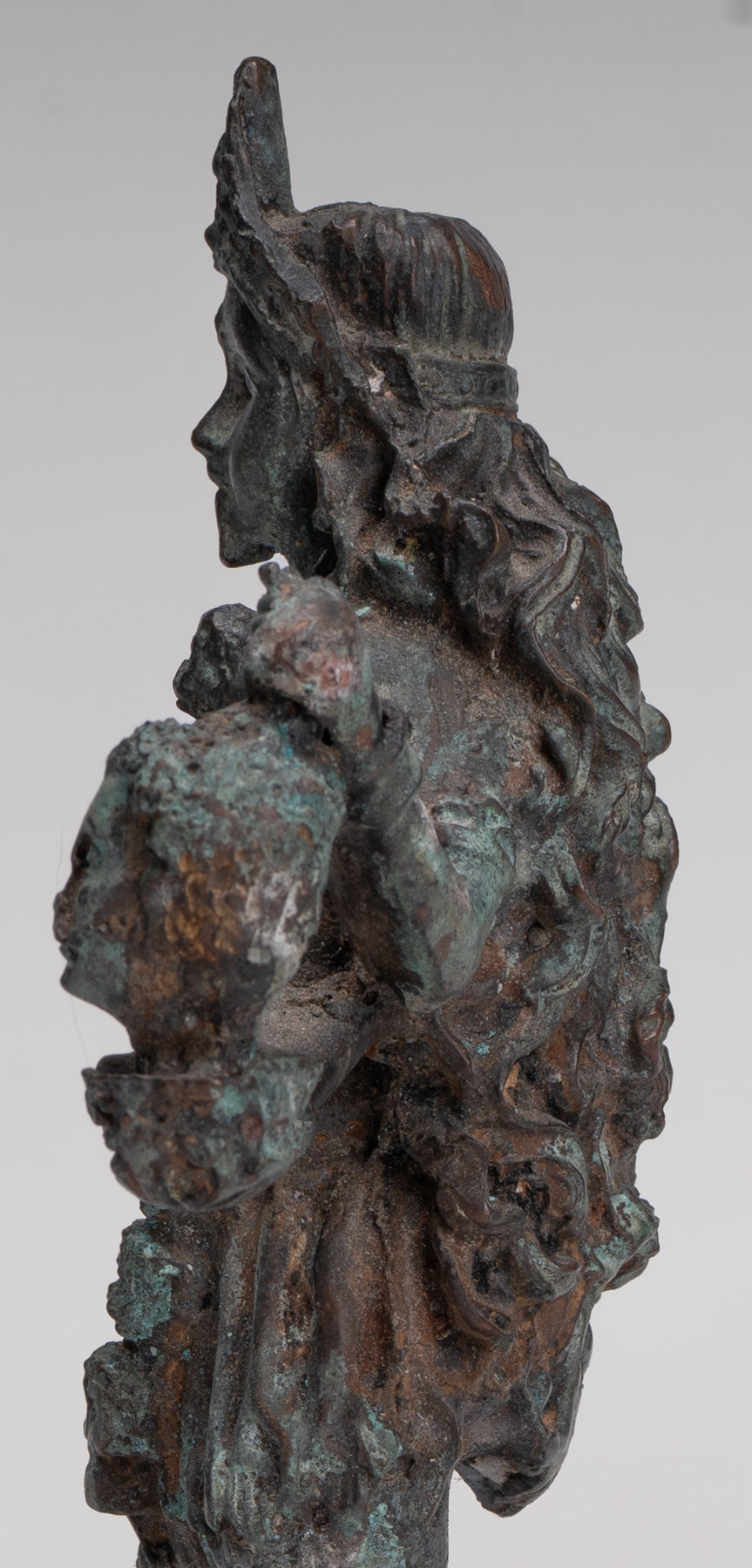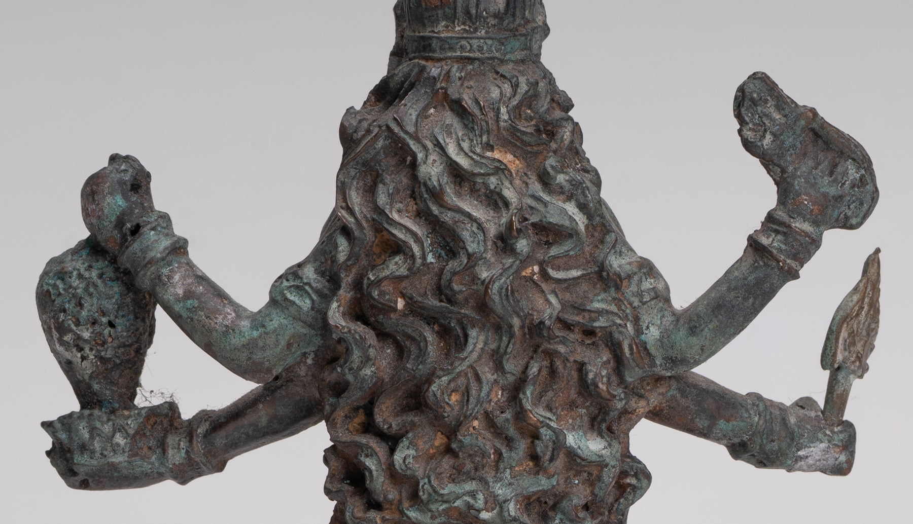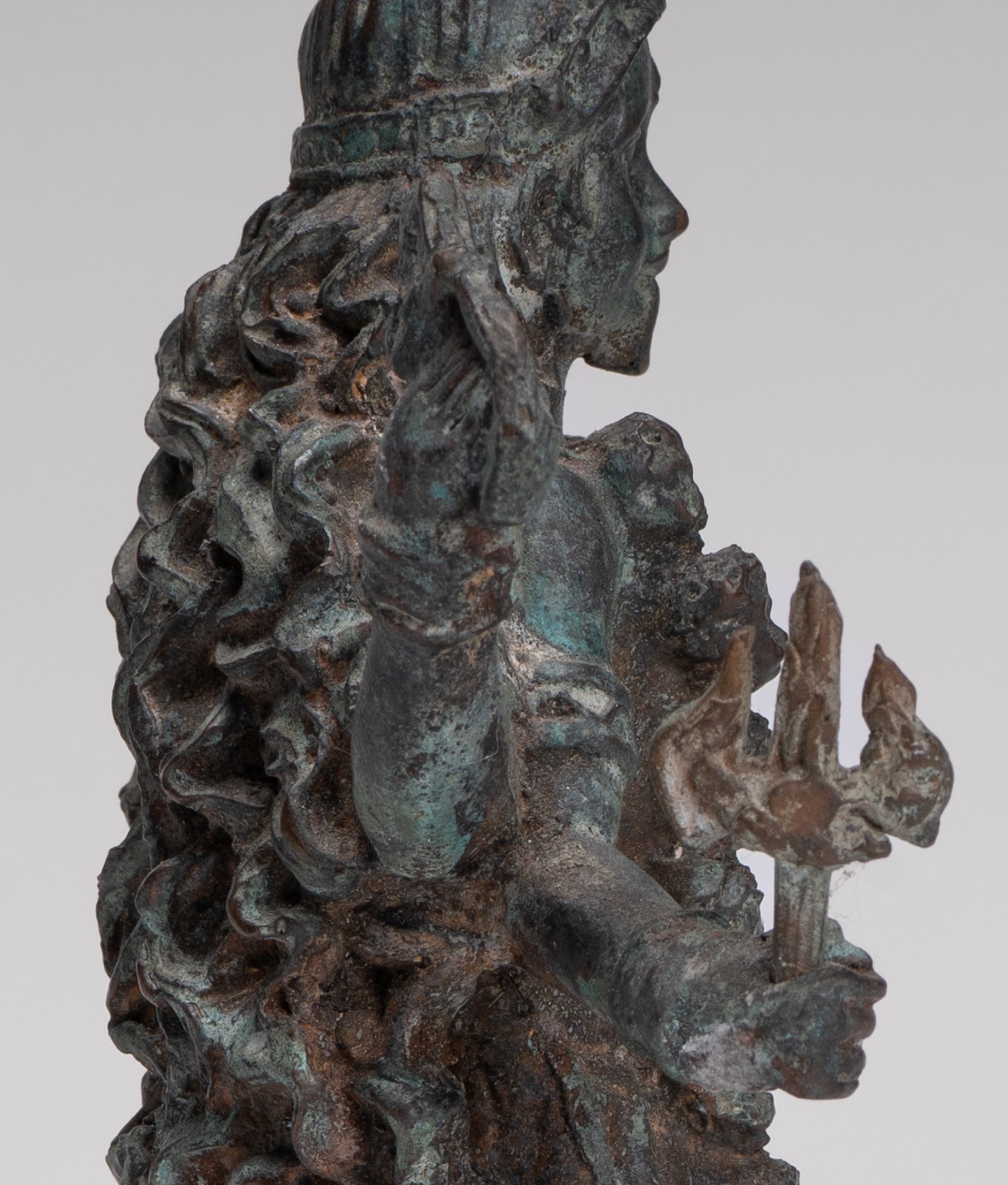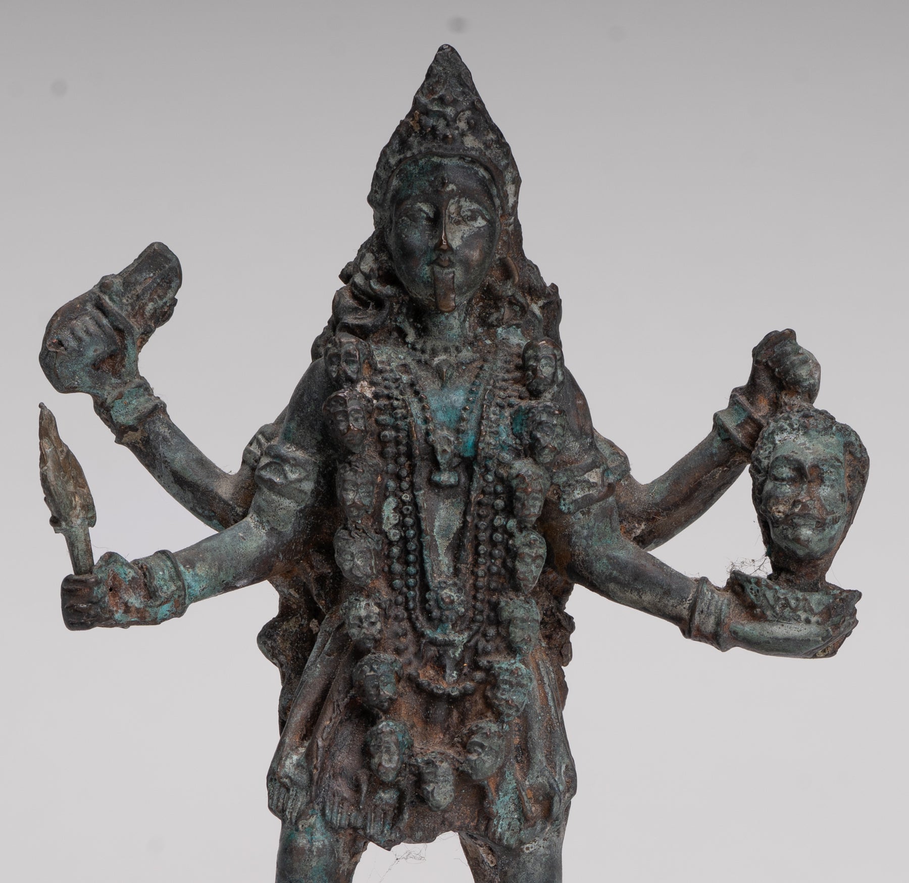 La sculpture comprend également un trident amovible (trishula), soulignant encore davantage le rôle de Kali en tant que détenteur d’un pouvoir transformateur.