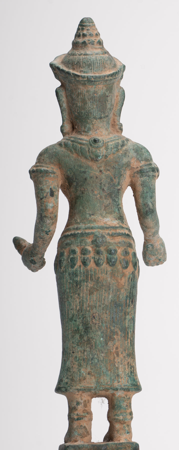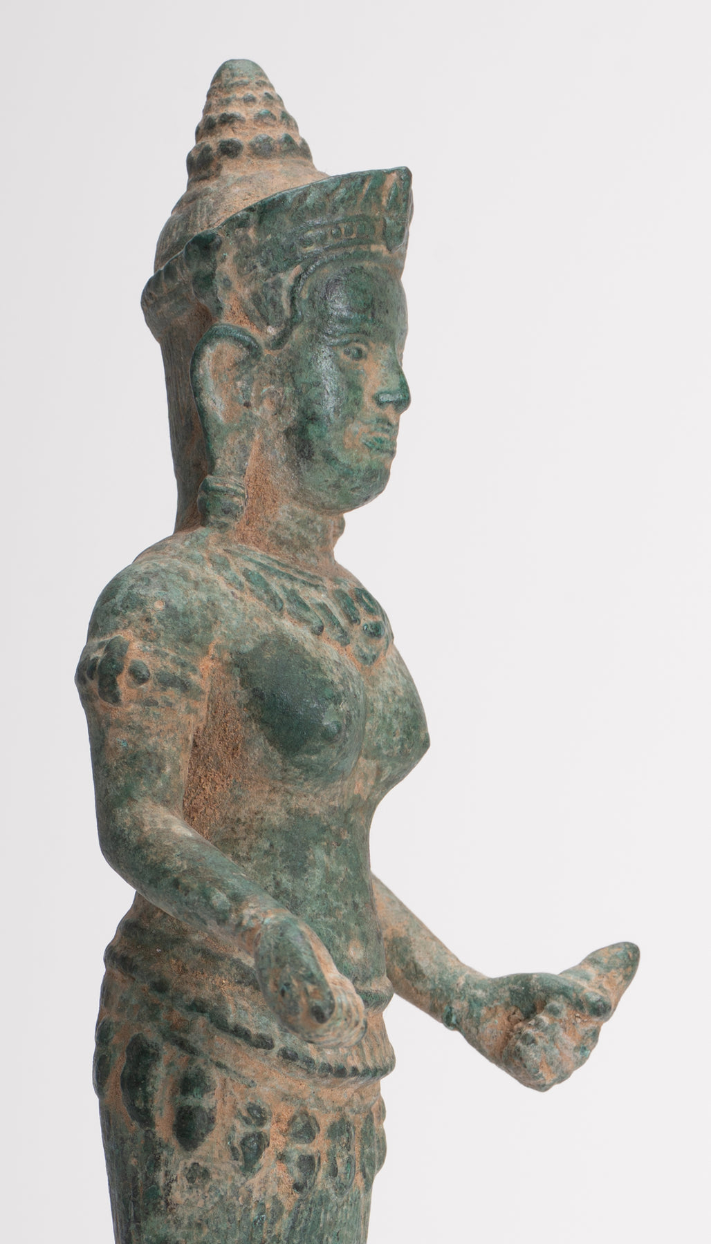 - Statue antique de style khmer Bayon Lakshmi / Devi Consort de Vishnu - 37 cm/15" Mesures : (hauteur) 37 cm/15 Statue antique de Lakshmi, devi ou déesse de style khmer de la fin du XIIe et du début du XIIIe siècle dans le style Bayon. Lakshmi se tient sur un simple socle rectangulaire. Elle est vêtue d'un long sampot plissé avec une ceinture en fleur de lotus. Les cheveux sont attachés avec une bande de perles pour former un chignon arrondi. Elle est debout avec ses mains dans l'Abhaya ou mudra de protection et dans le Dharmachakra ou mudra d'enseignement. Lakshmi est la déesse hindoue de la richesse, de la prospérité (à la fois matérielle et spirituelle), de la lumière, de la sagesse, de la fortune, de la fertilité, de la générosité et du courage. L'incarnation de la beauté, de la grâce et du charme. Également appelée Mahalakshmi, elle est censée porter chance et protéger ses fidèles de toutes sortes de misère et de chagrins liés à l'argent. La patine azur et les détails de cette pièce sont particulièrement attrayants. Cette pièce d'apparence traditionnelle ajoutera à coup sûr une touche unique à n'importe quelle pièce de votre maison ou de votre lieu de travail. L'une des divinités asiatiques les plus reconnaissables, cette représentation de l'épouse de Vishnu illuminera à coup sûr votre maison avec un style intemporel. GARANTIE DE SATISFACTION - Nous proposons de l'art asiatique, via notre site Web et eBay, depuis de nombreuses années et sommes fiers de la réputation que nous avons développée en matière d'annonces justes et honnêtes. Cependant, si pour quelque raison que ce soit vous n'êtes pas satisfait de votre achat, veuillez nous le faire savoir et nous vous rembourserons intégralement. Nous voulons que vous soyez 100% satisfait de votre achat. Cette pièce d'apparence traditionnelle apportera à coup sûr de la sérénité à votre maison, bureau ou lieu sacré. Nous avons d'autres statues asiatiques antiques disponibles. Veuillez consulter notre autre liste où nous avons d’autres belles pièces asiatiques disponibles. Pour plus d’art asiatique magnifique – www.hdasianart.com Heureux d’expédier dans le monde entier. Veuillez envoyer un e-mail pour connaître les prix de messagerie internationaux confirmés vers votre pays. Des réductions de frais de port s'appliquent pour plusieurs achats. Veuillez envoyer un e-mail pour toute question. Veuillez envoyer un e-mail avec des demandes commerciales. Merci de votre intérêt. HD Asian Art SCBR2790