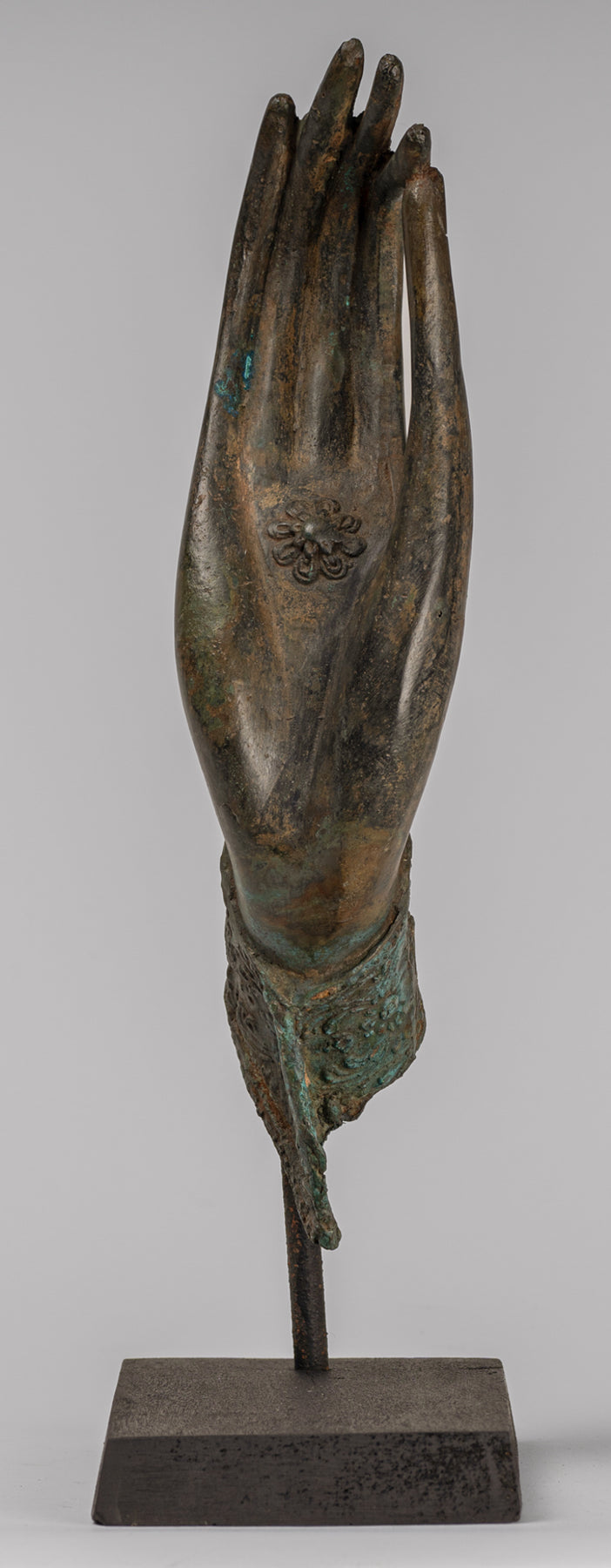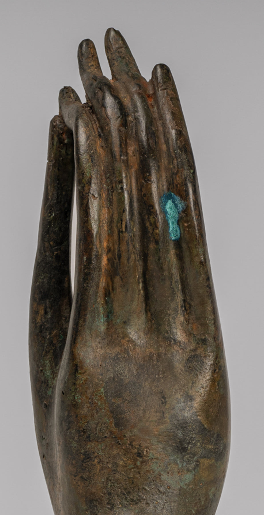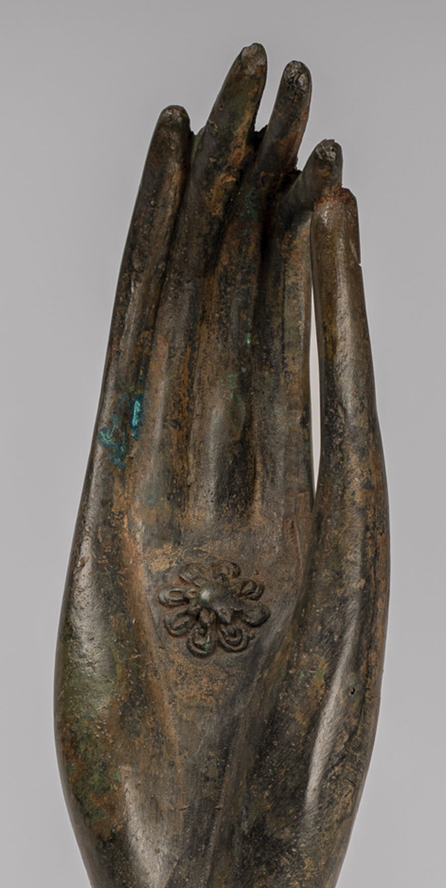 Mounted Antique Thai Style Southeast Asia Bronze Thai Teaching Hand - 33cm/13"