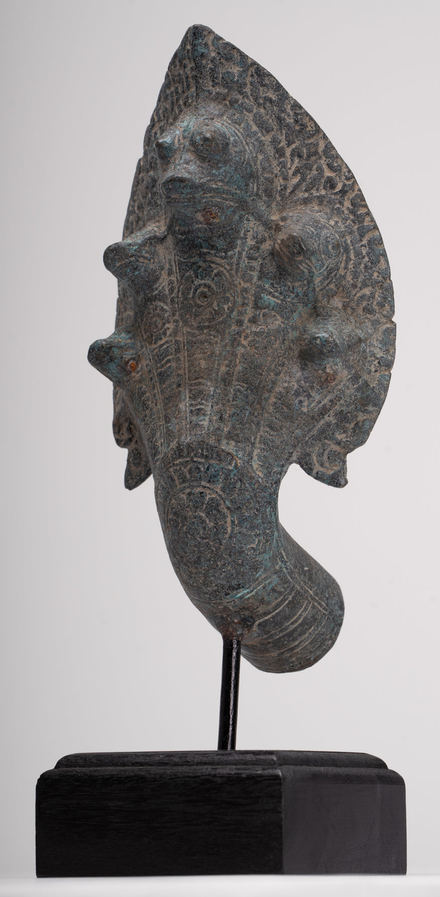 Naga Statue - Antique Khmer Style Bronze Protective Naga, Snake or Serpent Statue - 29cm/12"