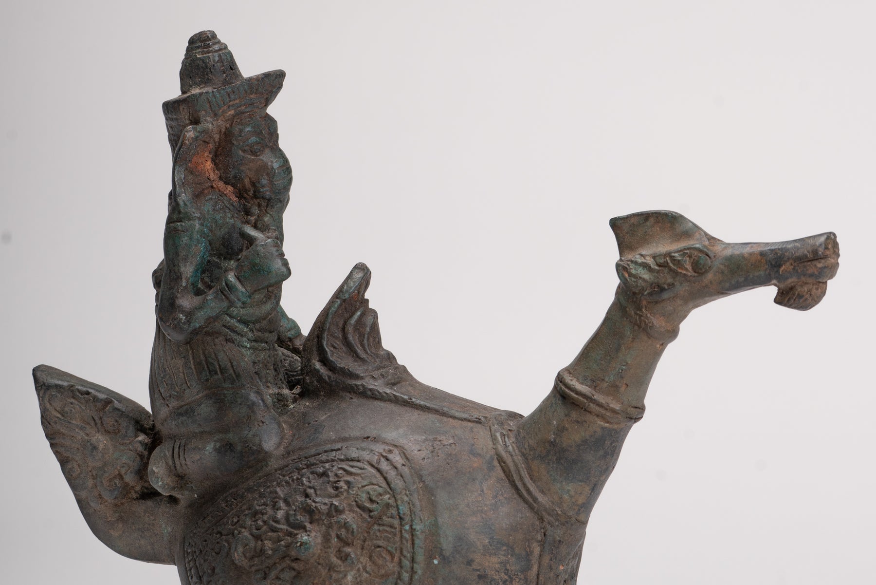 Ganesha-Statue – Antiker thailändischer Bronze-Ganesha auf einem Drachen reitend – 20 cm