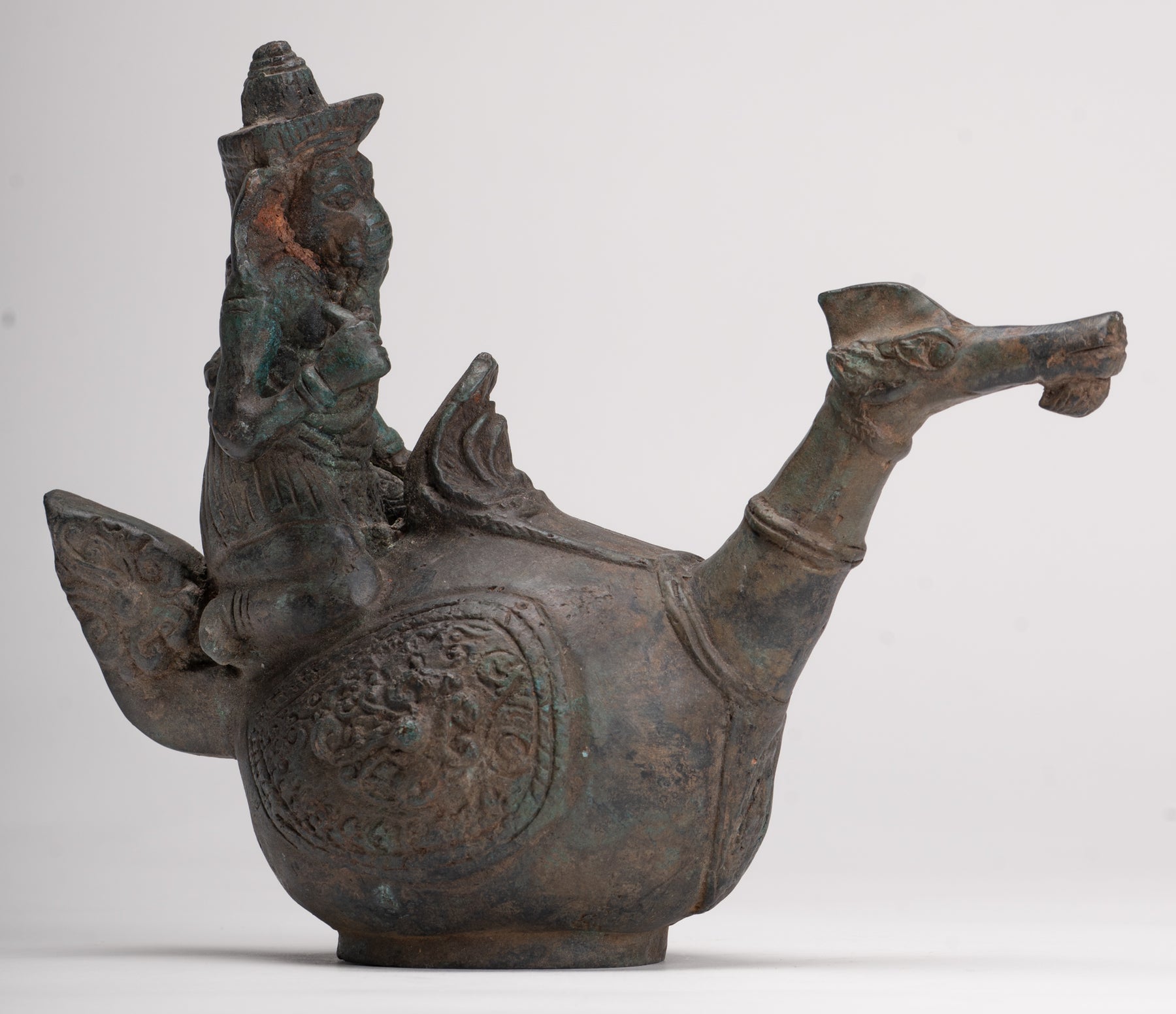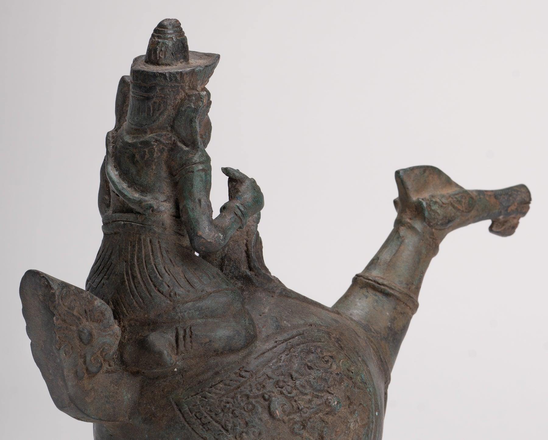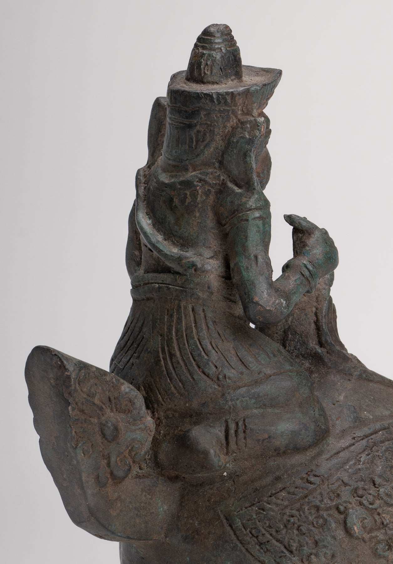 Diese Bronzeskulptur ist ein exquisites Beispiel für Südostasiatische Handwerkskunst, wahrscheinlich von Ursprung von Thailand, Wo hinduistische und buddhistische Einflüsse seit Jahrhunderten mischt werden.