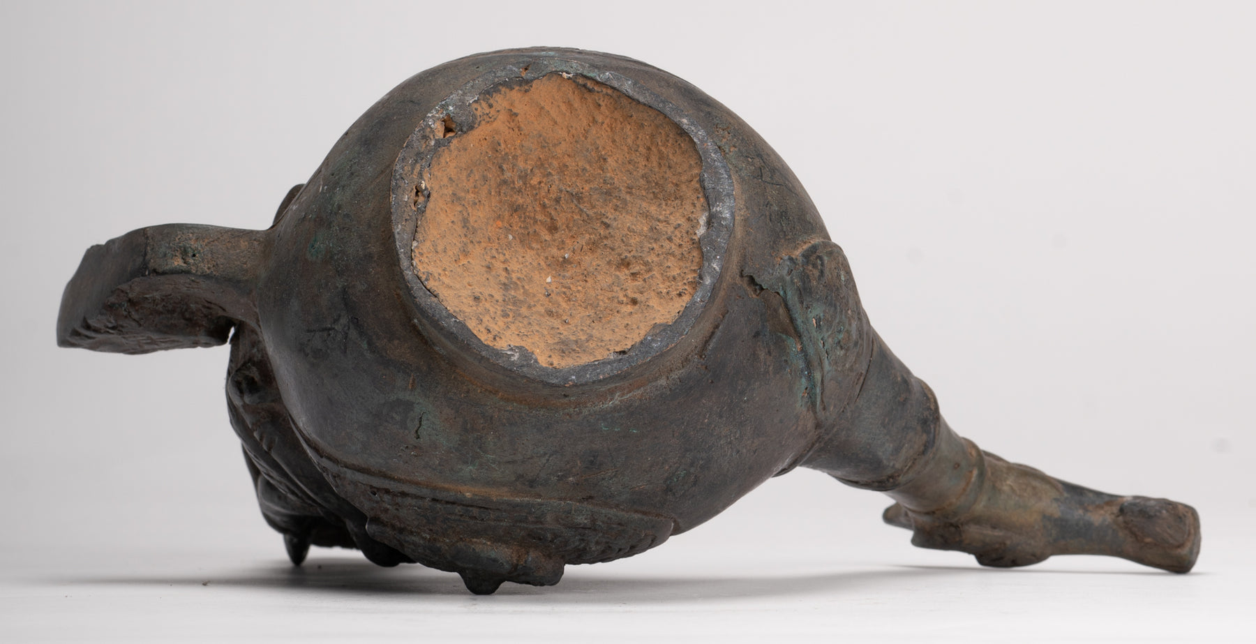 Bemerkenswerterweise ähnelt die abgerundete Form des Drachen a Ritualgefäßund schlägt vor, dass dieses Stück möglicherweise auch a gedient hat zeremonieller oder funktionaler Zweck in religiösen Riten. Die dekorativen Reliefs entlang seines Körpers deutet auf Heilige Erzählungen oder Schutzmotive.