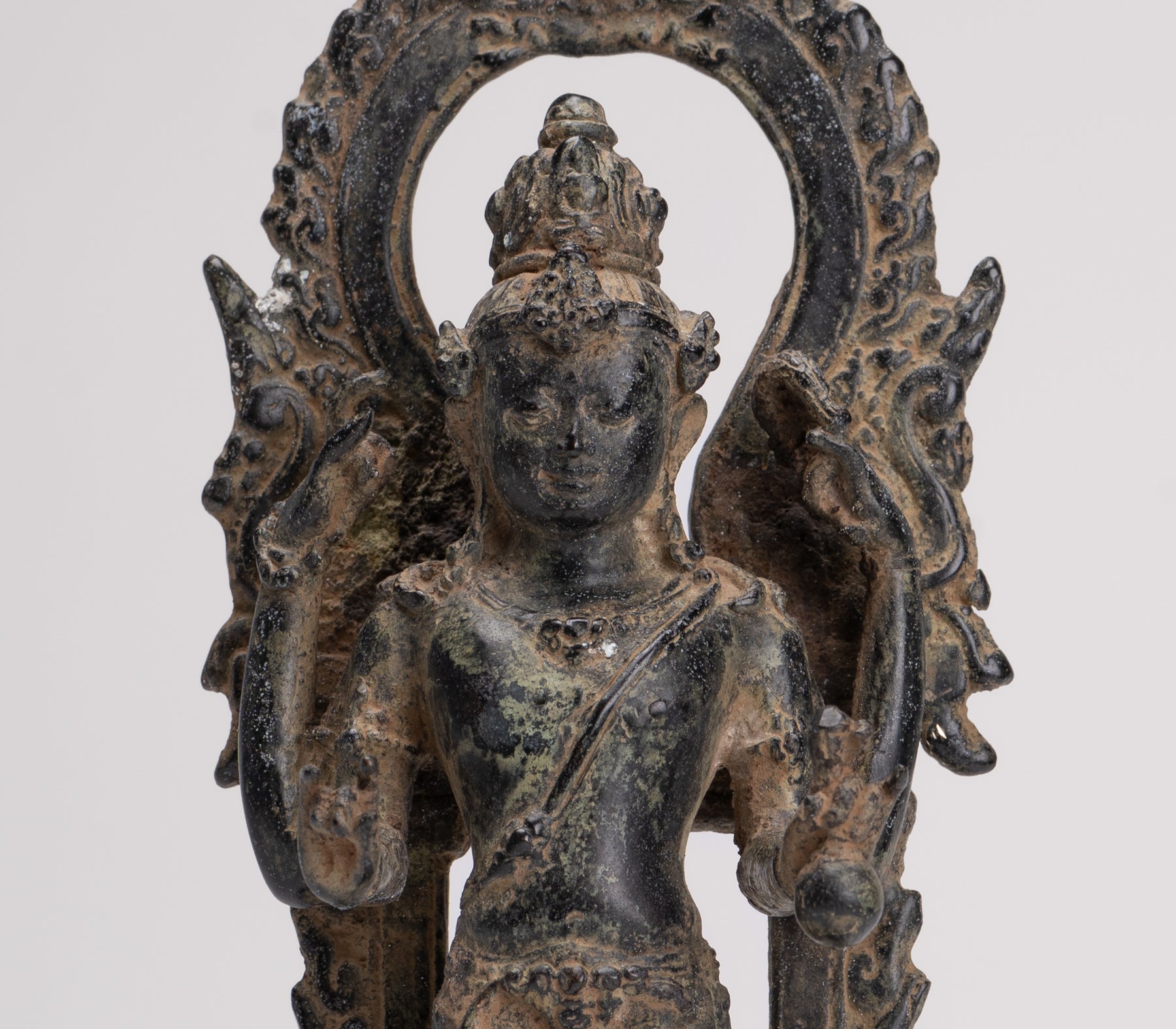 Antike Majapahit-Vishnu-Statue aus Bronze im indonesischen Stil – Beschützer und Bewahrer – 24 cm.