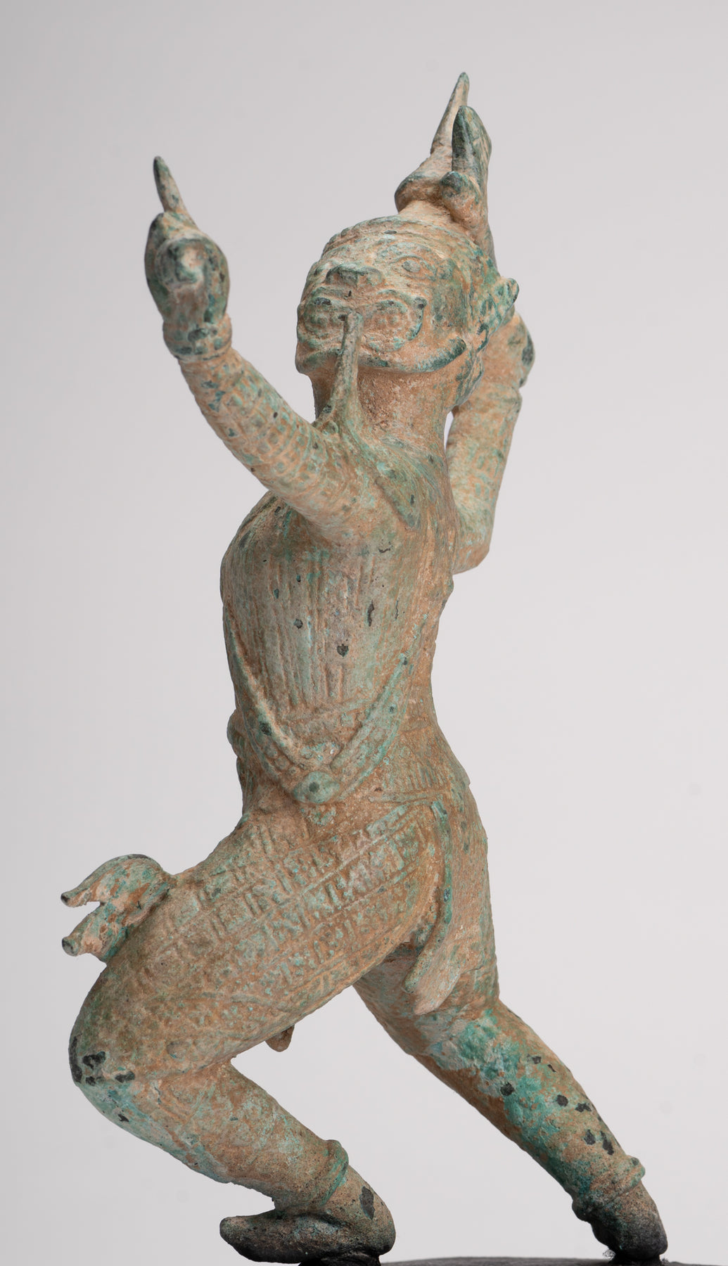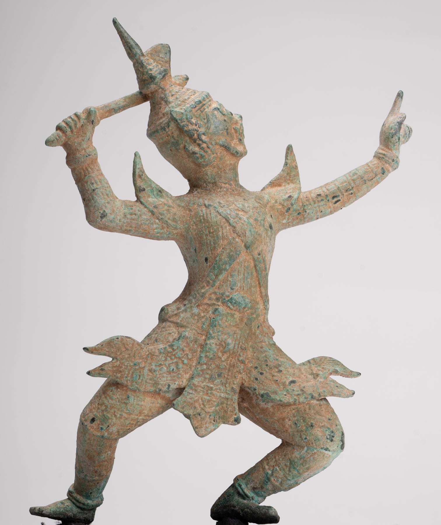 Die Skulptur befindet sich im Bayon -Stil und zeigt eine dynamische Figur, die als leitender Offizier aus der schweren Bürokette erkennbar ist, die seine Brust kreuzt. Ähnliche Bilder sind in Reliefs auf dem Bayon -Tempel zu sehen, die Kampfszenen im 12. Jahrhundert veranschaulichen. Das Konzept eines militärischen Kommandanten in Affenform stammt aus dem hinduistischen Epos des Ramayana, wo die Streitkräfte von Prinz Rama von der Affenarmee unter der Leitung des Affen General Hanuman unterstützt wurden.