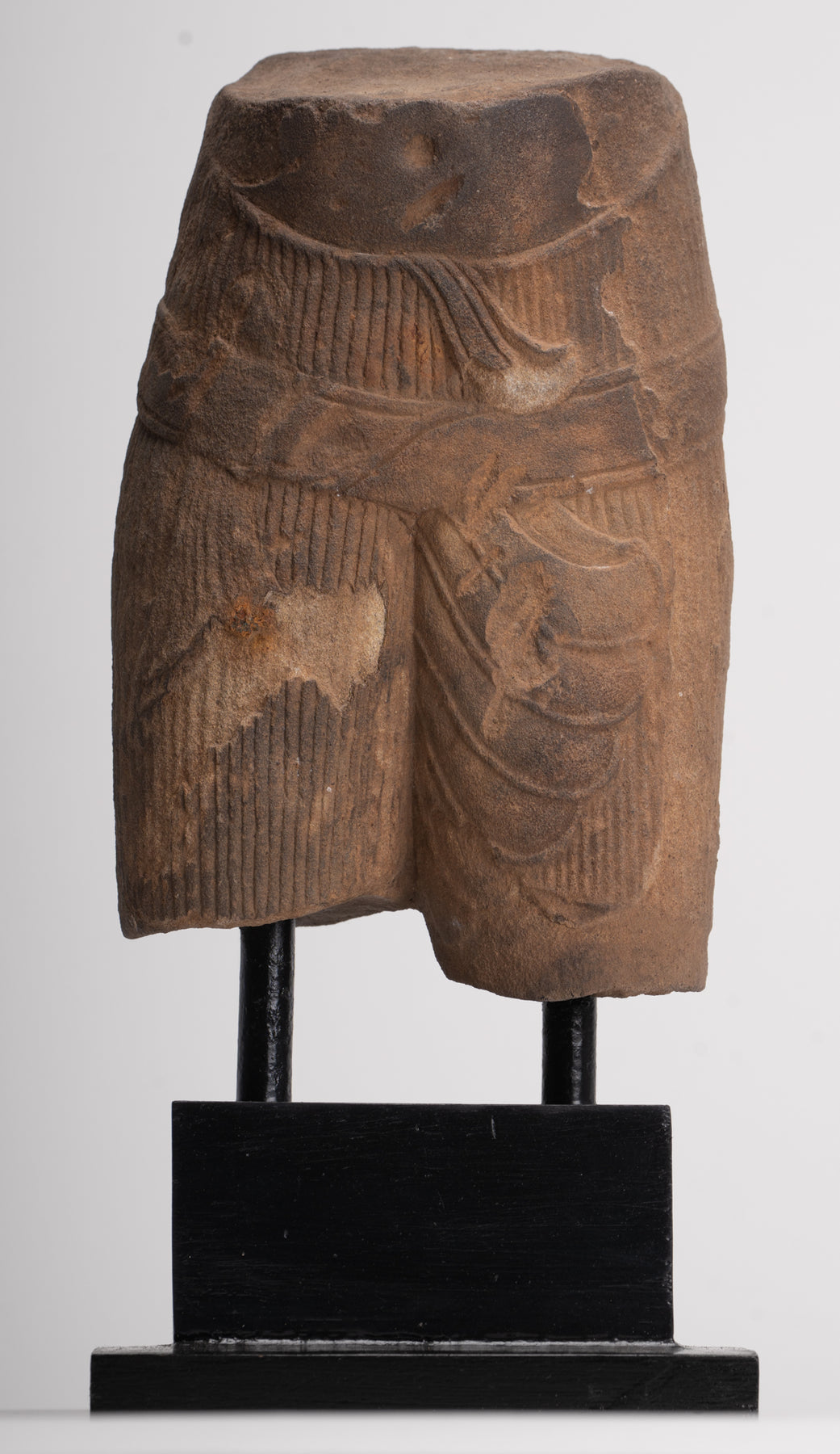 Antiker, auf Stein montierter männlicher Torso im Baphuon-Stil im Khmer-Stil (möglicherweise Vishnu) – 32 cm.