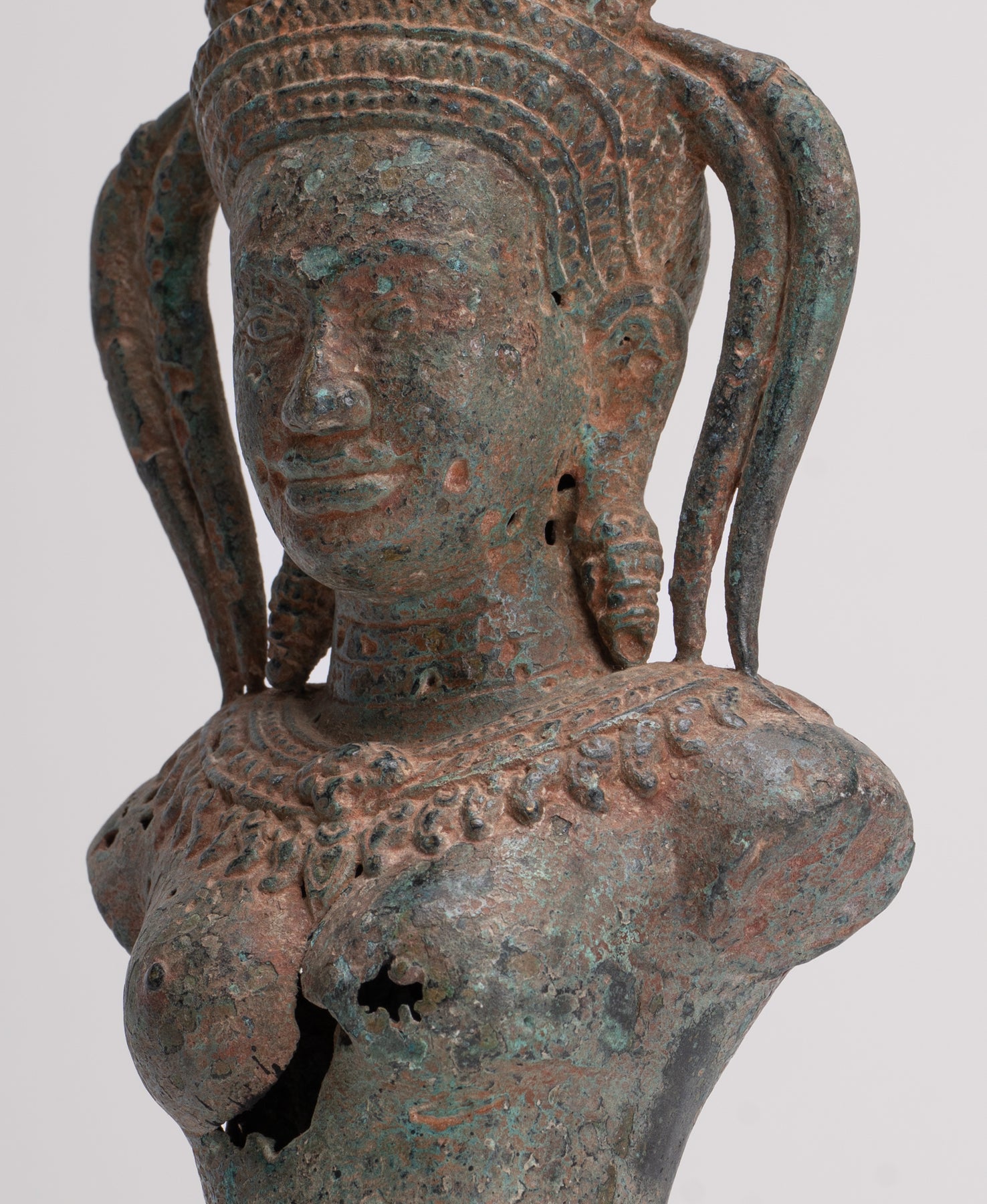 Ein antiker Bronze-Apsara oder himmlischer Engelstorso im Khmer-Stil im Angkor Wat-Stil.