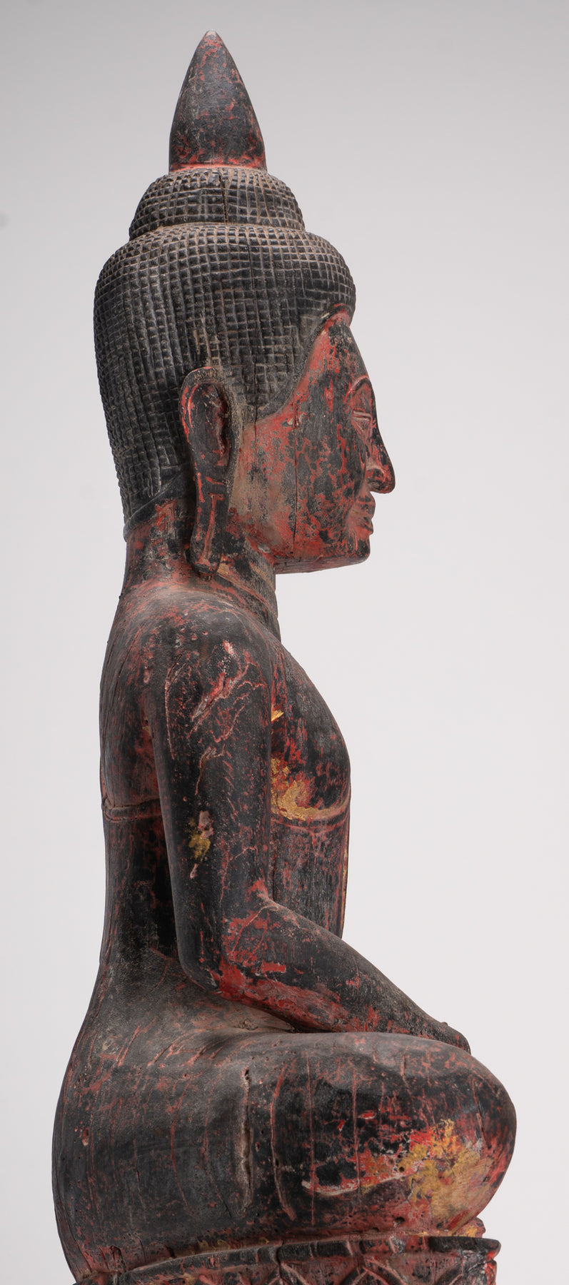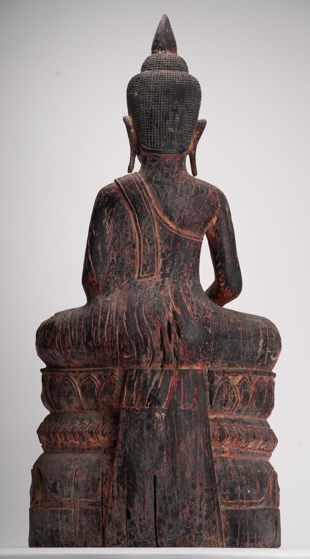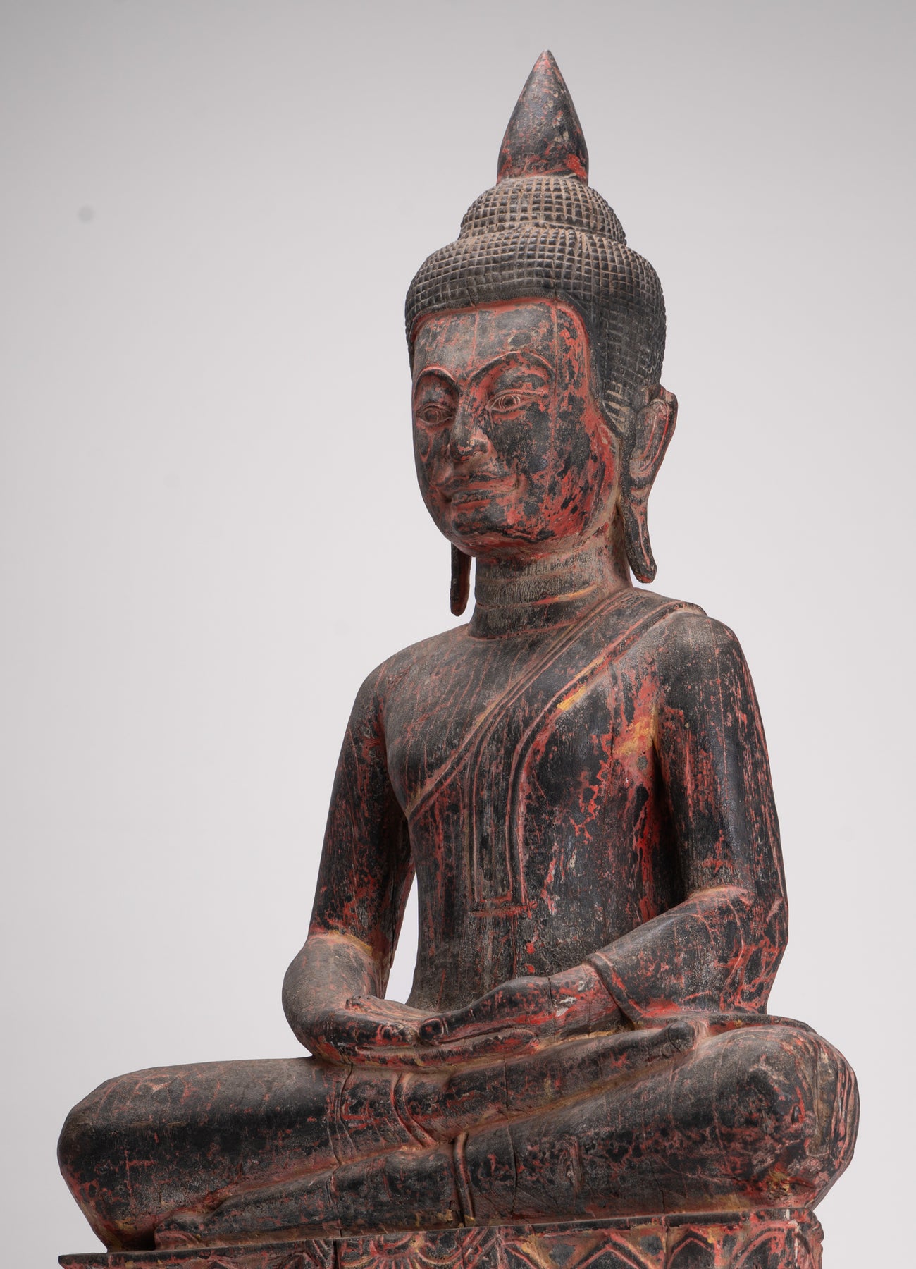 Antike sitzende Meditations-Buddha-Statue aus Holz im südöstlichen Khmer-Stil – 85 cm.