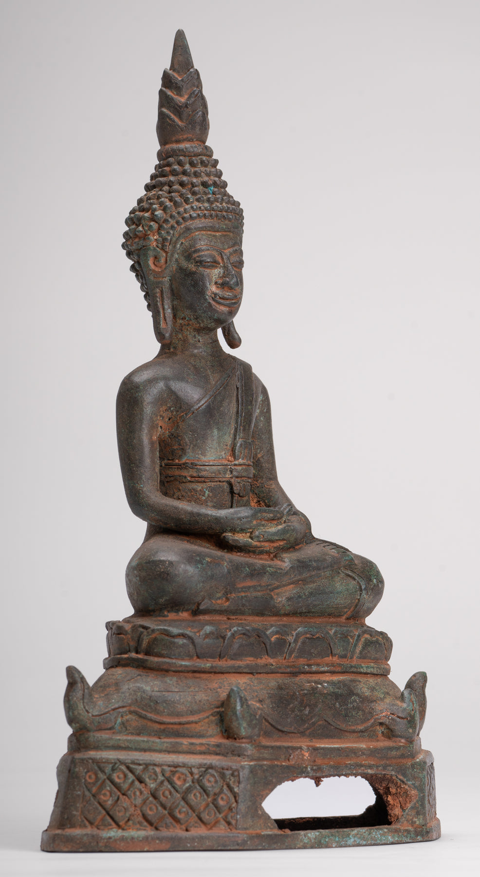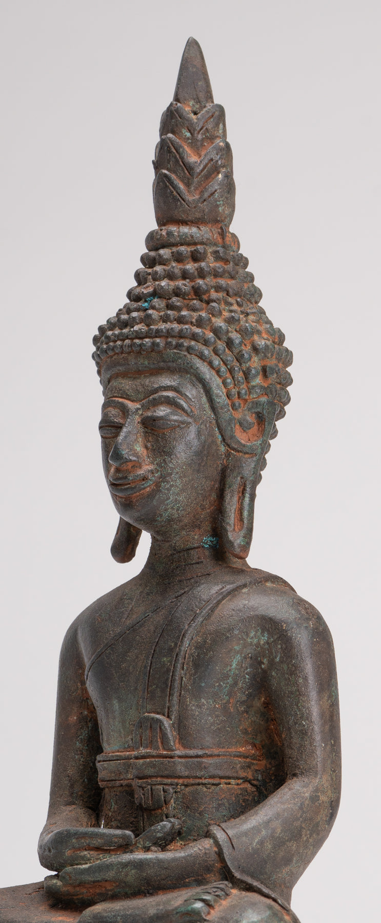 Eine entzückende sitzende Antiquität aus Bronze Laos Stil Buddha Shakyamuni.