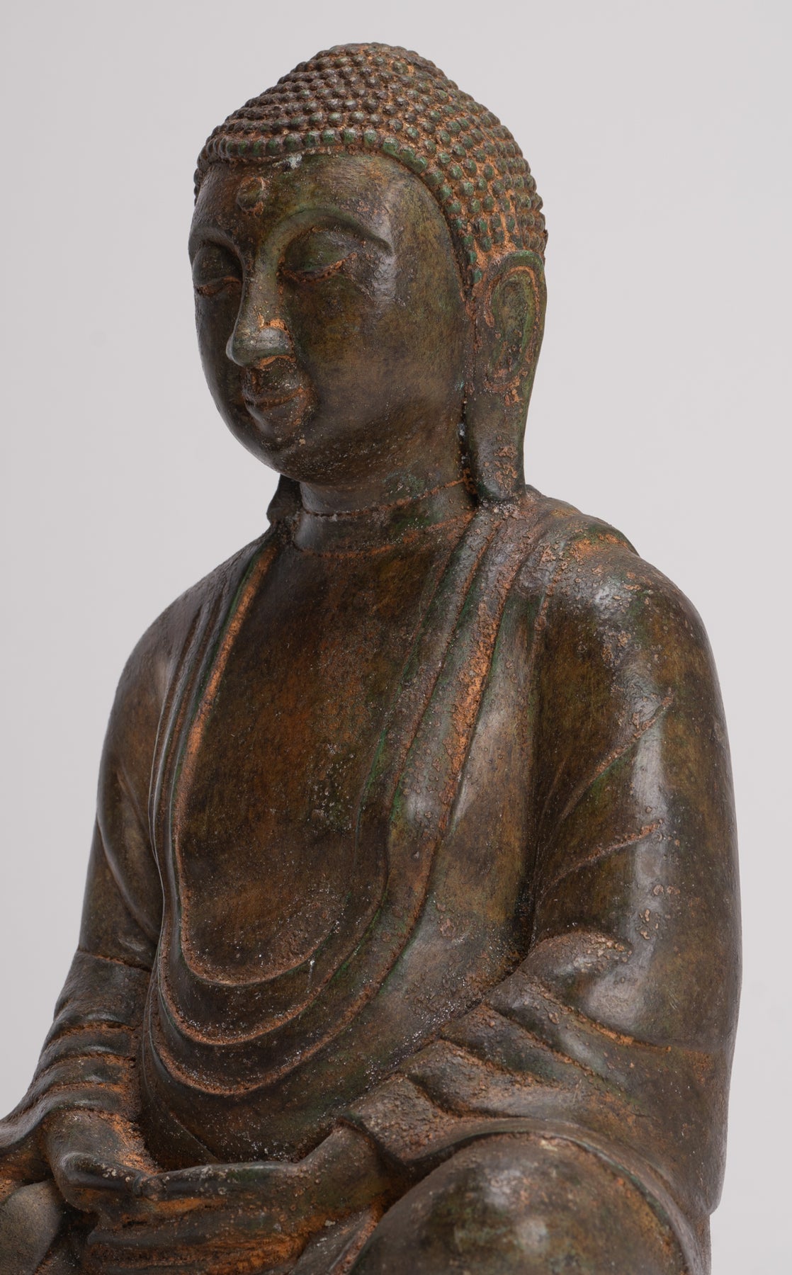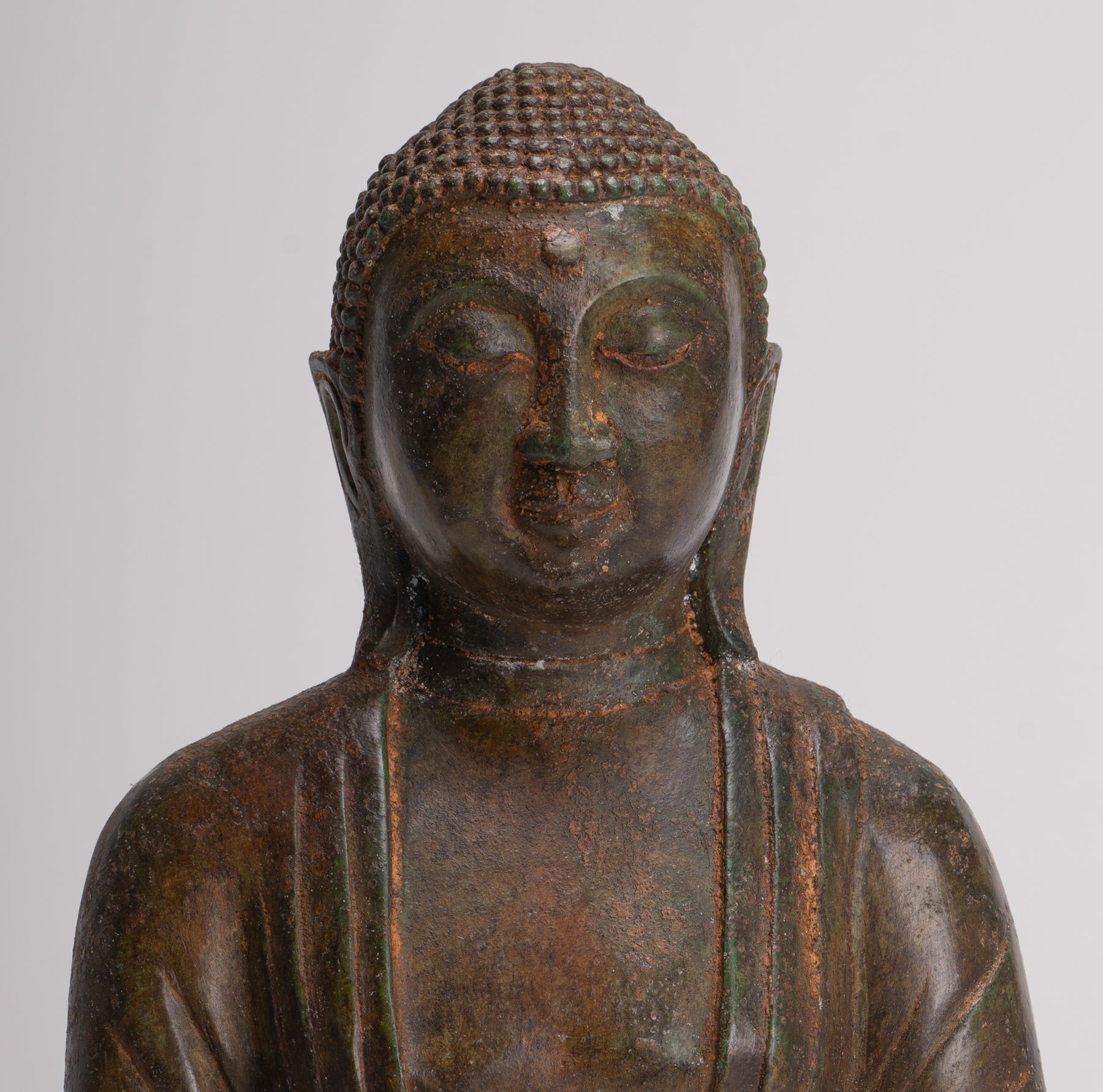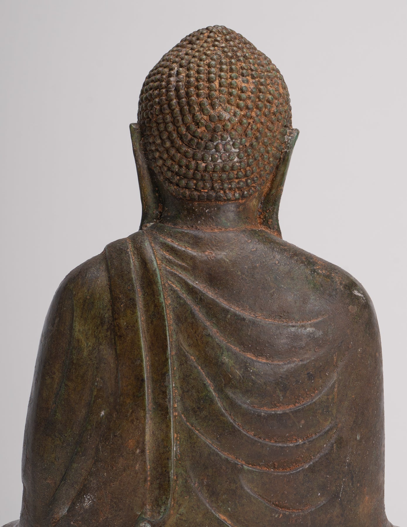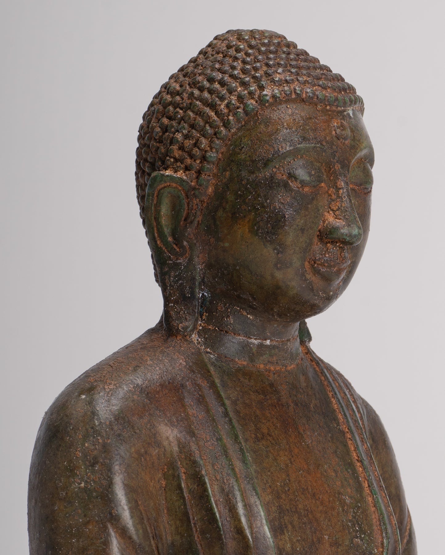 Besonders ansprechend sind die Patina und die Details dieses Stückes. Die Skulptur ist der perfekte Buddha, um Ihrem Zuhause, Büro oder heiligen Raum Gelassenheit und zeitlosen Stil zu verleihen.