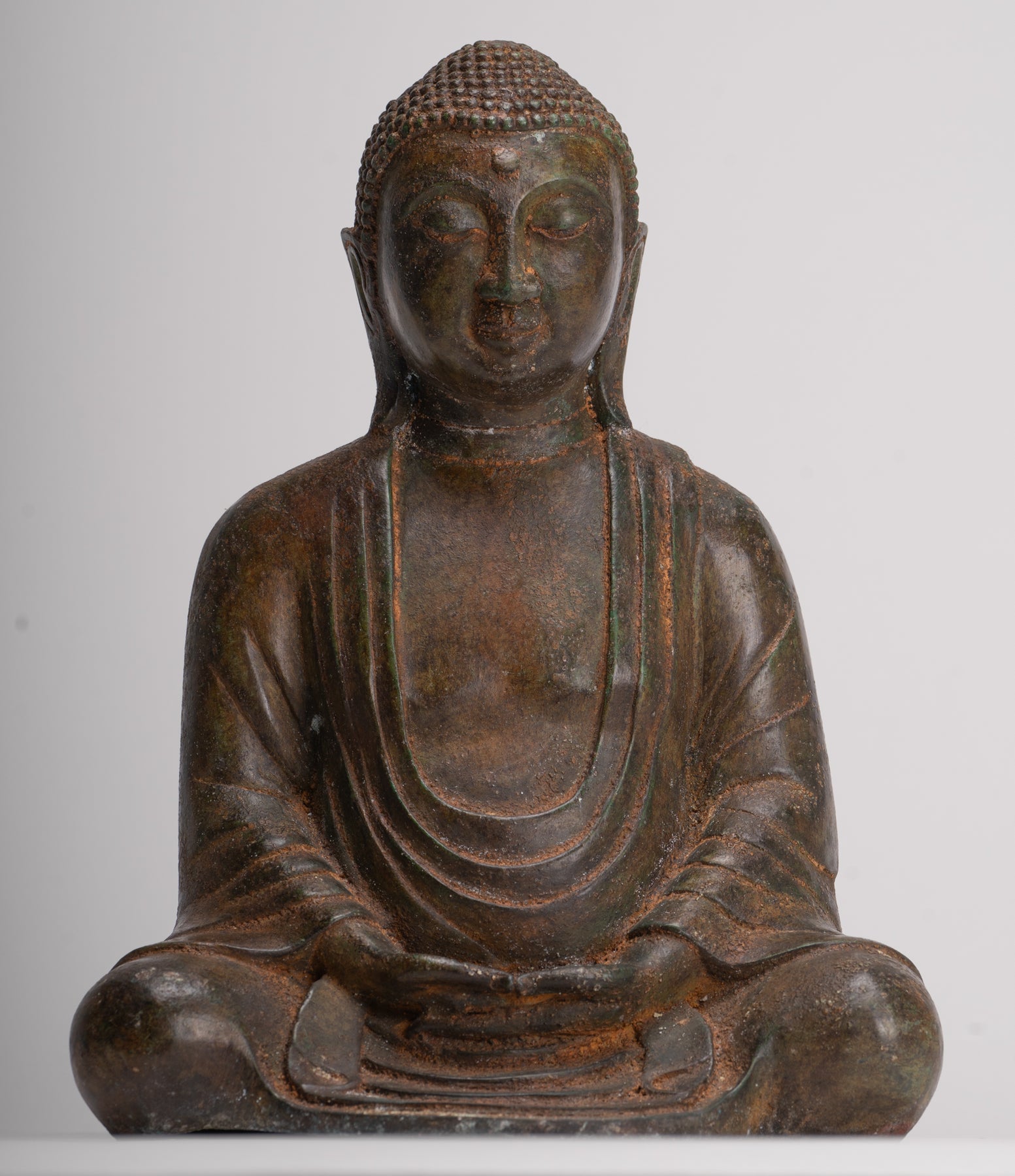Antike sitzende Bronze-Meditations-Amitabha-Buddha-Statue im japanischen Stil – 30 cm.
