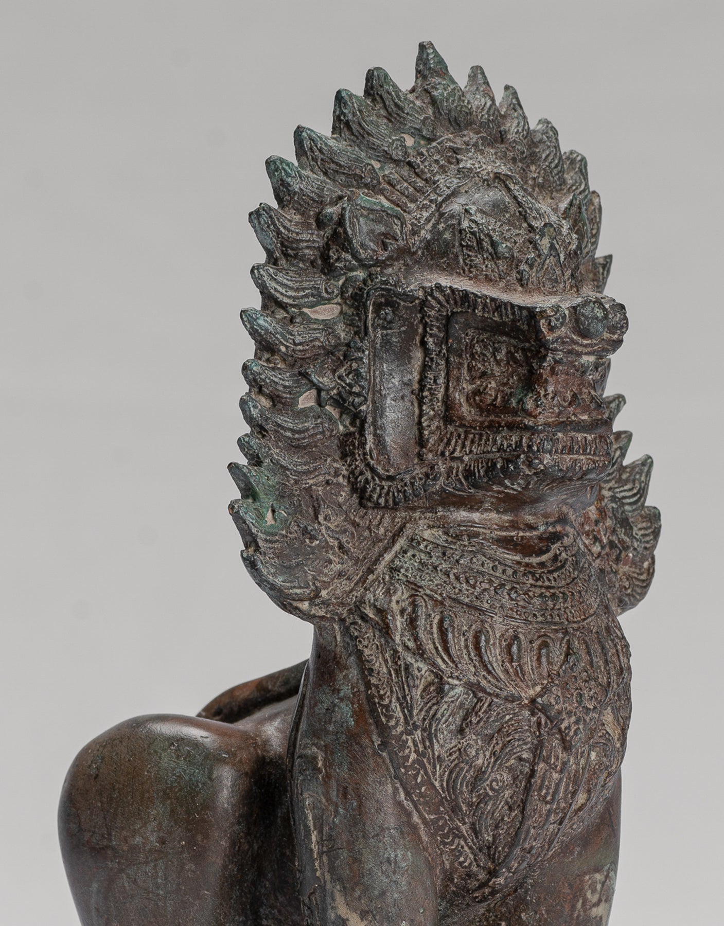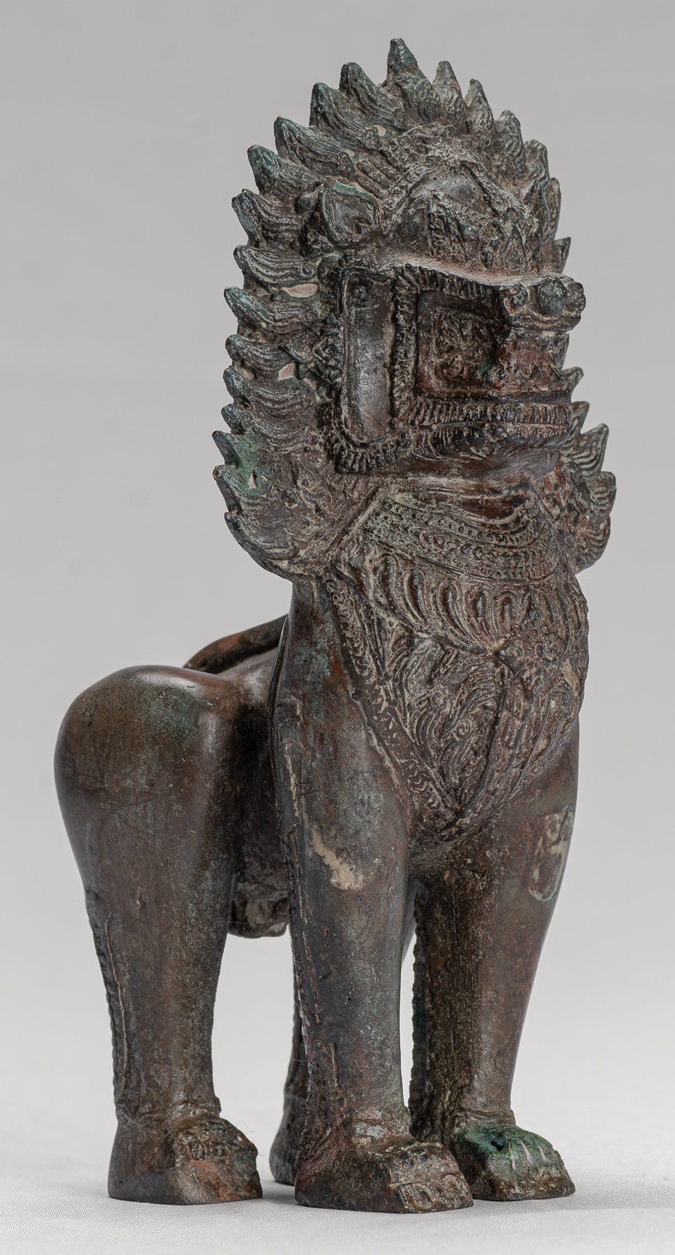 Tempel Lion - antiker thailändischer Bronze Stehender Singha Tempel Guardian oder Lion - 19cm/8 "