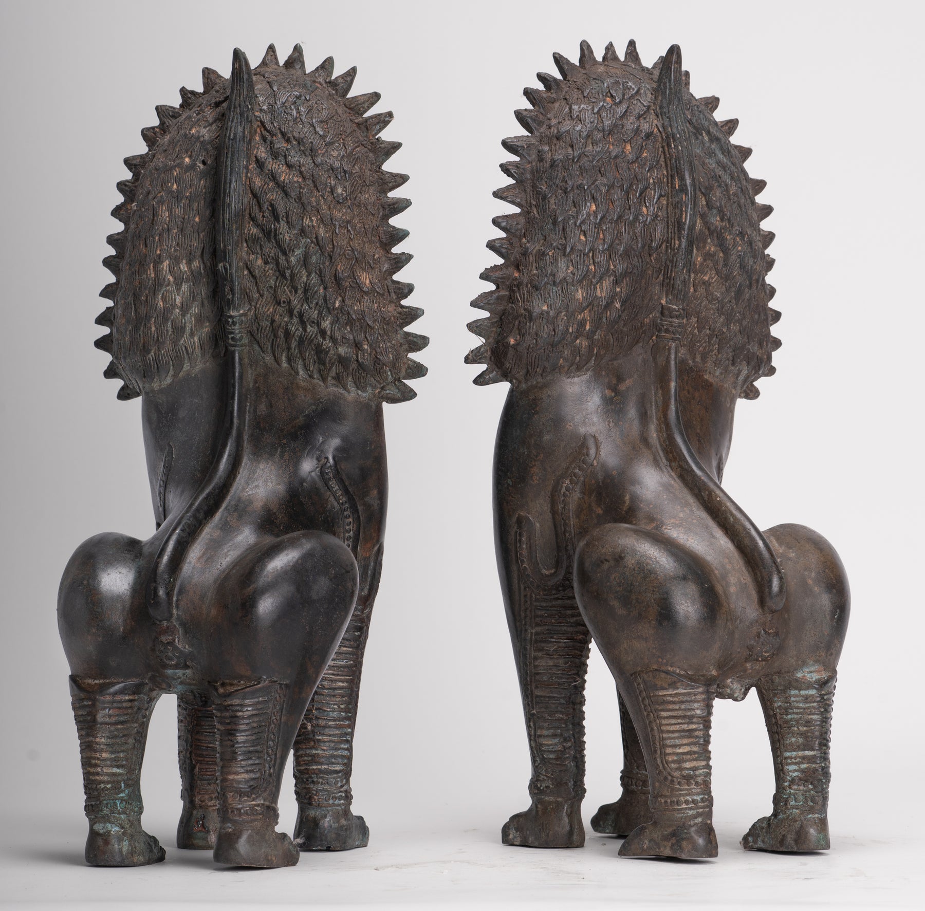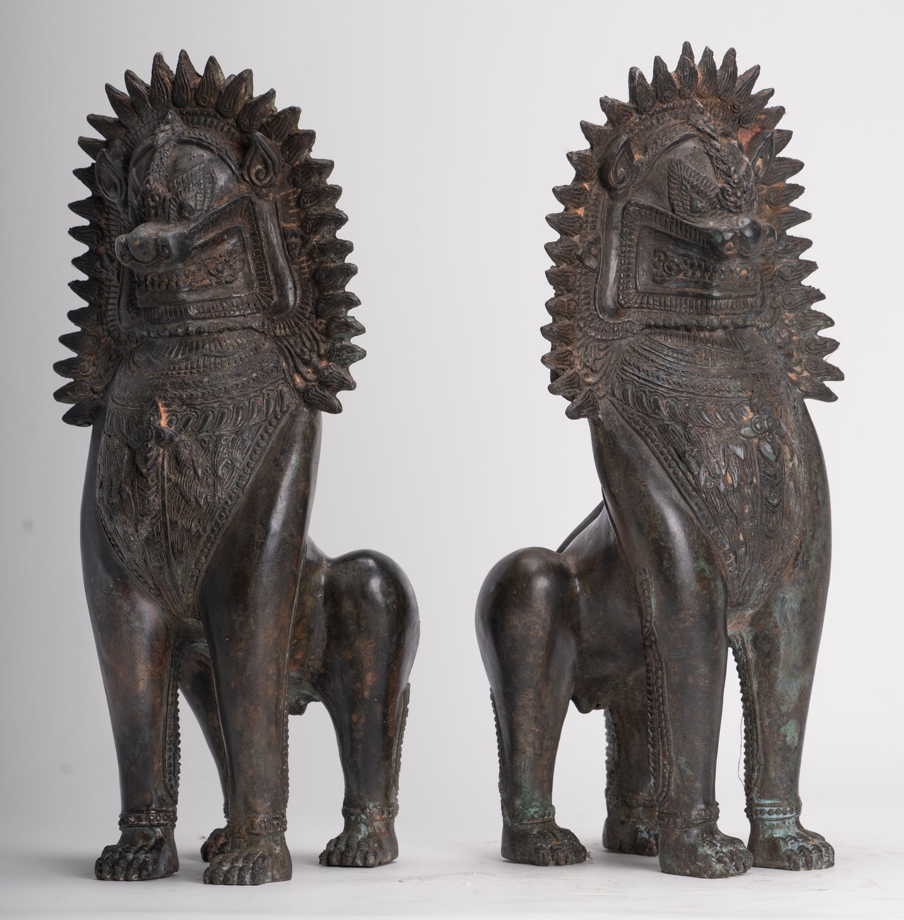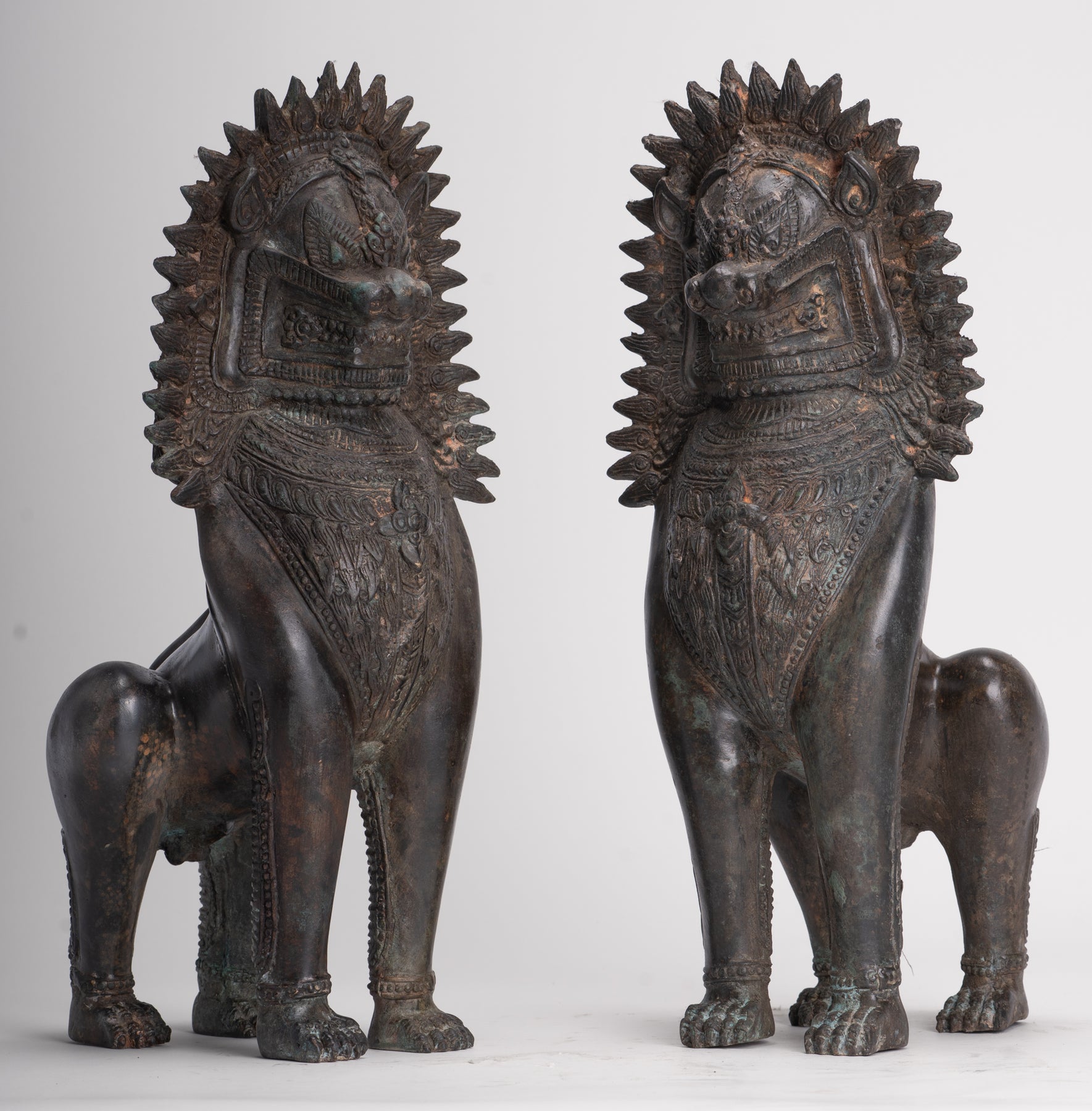 Ein wunderschönes Paar Tempelwächter- oder Löwen-/Singha-Figuren im antiken Thai-Stil.
