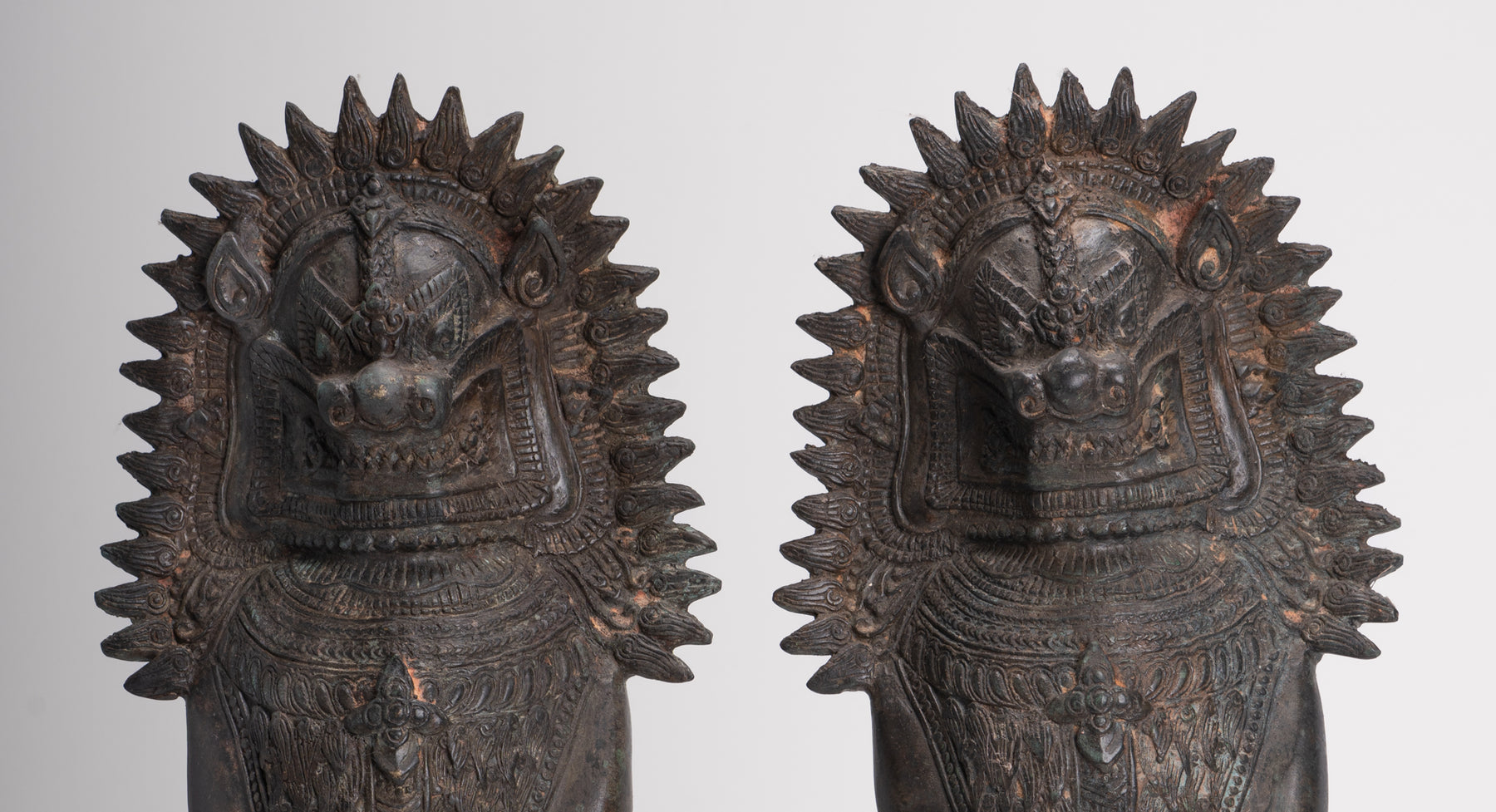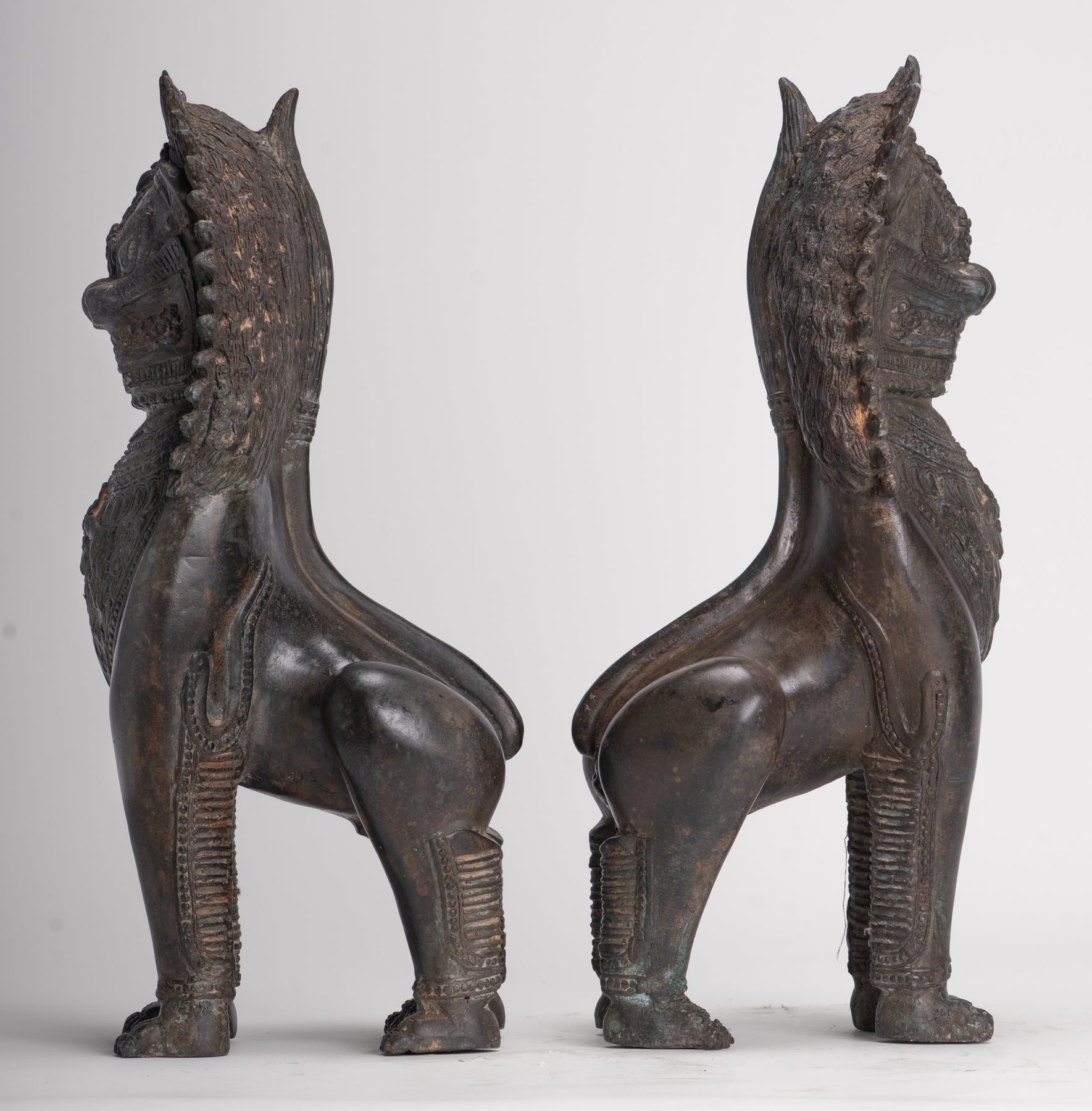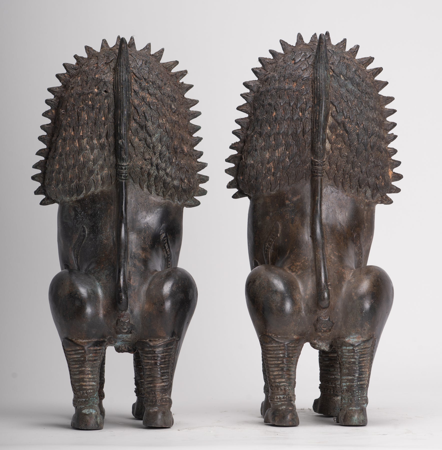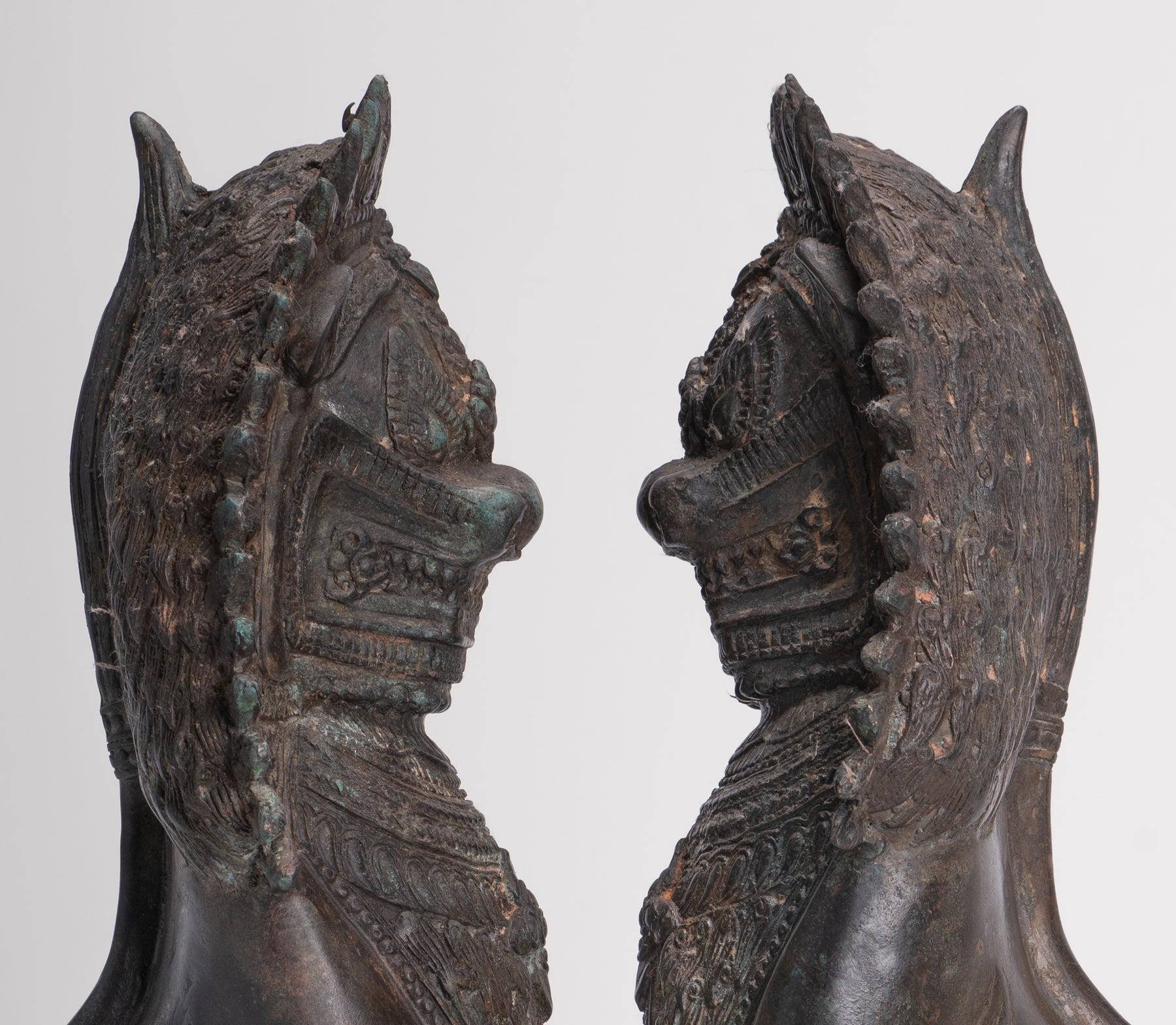 Ein wunderschönes Paar Tempelwächter- oder Löwen-/Singha-Figuren im antiken Thai-Stil.