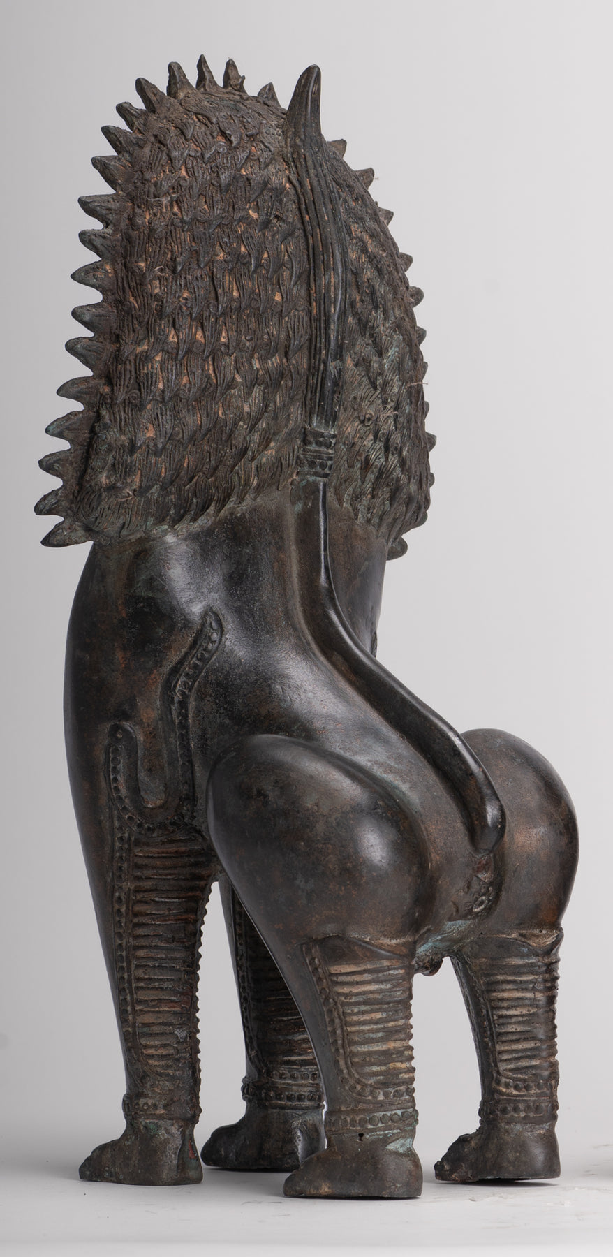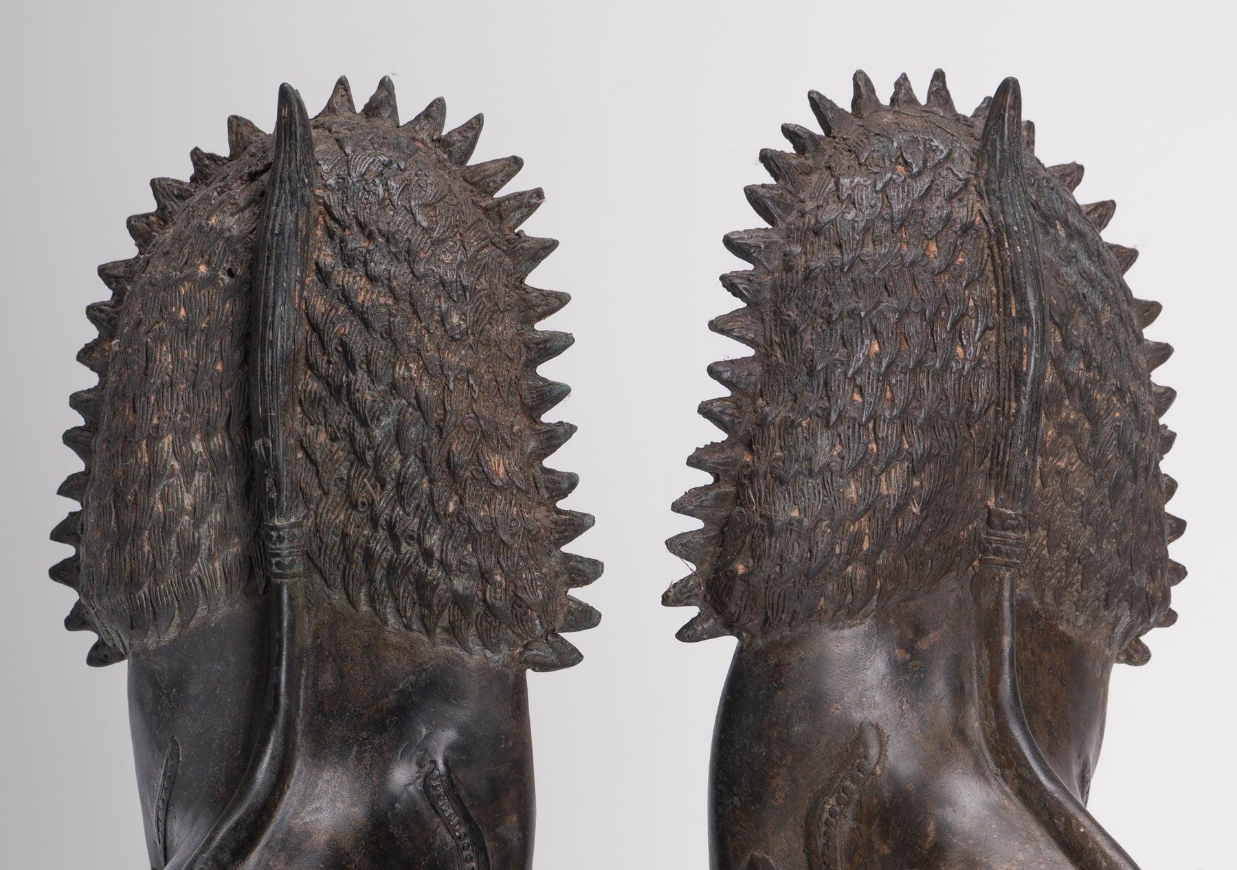 Tempellöwe – Stehende Singha-Tempelwächter oder Löwen aus Bronze im antiken Thai-Stil – 41 cm (Paar)