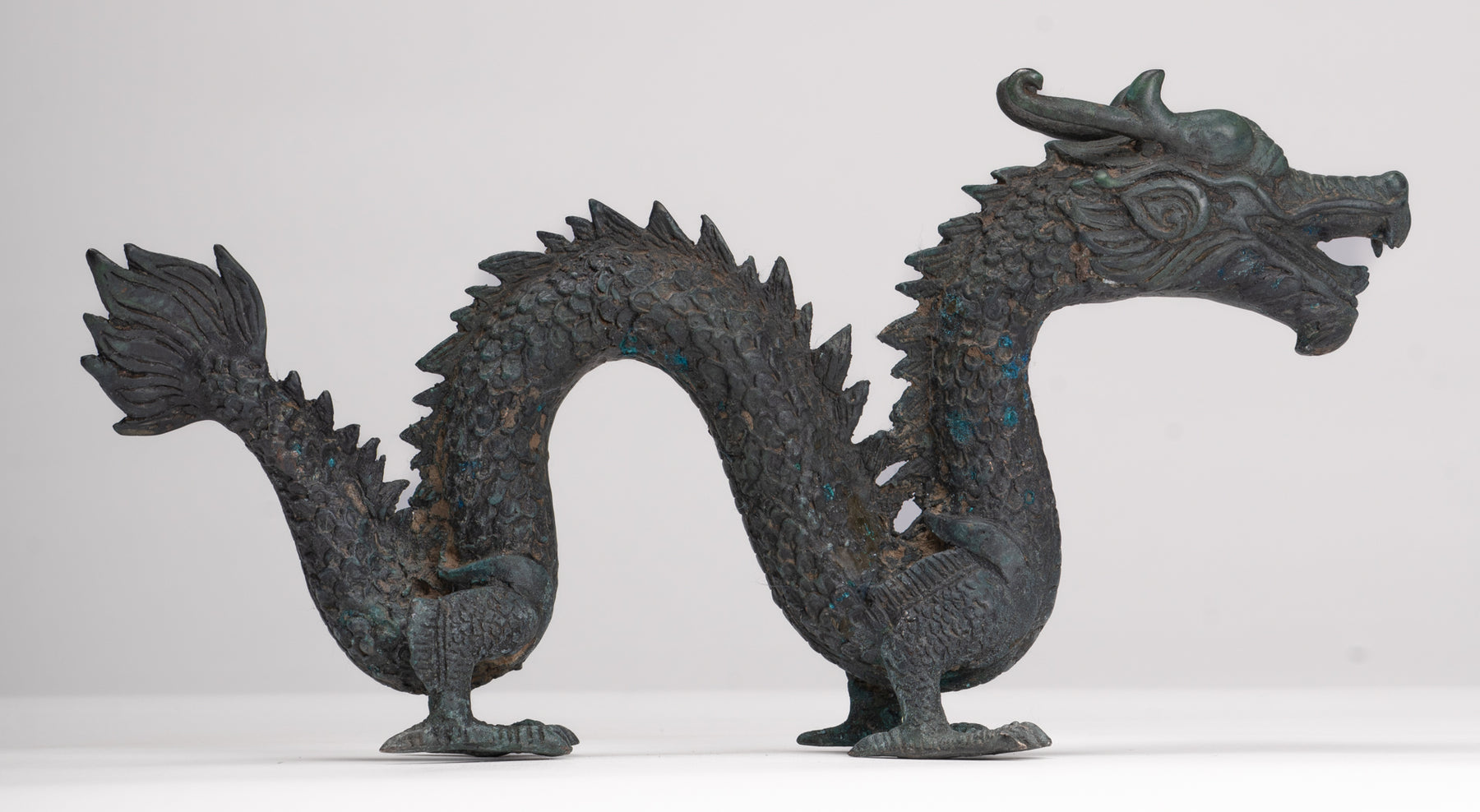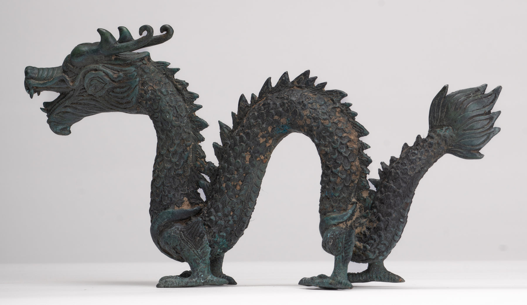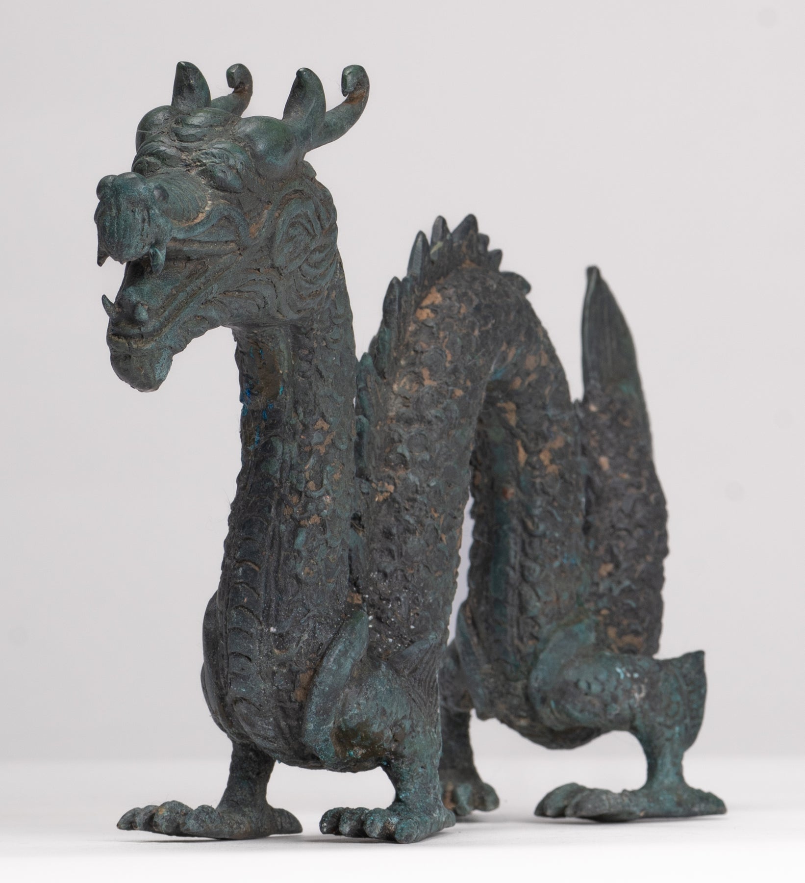 Antike Drachenstatue aus Bronze im chinesischen Stil – 16 cm.