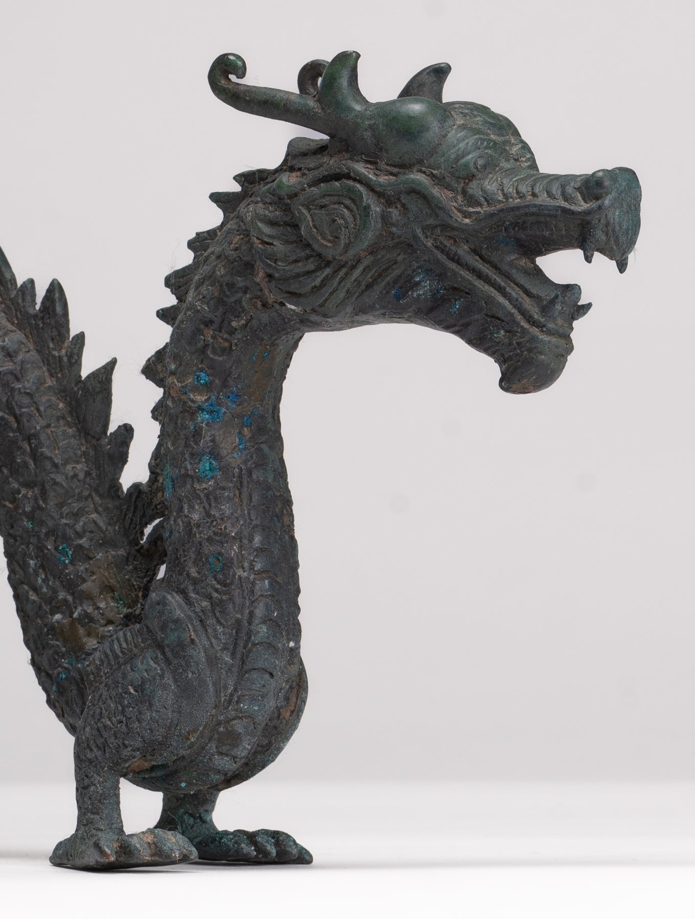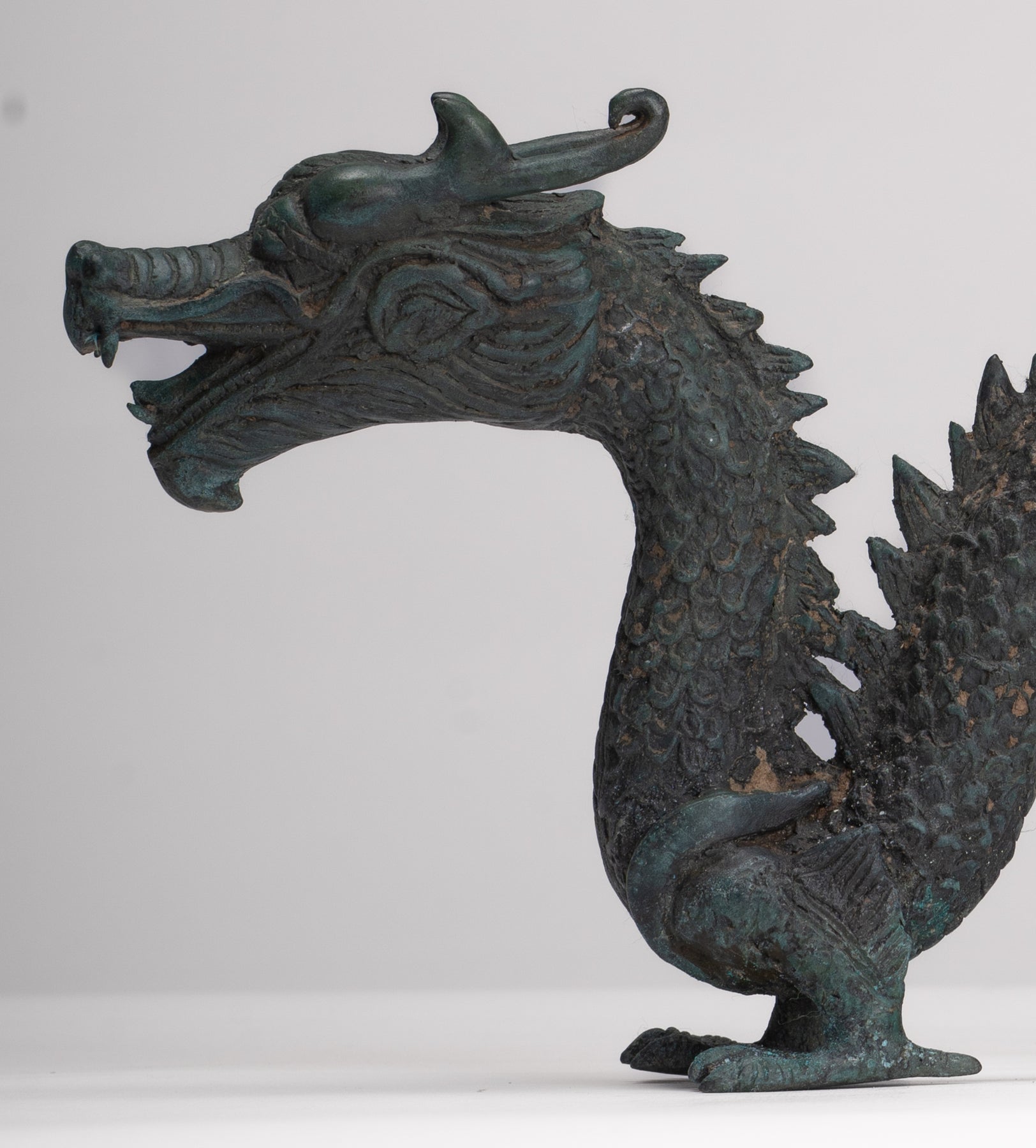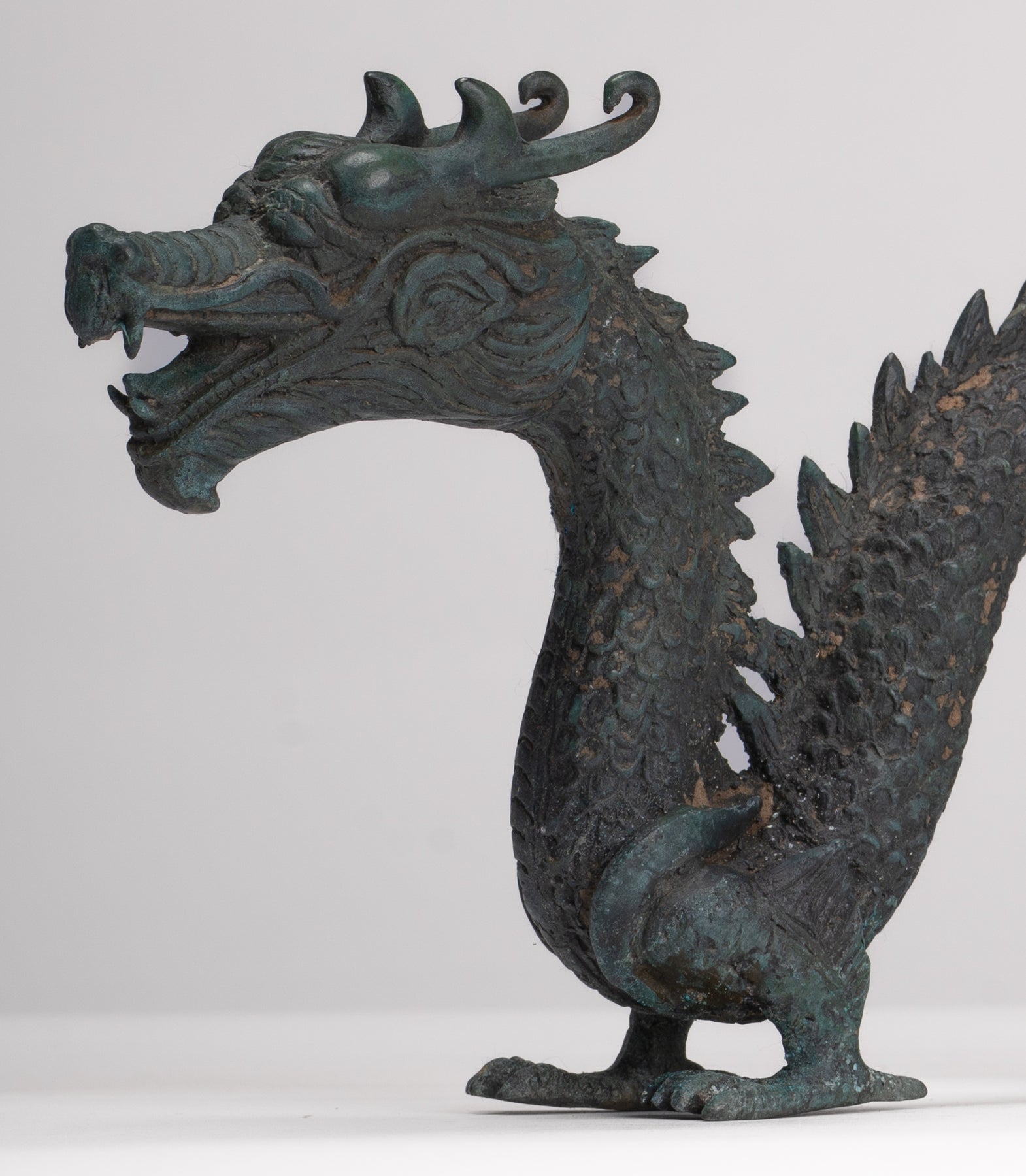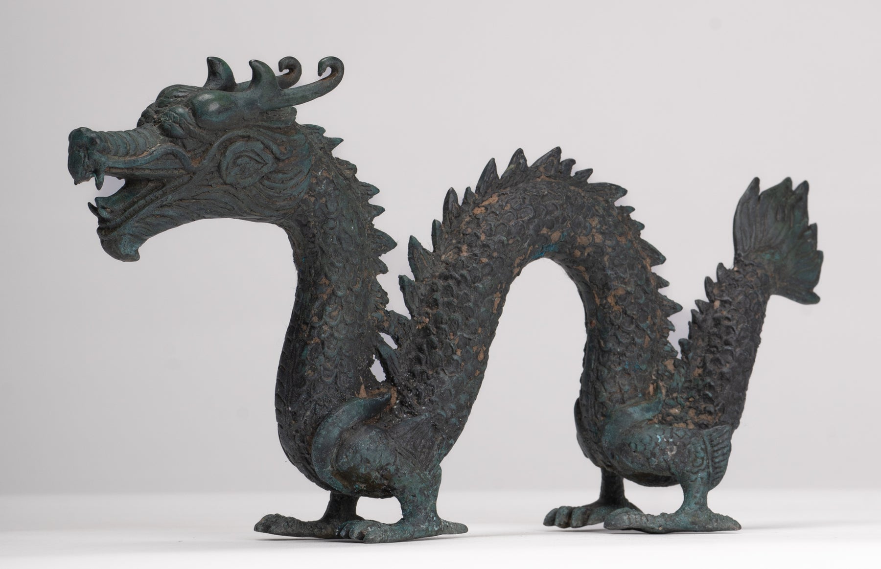 Antike Drachenstatue aus Bronze im chinesischen Stil – 16 cm.