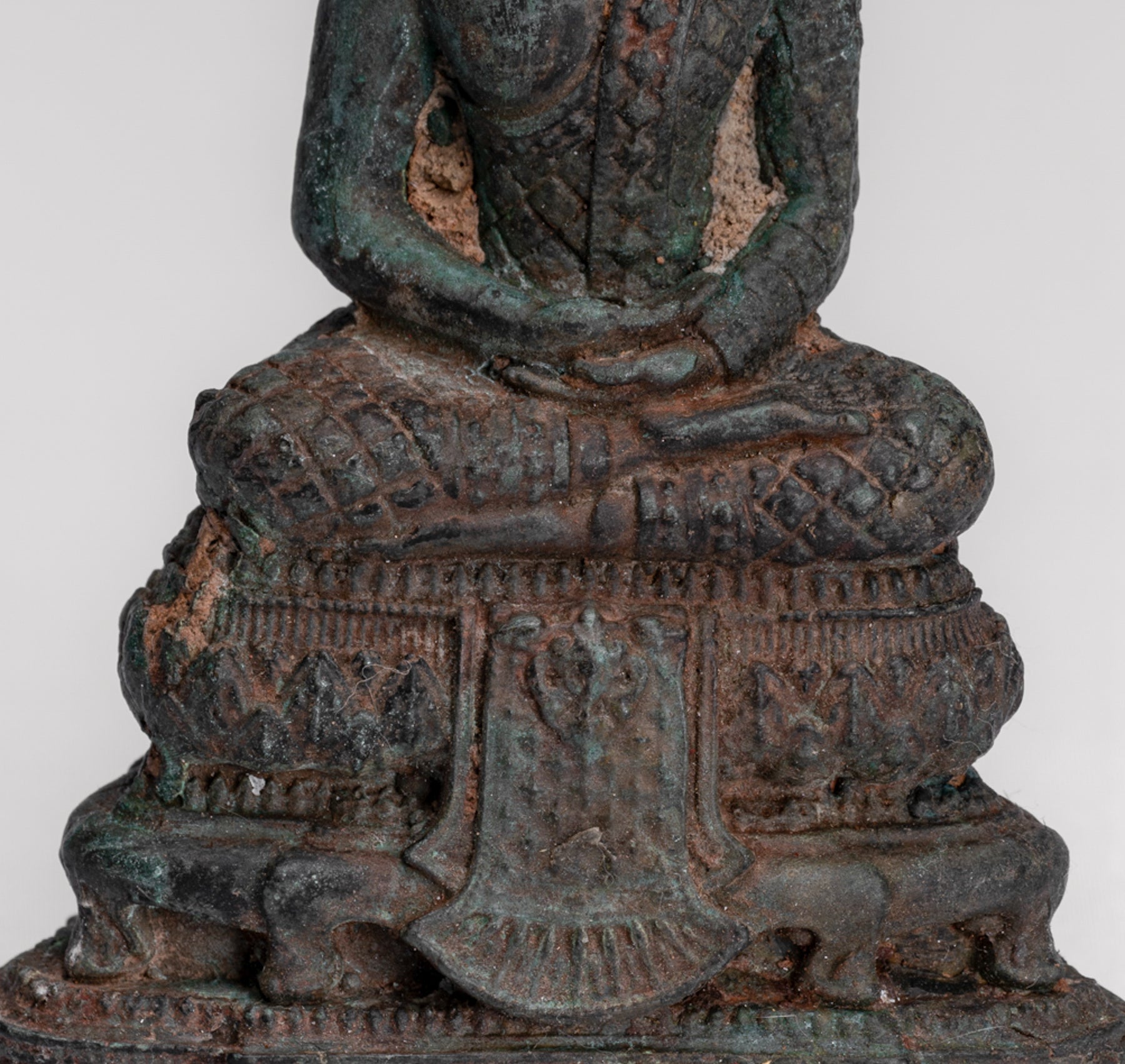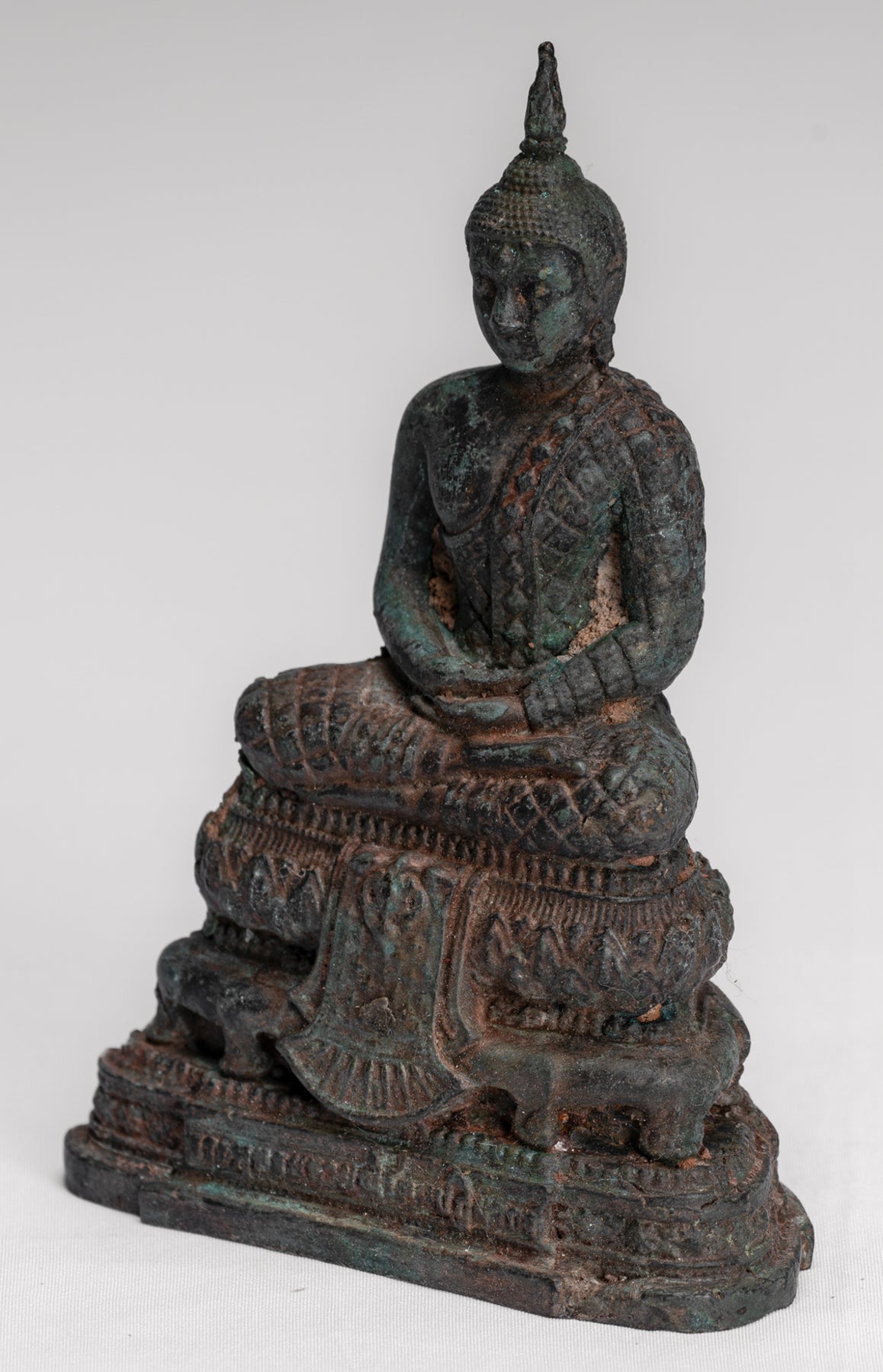 Buddha-Skulptur – sitzende Meditations-Buddha-Statue aus Bronze im antiken Thai-Stil – 12,5 cm.