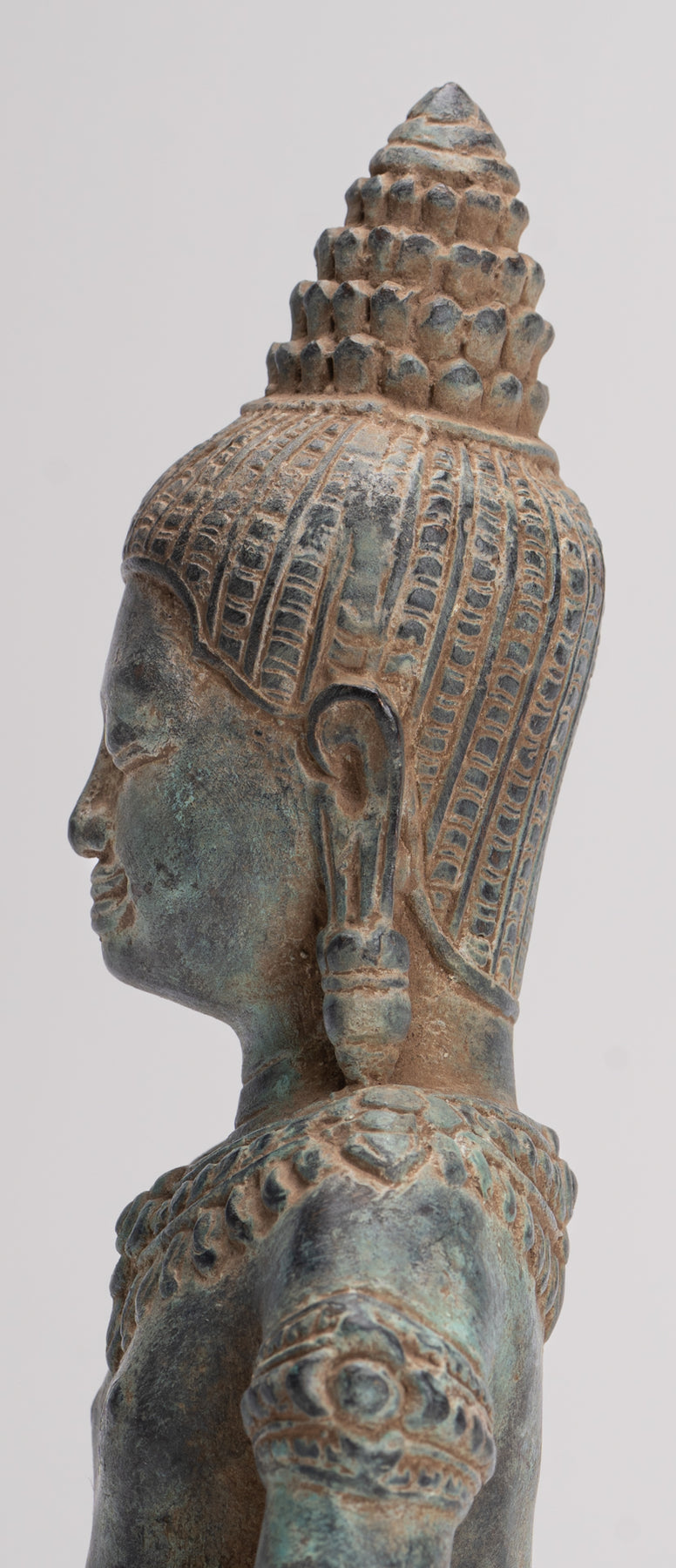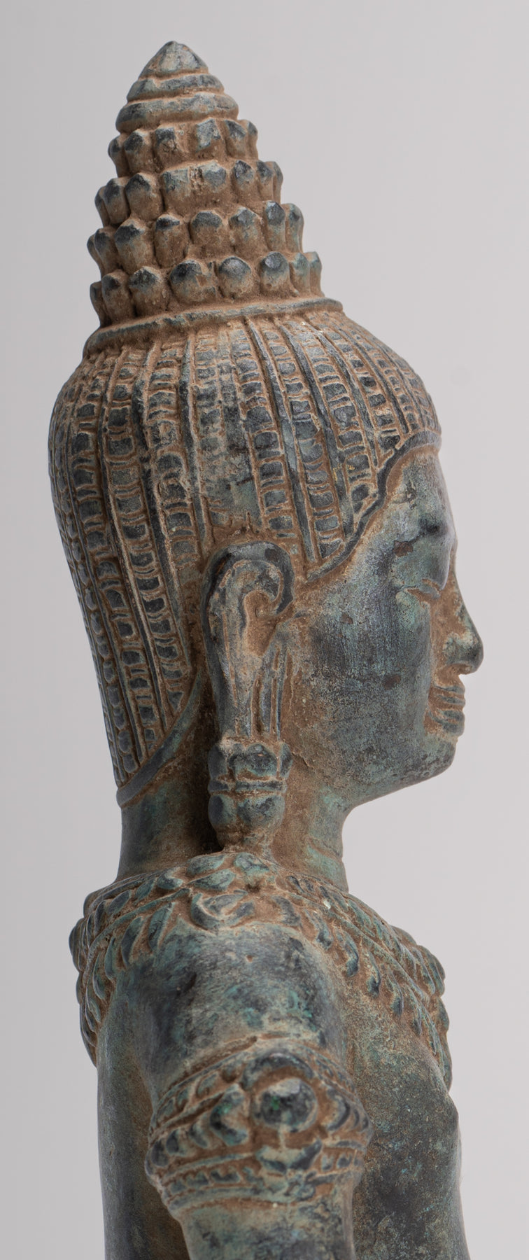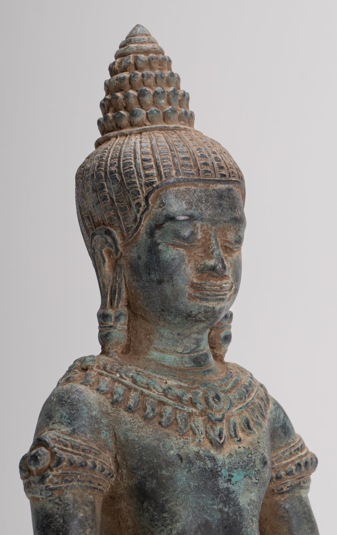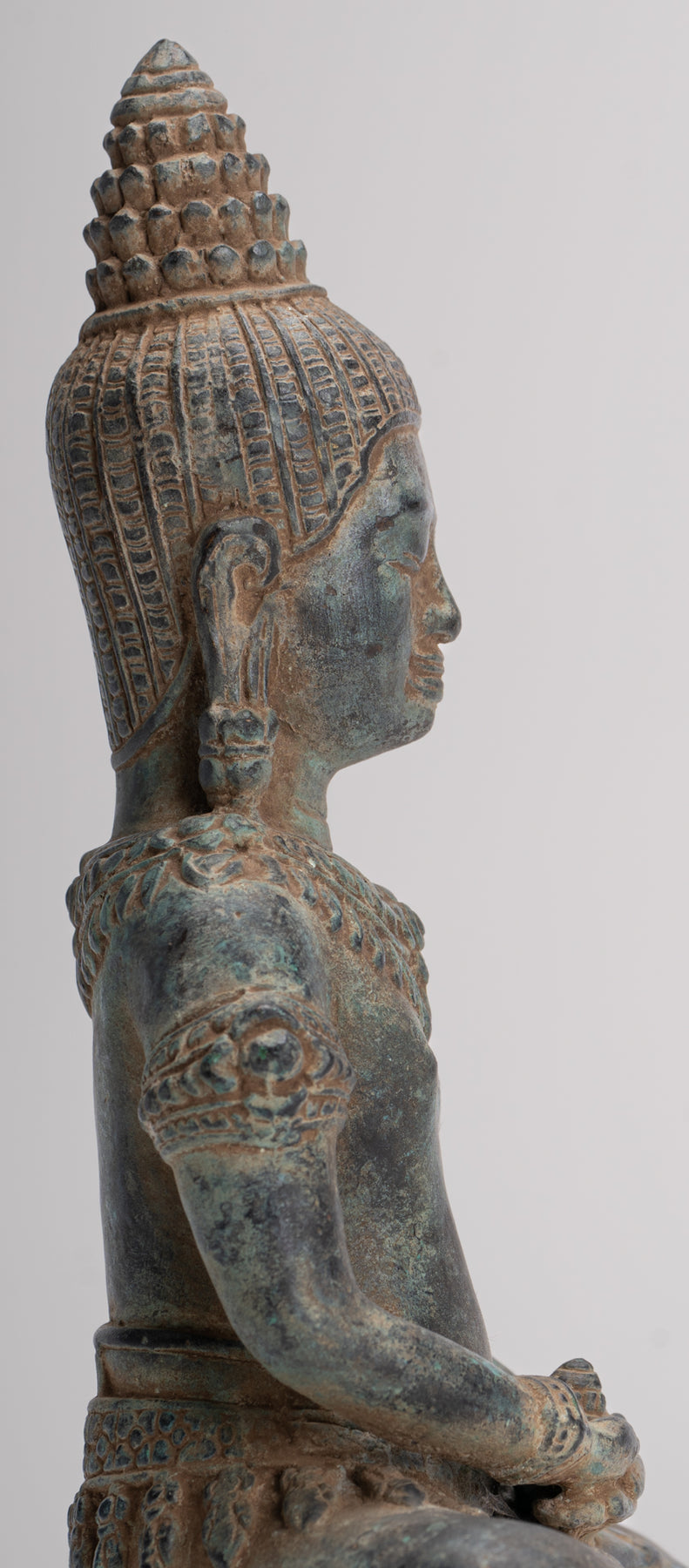 Antike sitzende Meditations-Buddha-Statue aus Bronze im Khmer-Stil – 22 cm.