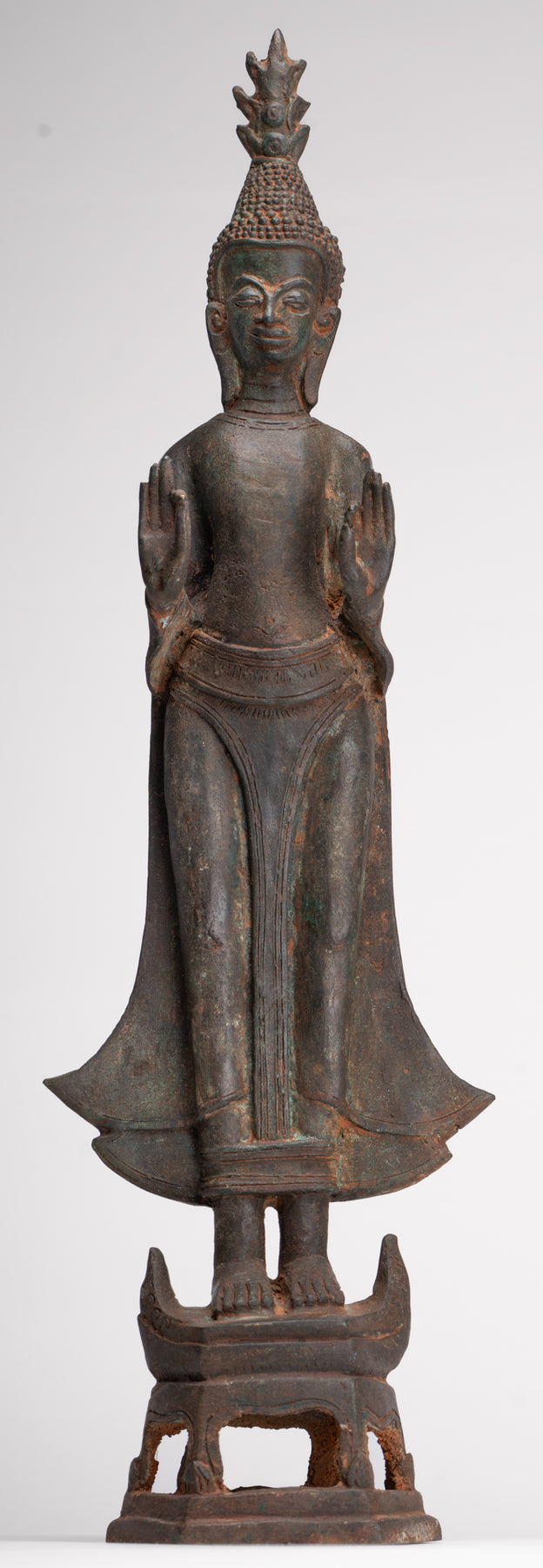 Buddha-Statue - Antik Laos Stehende Buddha-Statue im Dharmachakra-Lehr-Mudra – 50 cm.