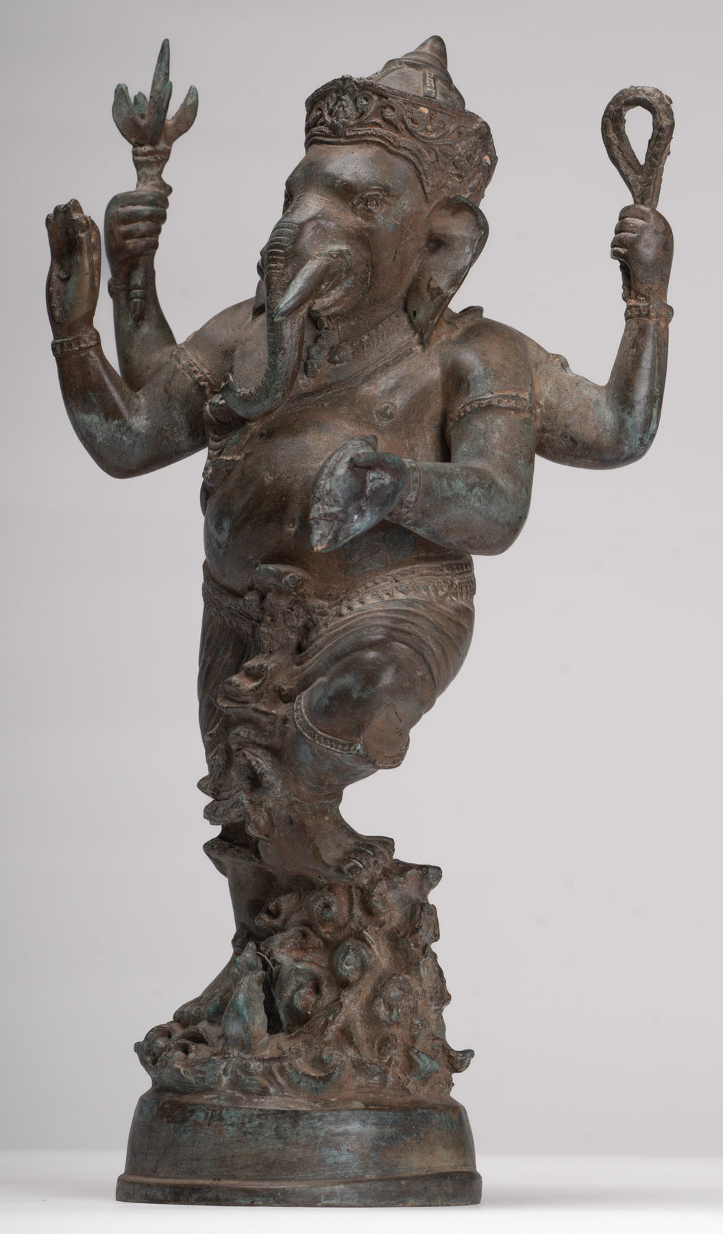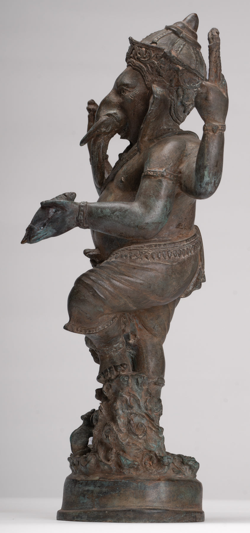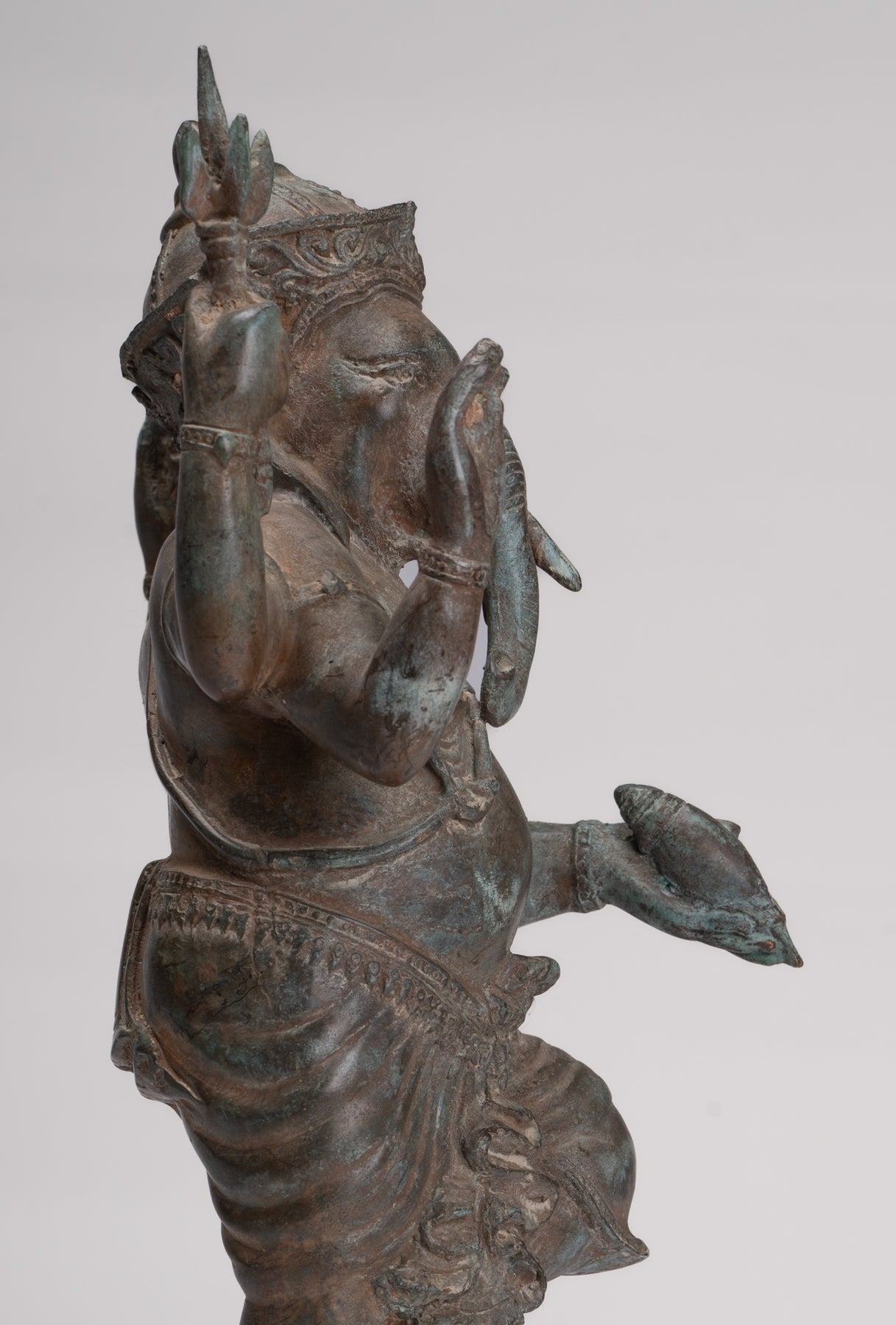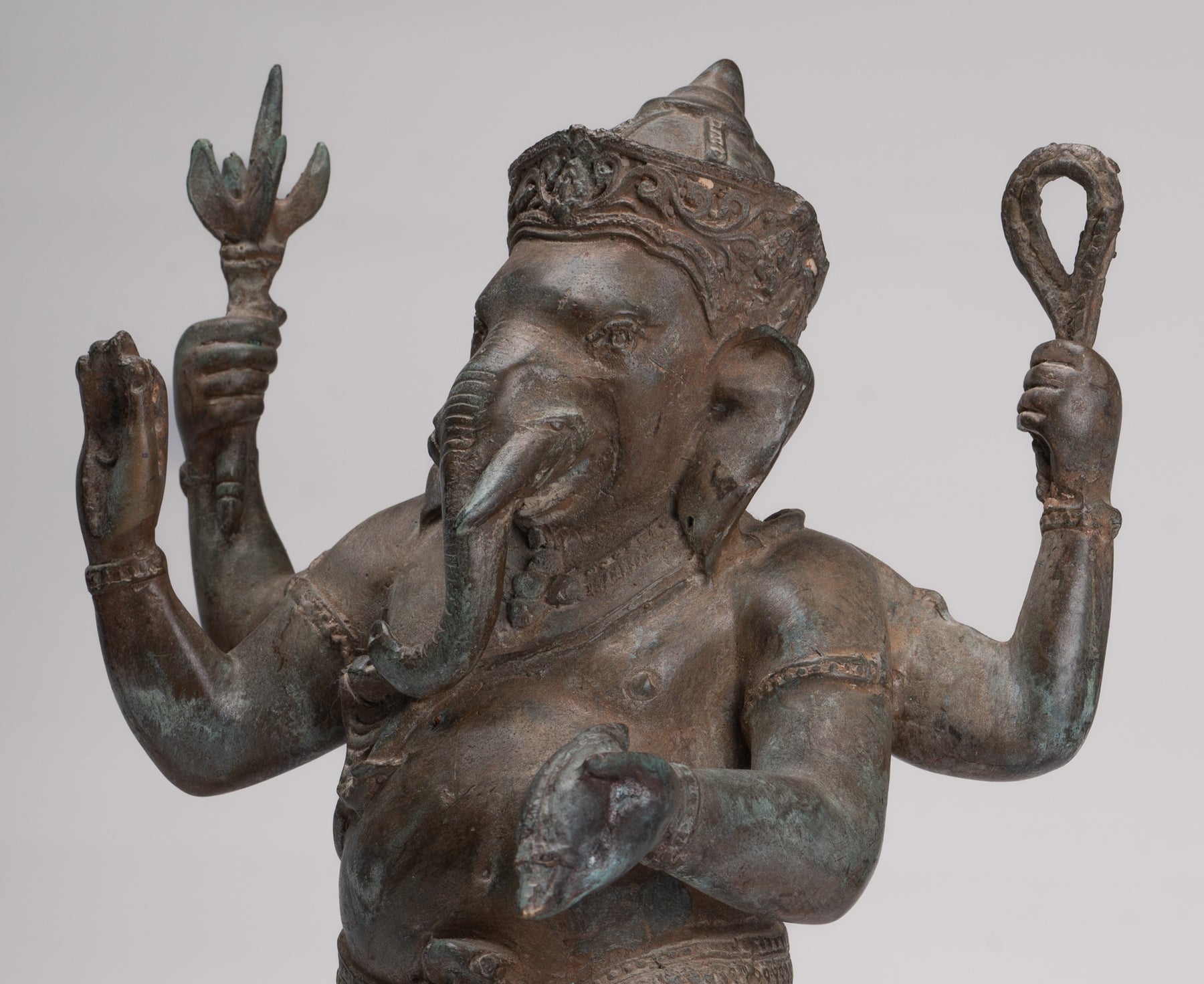 • Antike thailändische Bronze im thailändischen Stil 4 -Arm Ganesha Statue - 36 cm/14 "