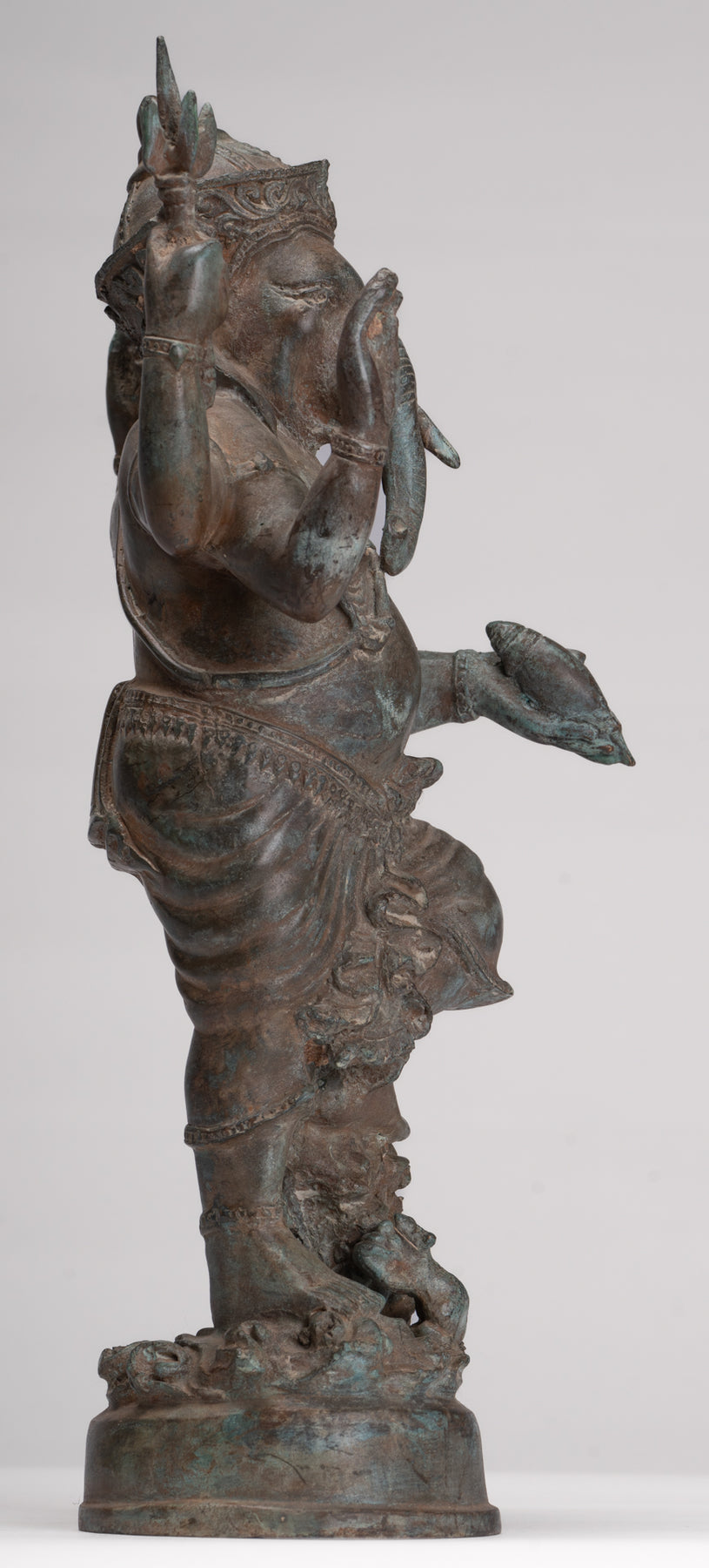 Ganesha Statue - Antique Thai Style Bronze Standing 4-Arm Ganesha Statue - 36cm/14"