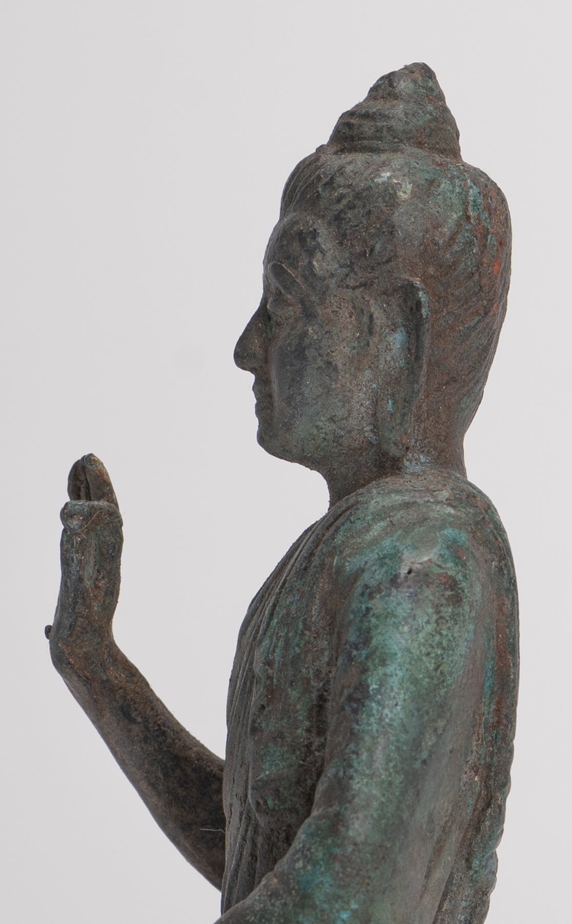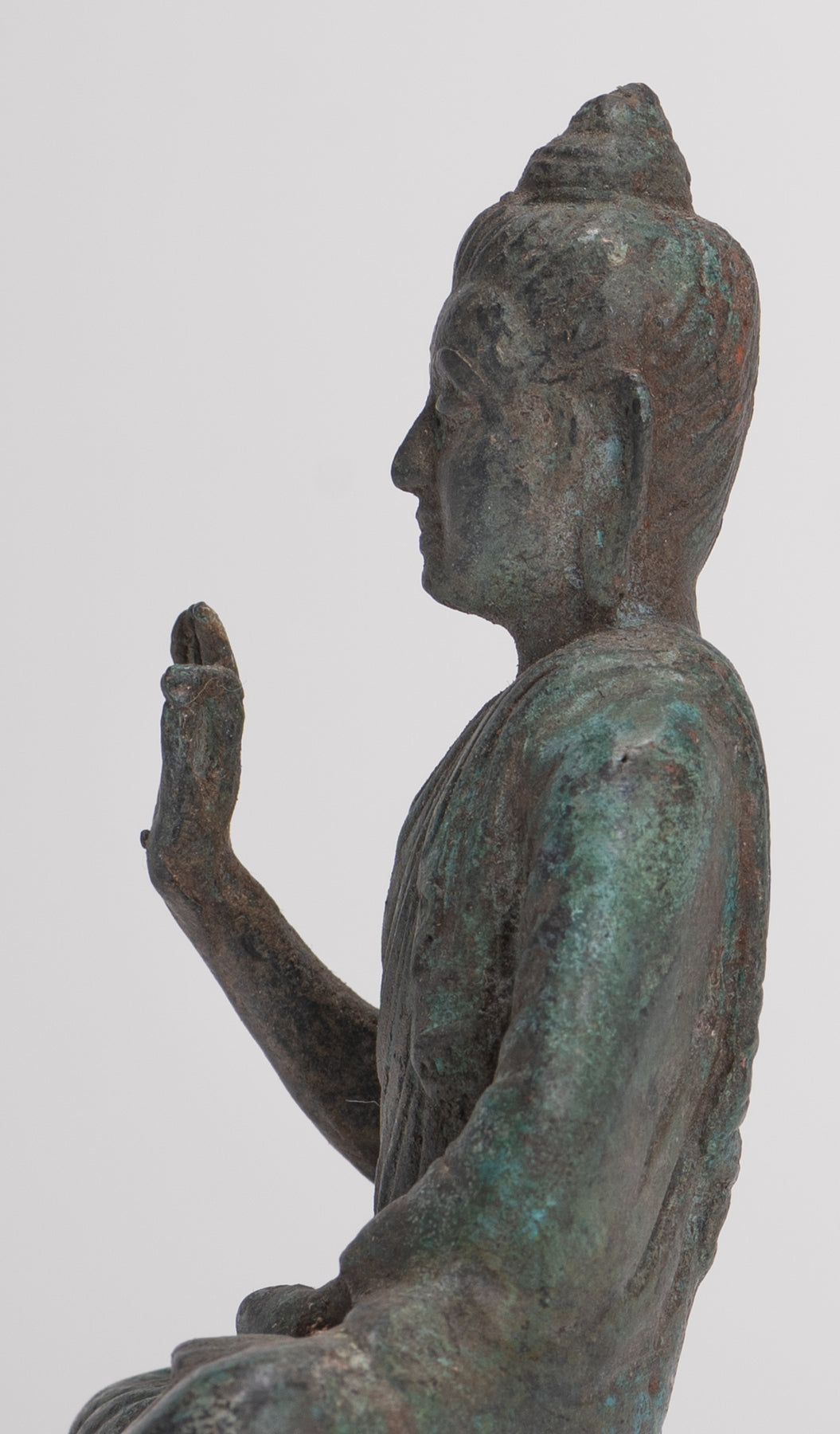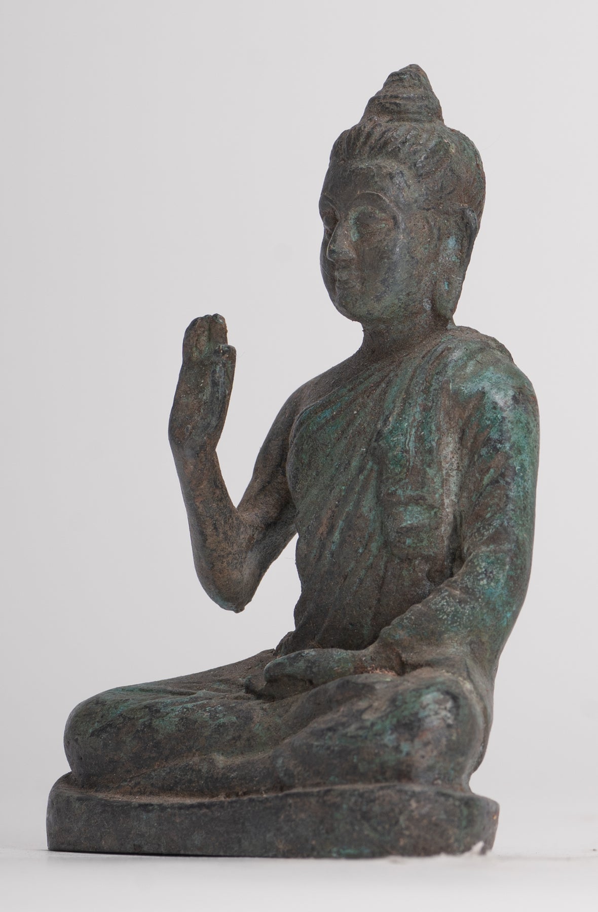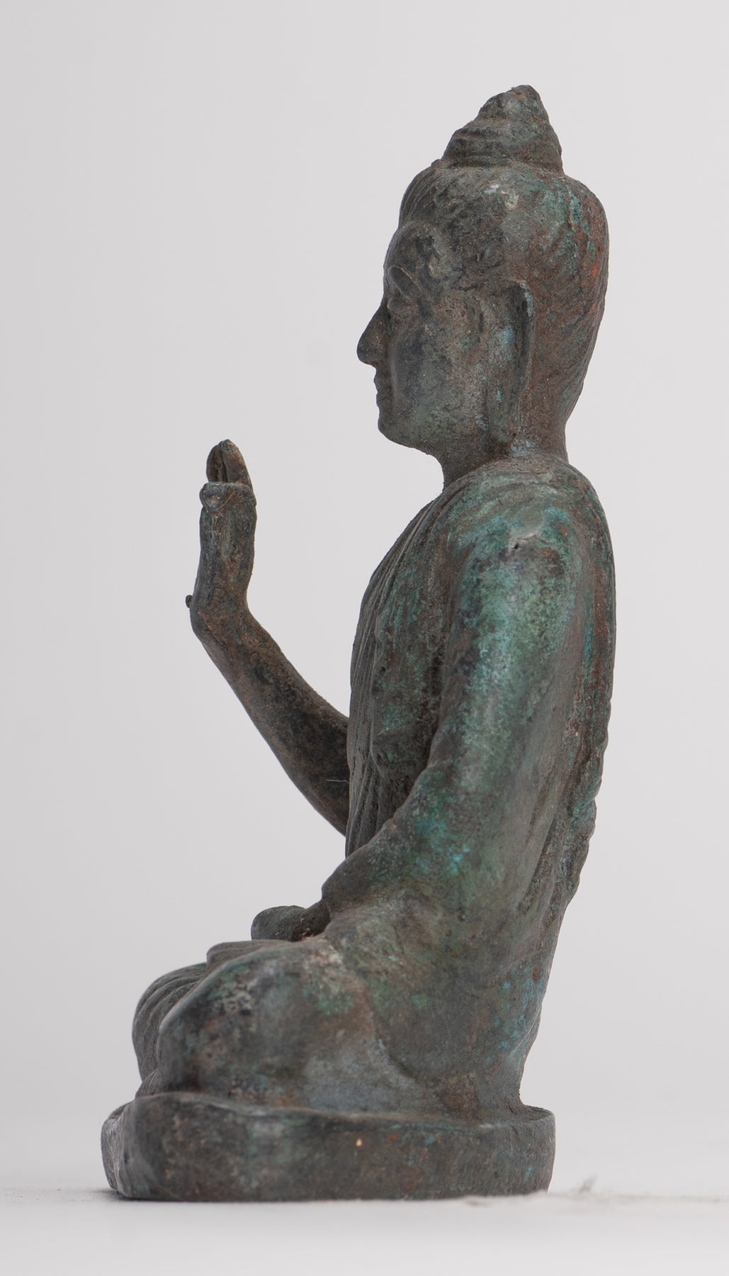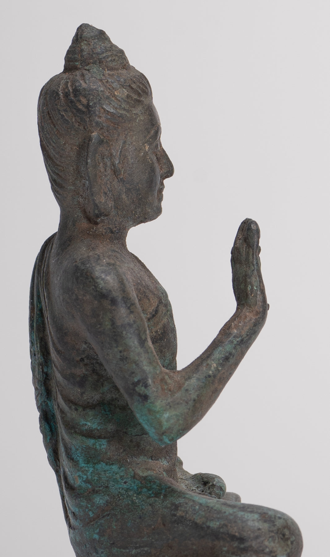 Indische Buddha-Statue – antike Lehr-Buddha-Statue aus Bronze im Gandhara-Stil – 10 cm.