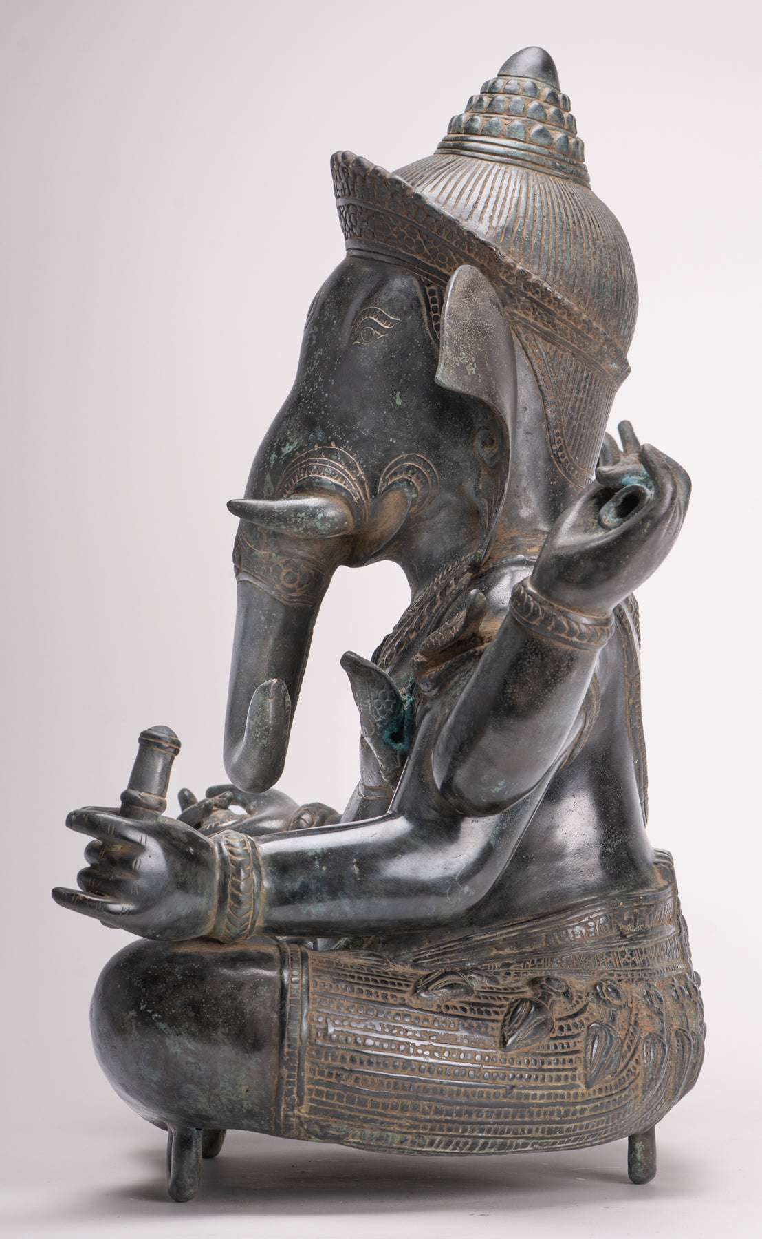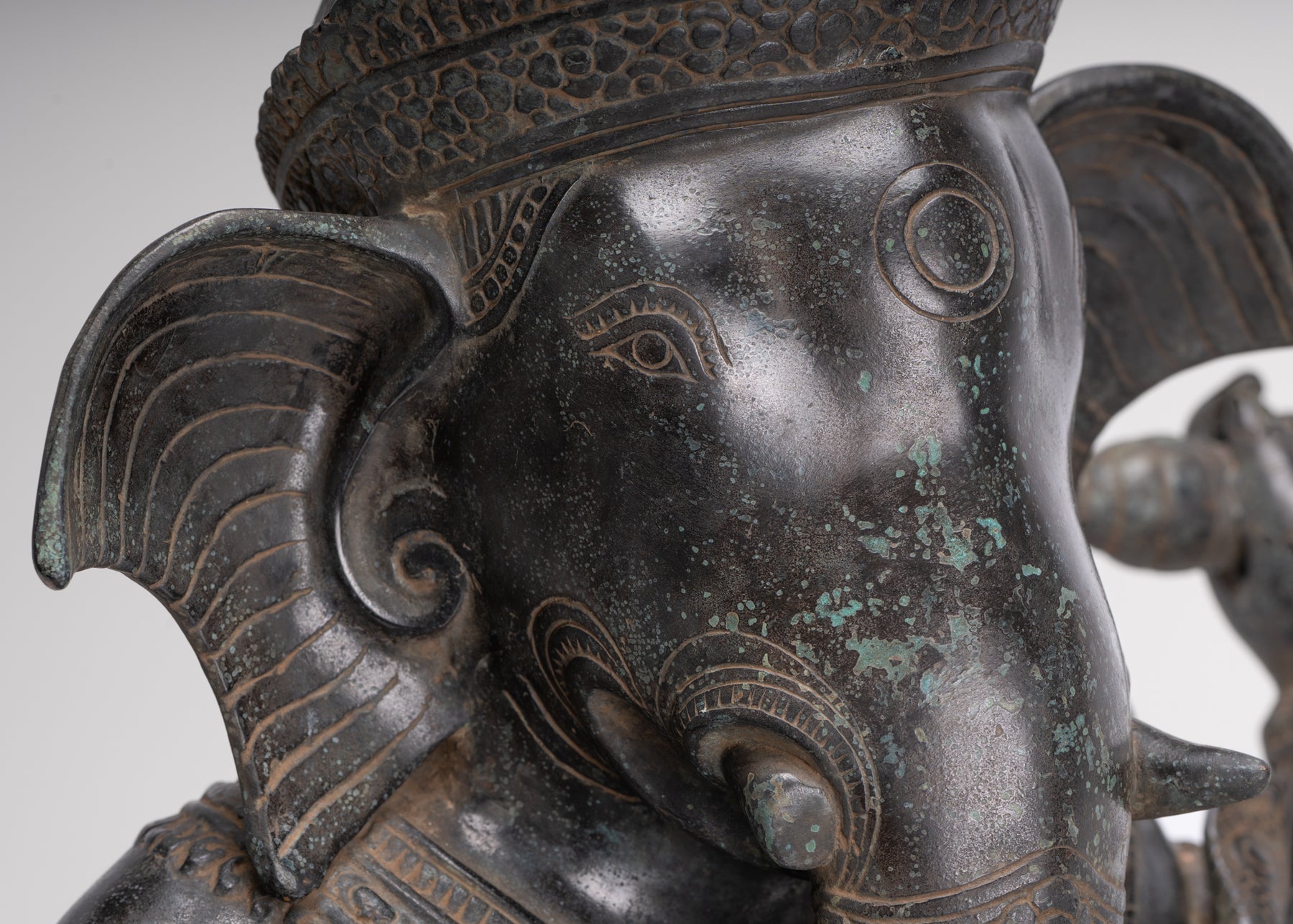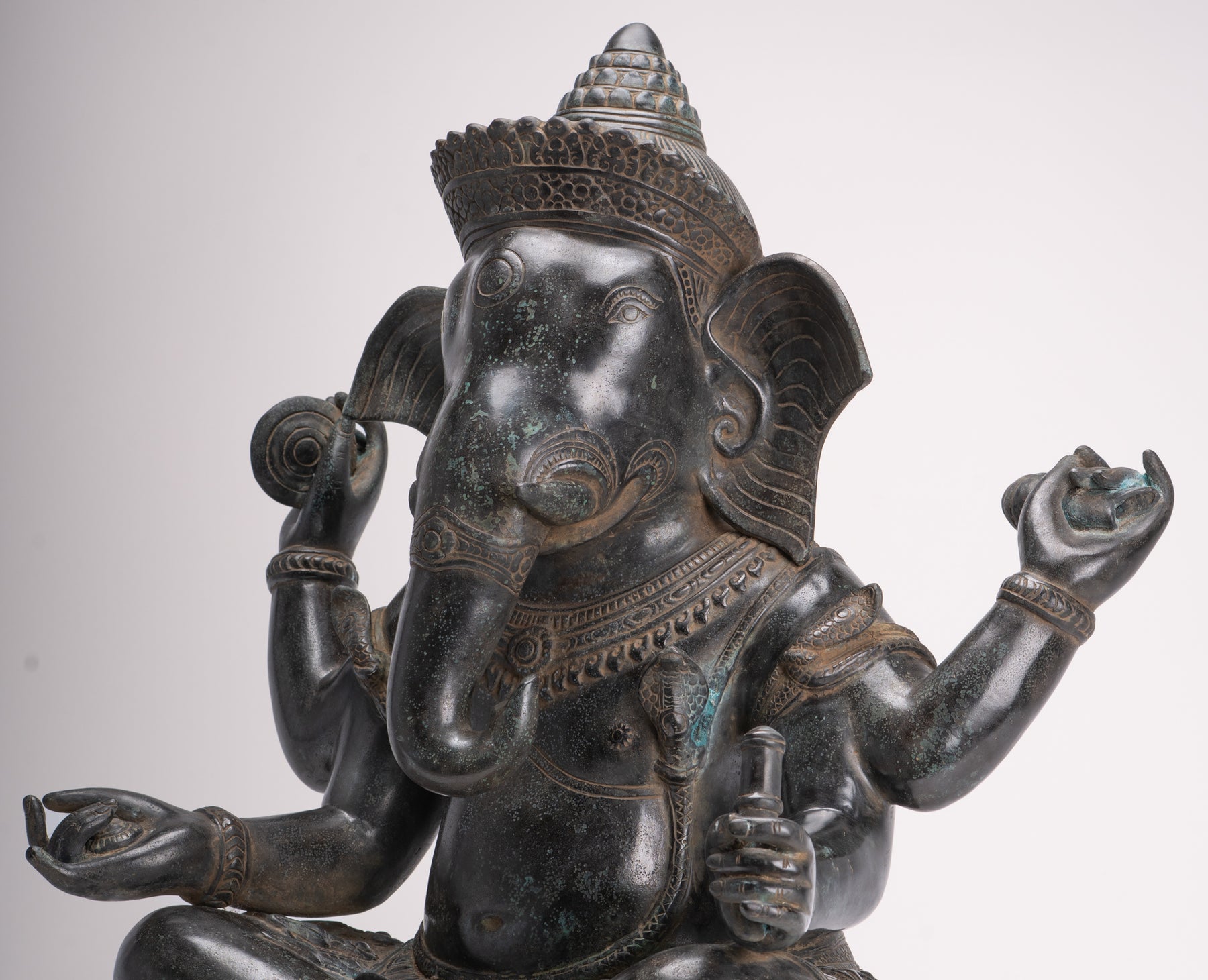 • Große Ganesha-Statue – Antiker Khmer-Stil Angkor Wat Bronze sitzende vierarmige Ganesh-Statue – 56 cm/55,9 cm