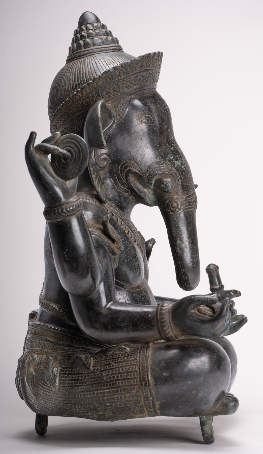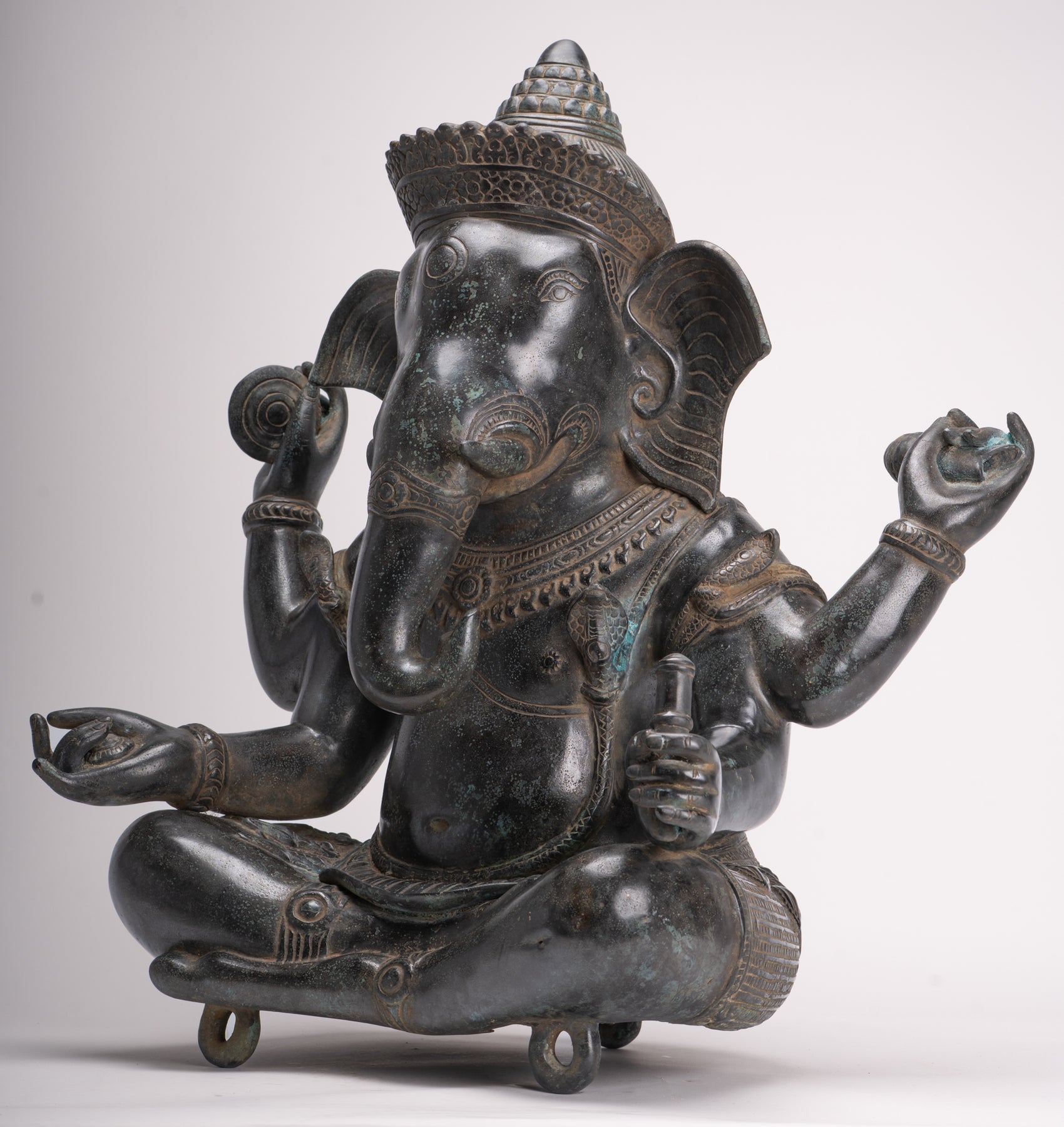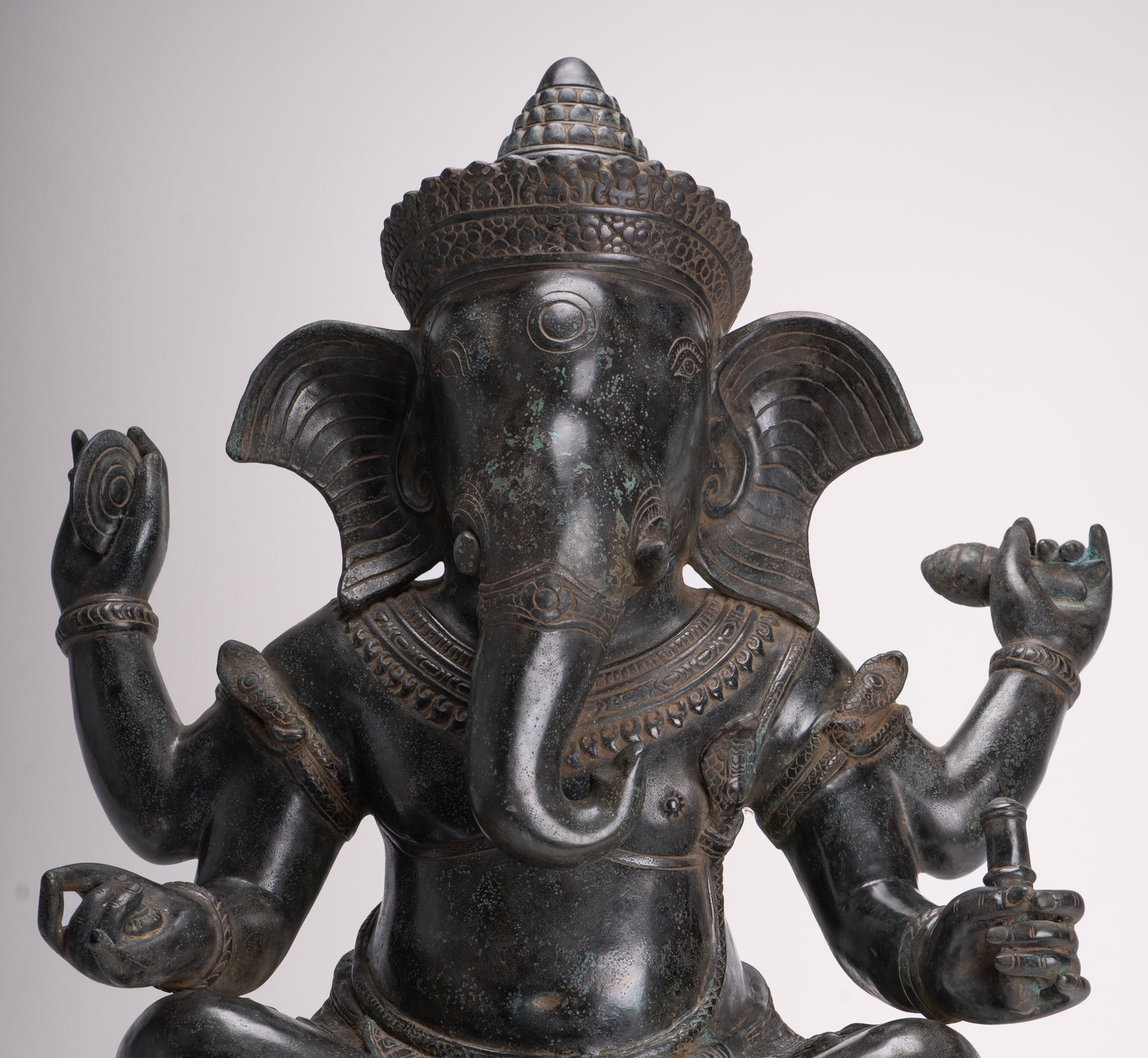 • Große Ganesha-Statue – Antiker Khmer-Stil Angkor Wat Bronze sitzende vierarmige Ganesh-Statue – 56 cm/55,9 cm