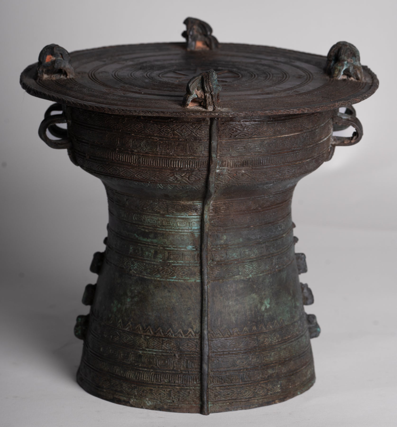 Historisch gesehen gehen Regentrommeln aus Bronze auf die Zeit zurück Dong-Son-Kultur des alten Vietnam, die um 600 v. Chr. oder früher blühte. Diese Meisterwerke der frühen Metallbearbeitung veranschaulichen die technologische und künstlerische Raffinesse der Zeit. Die Entdeckung der Dong-Son-Trommeln liegt noch in weiter Ferne Neuguinea zeugt von umfangreichen Handelsnetzwerken, die einst Südostasien verbanden China und Java, die Kulturen durch Handwerkskunst und Symbolik verbindet.