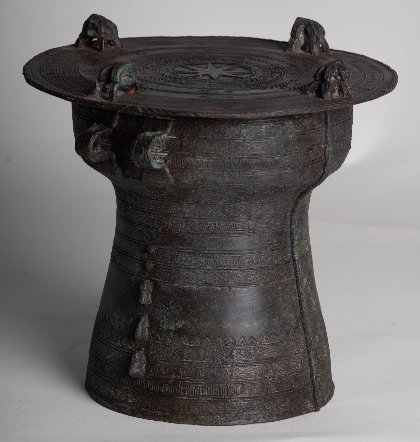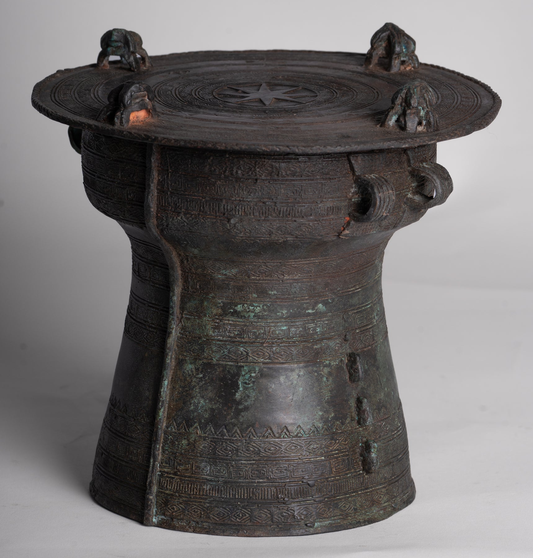 Thai Rain Drum - Antique Thai Style Bronze Free Standing Frog Rain Drum - 19cm/8"