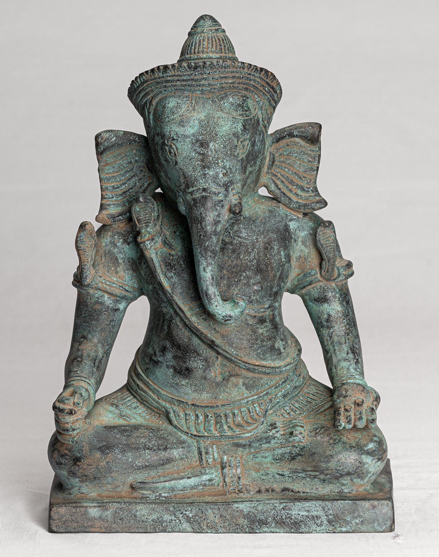 Antique Khmer Style Seated Bronze Bayon Ganesha Statue - 24cm/10"